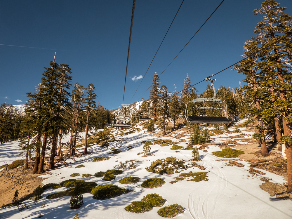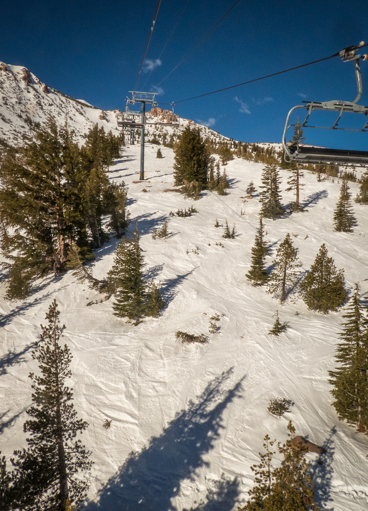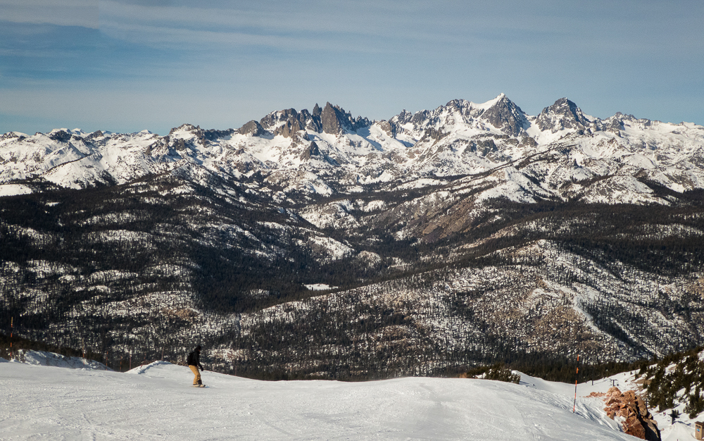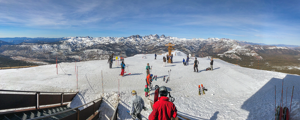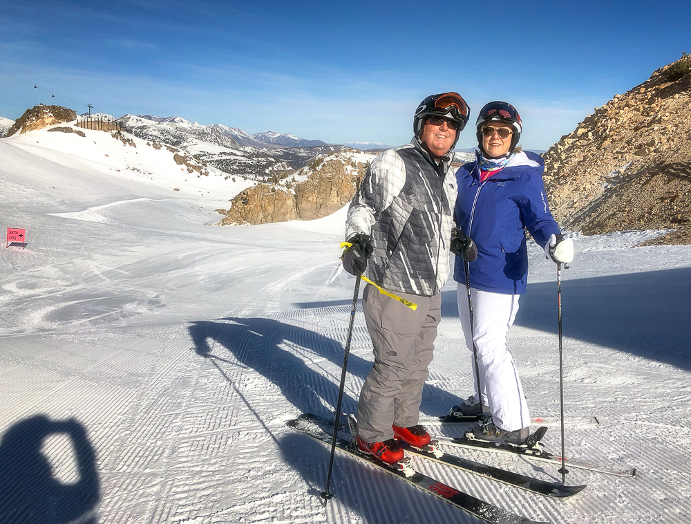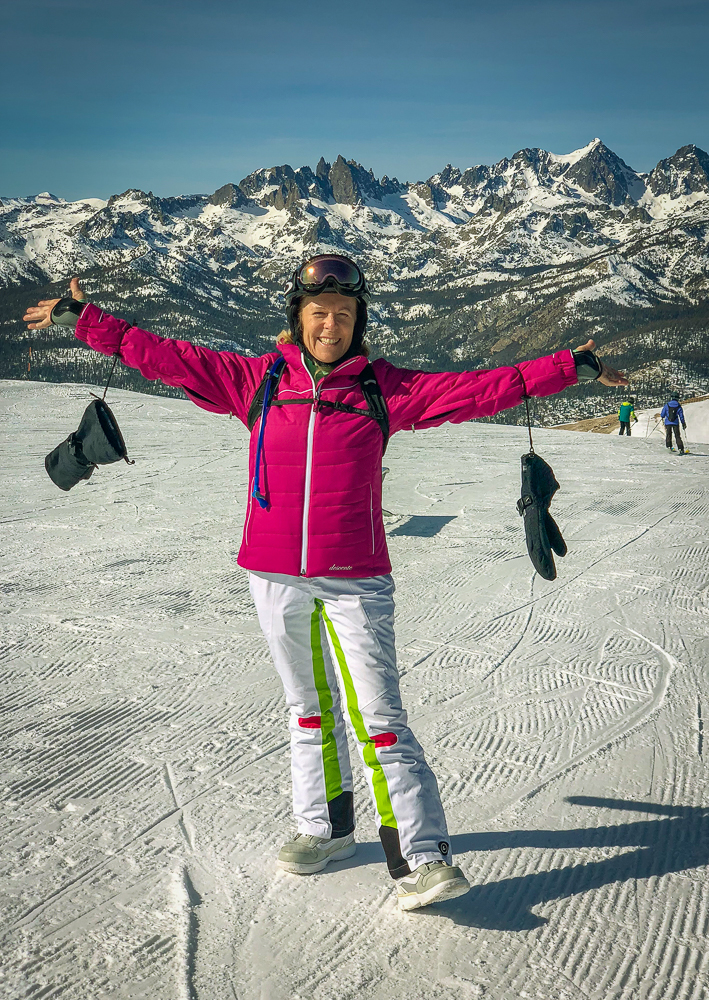 This year the Chagrin Valley Ski Club went to Mammoth Mountain in January from the 27th to Feb 3rd. Bob and I drove to Mammoth from San Diego, a six hour drive and we arrived at the Condo before the bus did. We were staying at the Juniper Springs Lodge with our roomies Karen and Bruce, within walking distance to the Eagle lift. Unfortunately, the bus with all the Chagrin Valley group hit a rock and broke the transmission, and had to get towed, the group got another bus but they were delayed by about 4 hours. We finally met everyone at the wine and cheese party that night and collected our passes for the week. The next day was a beautiful, warm, sunny day and we took Karen and Bruce all over the mountain. The conditions, however, were not the best as the mountain was lacking snow and chair 9 was almost bare in spots. We had fun going to the summit and seeing the view of the mountains, then skiing down for lunch at the main lodge. Where we sat outside in the warm sunshine eating lunch and watching the snowboarders in the half-pipe. For dinner we went to a sushi restaurant in Mammoth Lakes.