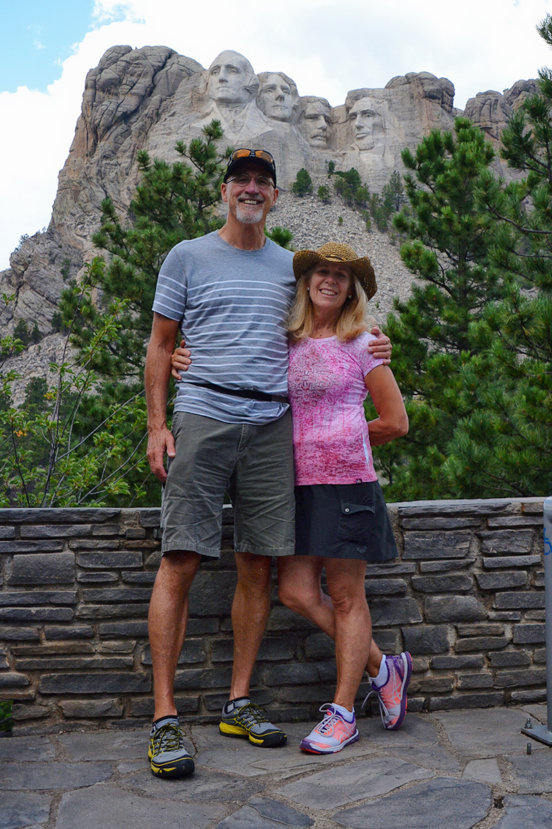 Monday, August 3rd, on our way to Rapid City, South Dakota, to get the Sherpa registered in our new home state. Unfortunately we are arriving the same week as the Sturgis Rally when almost 500,000 motorcyclists will move into Stugis and the surrounding area. We are staying for a week at the Americas Campground and Lodging in Box Elder, and we were very lucky to get in here. There is so much to see here in the Black Hills and our first stop is to visit Mount Rushmore National Memorial.