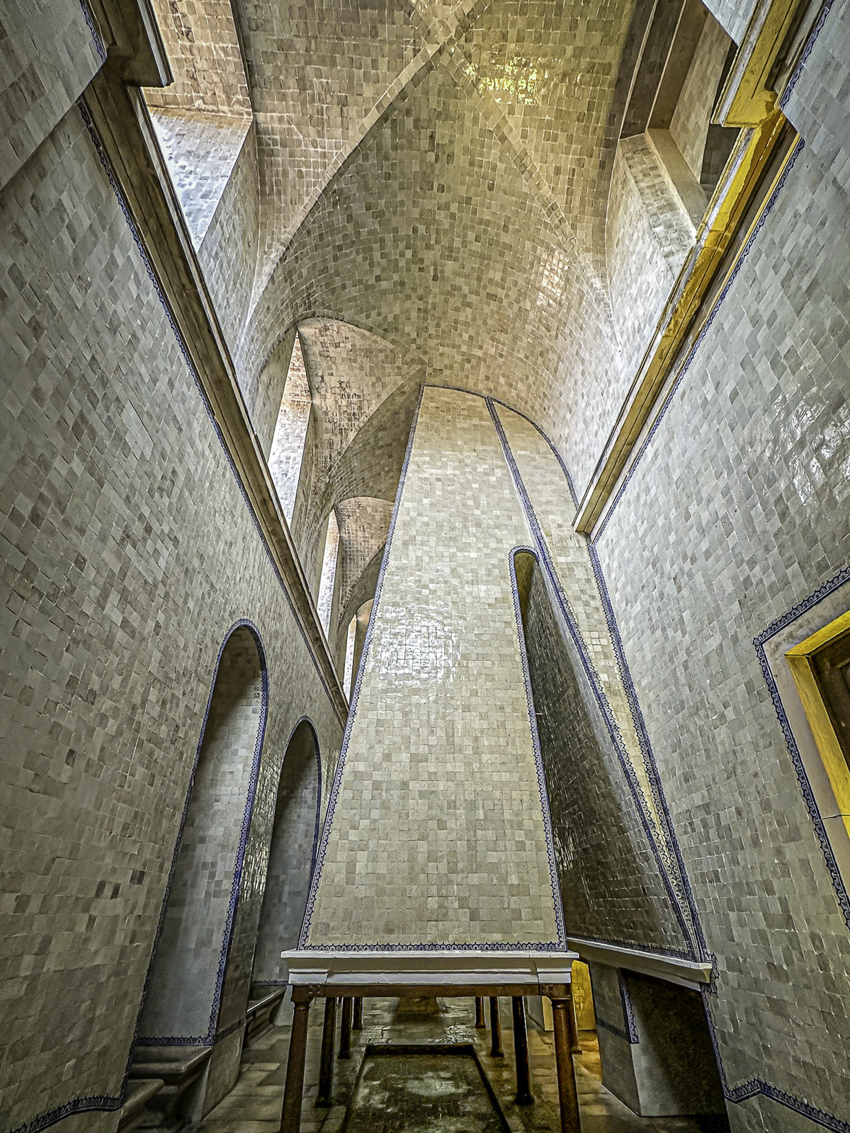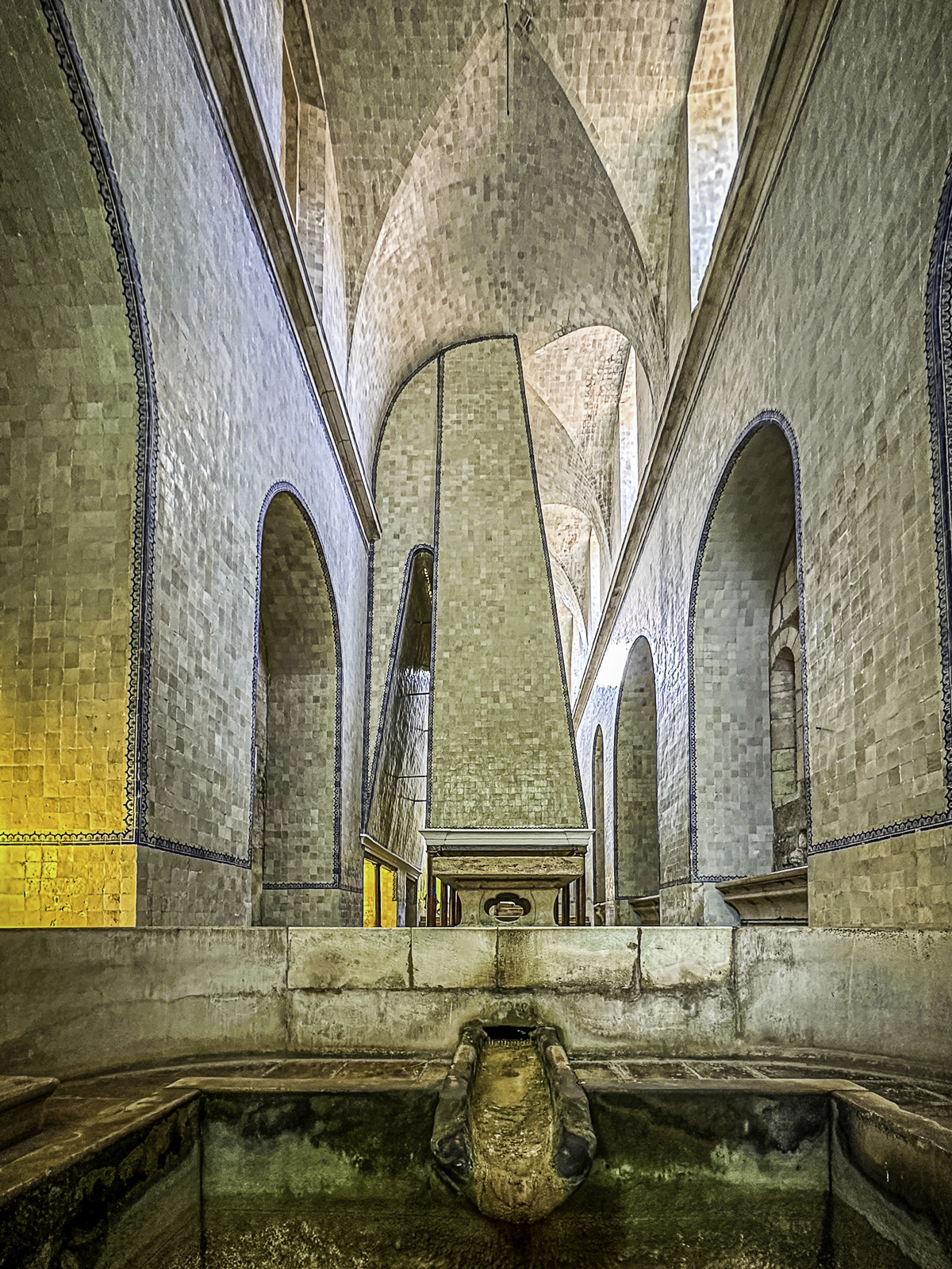 We toured the monastery’s vast Gothic church—the first fully Gothic structure in Portugal—an architectural milestone that introduced new ideas of height, luminosity, and spiritual clarity to the Iberian Peninsula. Built by the Cistercian order beginning in the 12th century, the church reflects the monks’ guiding principles of simplicity, harmony, and contemplation. Its soaring nave, supported by slender columns and pointed arches, draws the eye upward in an unbroken sweep of stone and light. The austere walls, devoid of elaborate decoration, emphasize pure form and proportion, allowing the natural play of sunlight to define the space throughout the day.