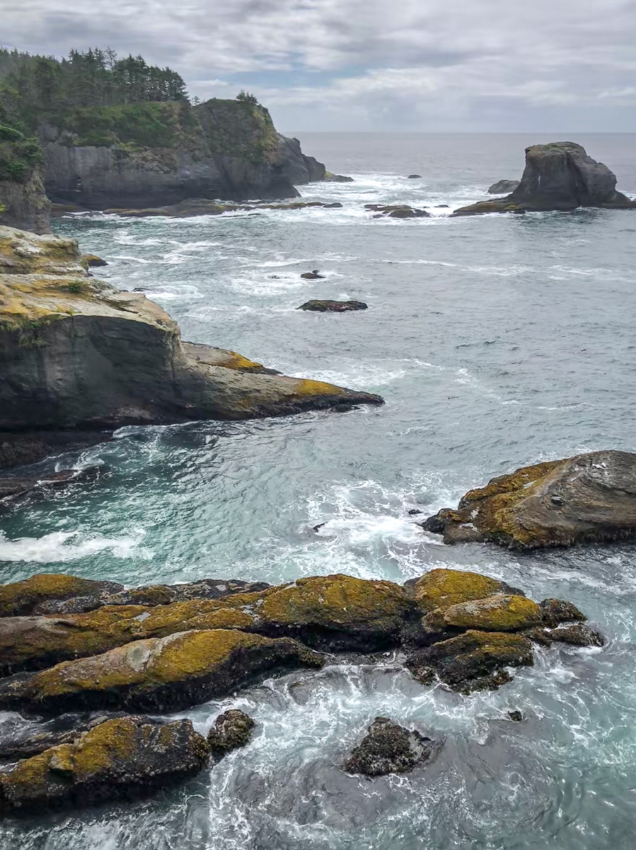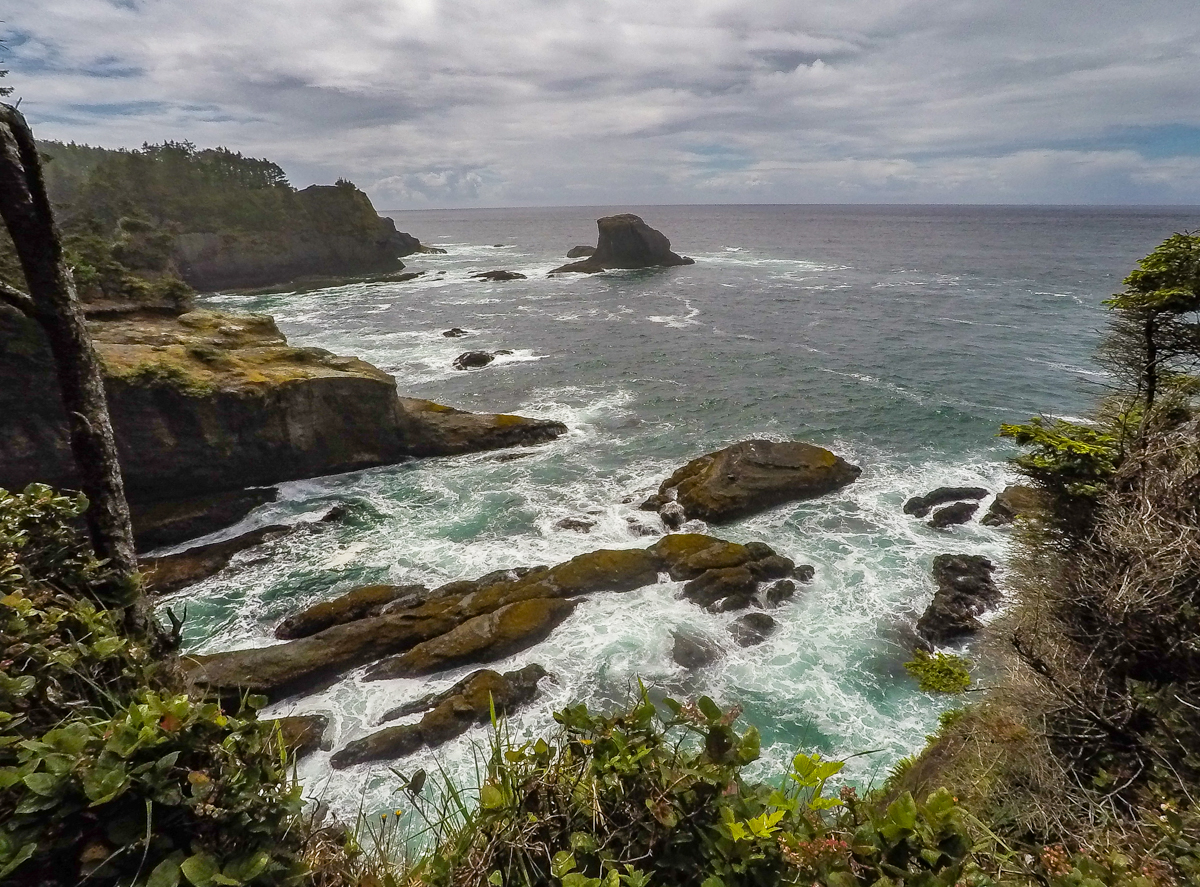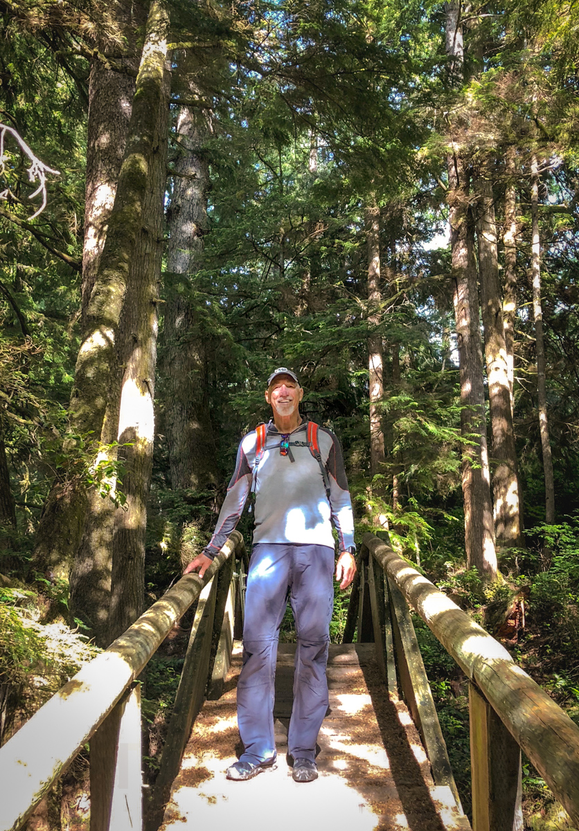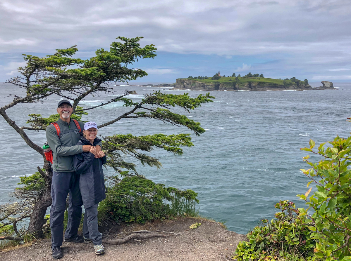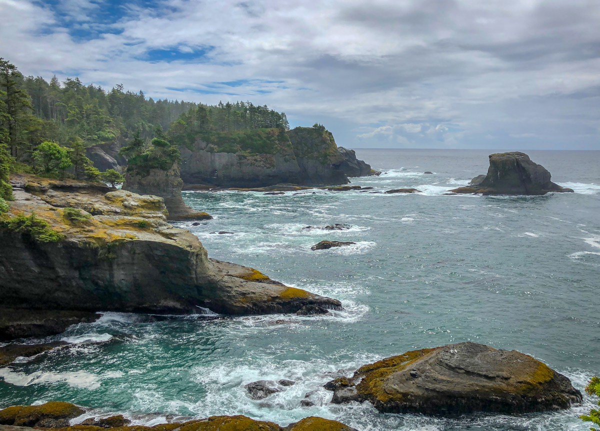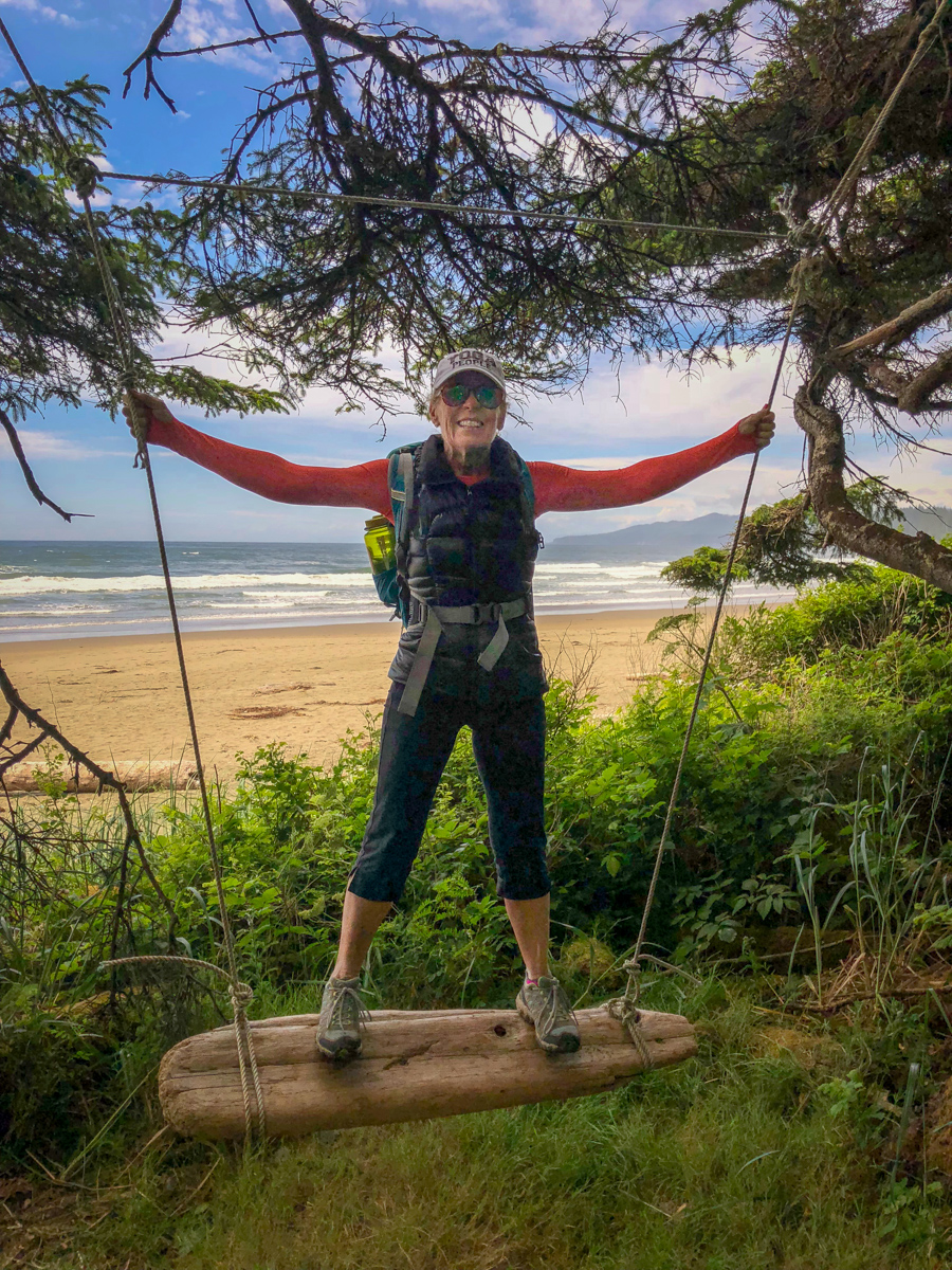 Today we drove out to the wild and rugged Olympic Coast and Shi Shi Beach to hike the 8 miles round trip to the Point of Arches. We had to stop at the Museum in Neah Bay to purchase the Makah Recreation Pass a permit for the trail. We arrived at the Trailhead and started our hike along the recently-rehabilitated trail for a mile winding through brushy clearcut and groves of Sitka spruce. We crossed over several bridges and boardwalks, but then the trail got messier and almost always muddy and wet. But shortly we were rewarded with the site of Shi Shi Beach.