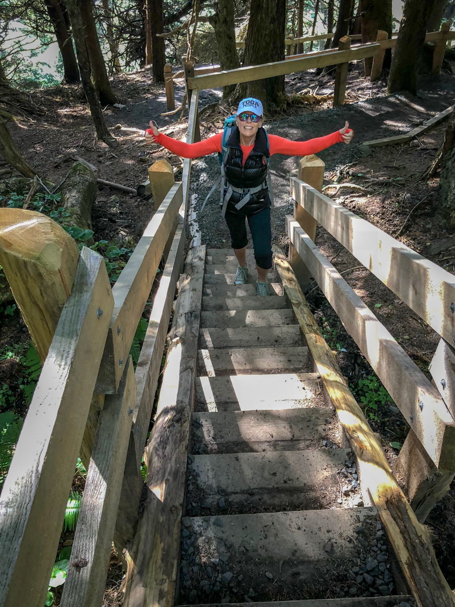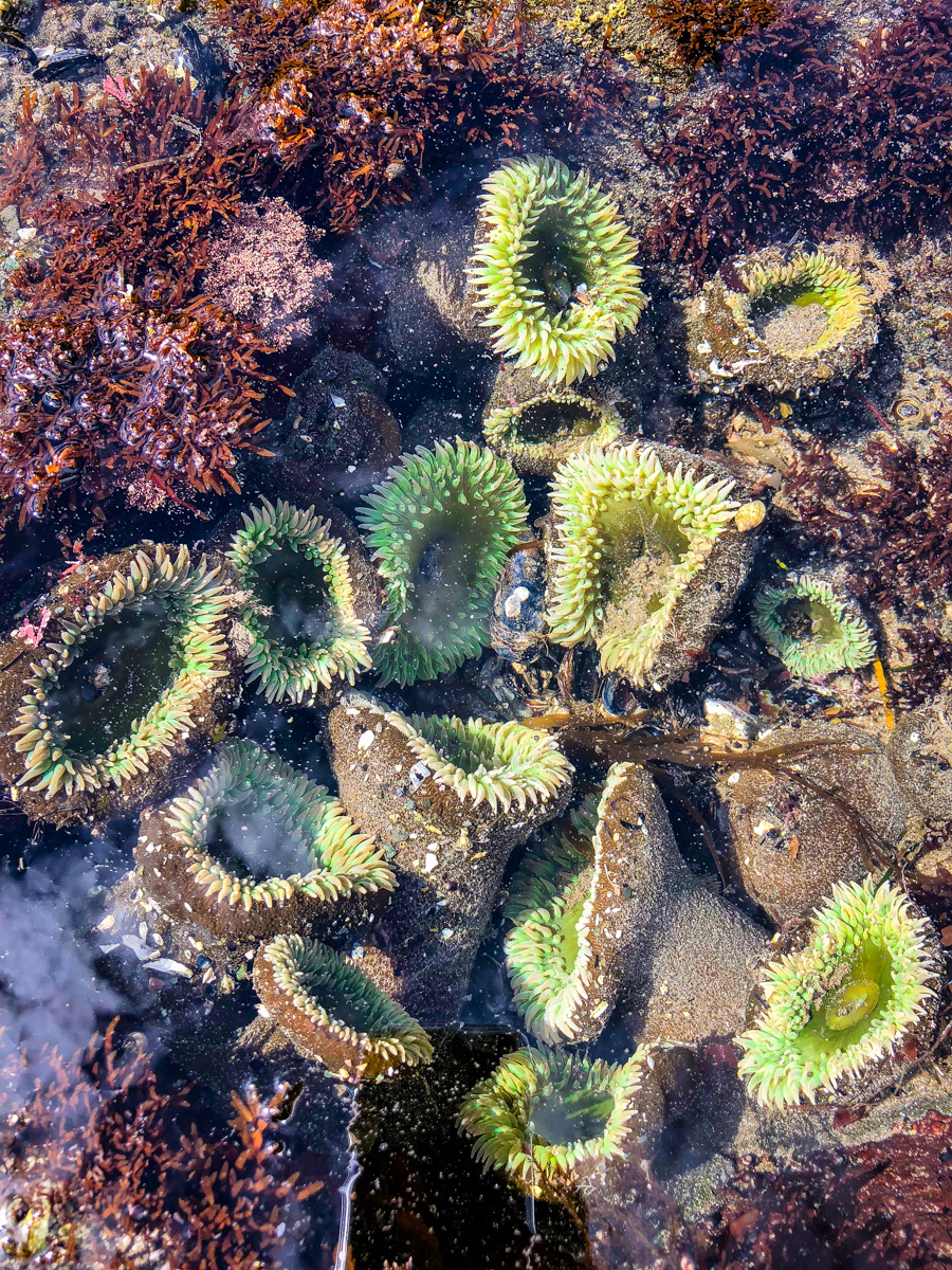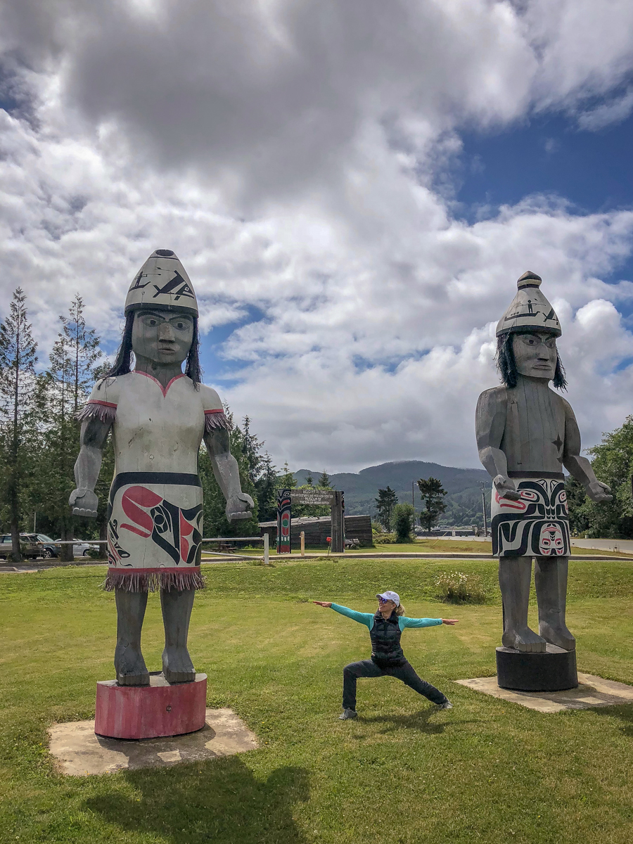 We walked along the beach for 1.3 miles to the Point of Arches, a mile-long parade of rocky sea stacks. We wandered around the tide pools, observing the daily goings on of the resident coastal critters and relished being in one of the most scenic locations in the Northwest. We passed several campsites along the beach in the sheltered forest upslope, where we would love to come back and spend more time here to watch the sunset over the sea stack-strewn Pacific. On the way back we stopped at the small, much-too-isolated fishing village of Sekiu, WA, where we were welcomed by a carved wooden statue of the fish…….. running towards the town of Sekiu while wearing a pink bra and skirt with tennis shoes, named Rosie. We ate fish and chips at By the Bay Cafe, where we found the shorts-and-sneaker-clad running fish boy, Gil, who is probably looking for his running fish girlfriend, Rosie. Click on thumbnail to view images