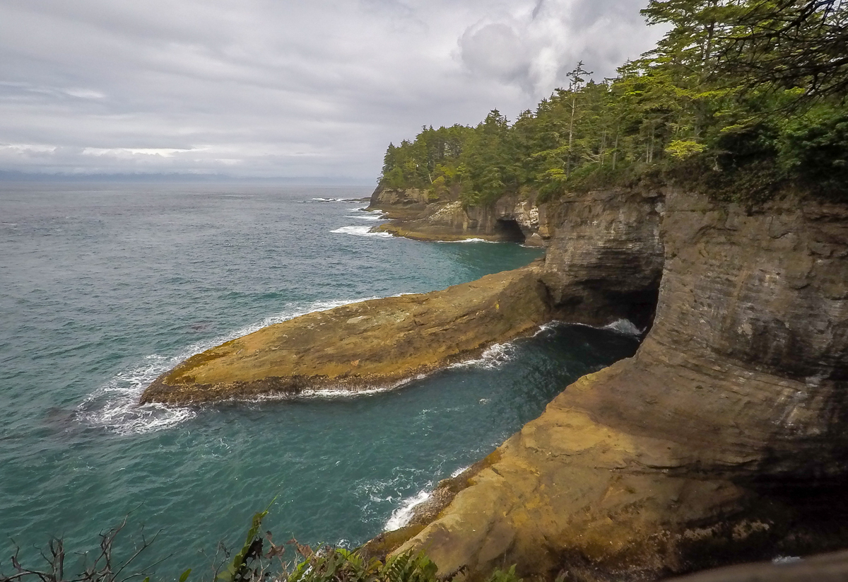 What a surprise when we arrived back at the RV Park and found Ron and Kristen parked near us and staying for a few days. We decided to drive to Cape Flattery with Ron and Kristen, the next day and Bob found a short-cut along logging roads that we could take to get to Cape Flattery. We rode in Ron’s jeep and it was quite a ride, after about 1 1/2 hours we arrived at the paved road only to be stopped by a large locked gate. Needless to say we had to turn around and go back to where we started, back to the paved road. Finally we arrived at Cape Flattery Trailhead. Cape Flattery Trail ends at the most northwesternly tip of the contiguous United States, where the Strait of Juan de Fuca joins the Pacific Ocean, and can be reached by an easy, short hike, most of which is board walked. At the point we could see across to the Cape Flattery Lighthouse on Tatoosh Island, just off the cape. Makah Bay and Neah Bay are on either side of the cape. The view to the north from the cape we could see Vancouver Island in the distance. On the way back we stopped at the Makah Cultural and Research Center that includes a replica long house and thousands of artifacts. Click on thumbnail to view images