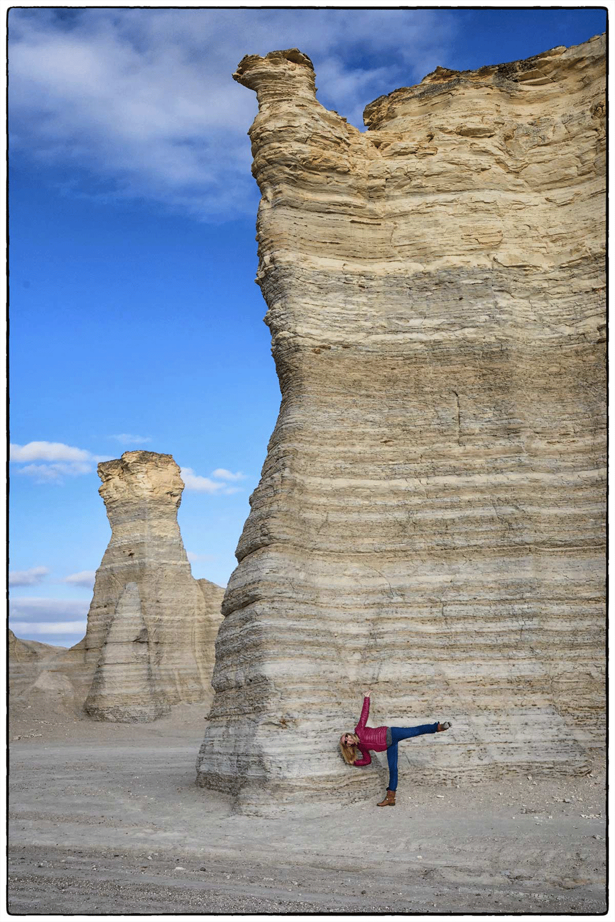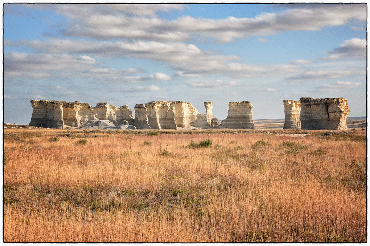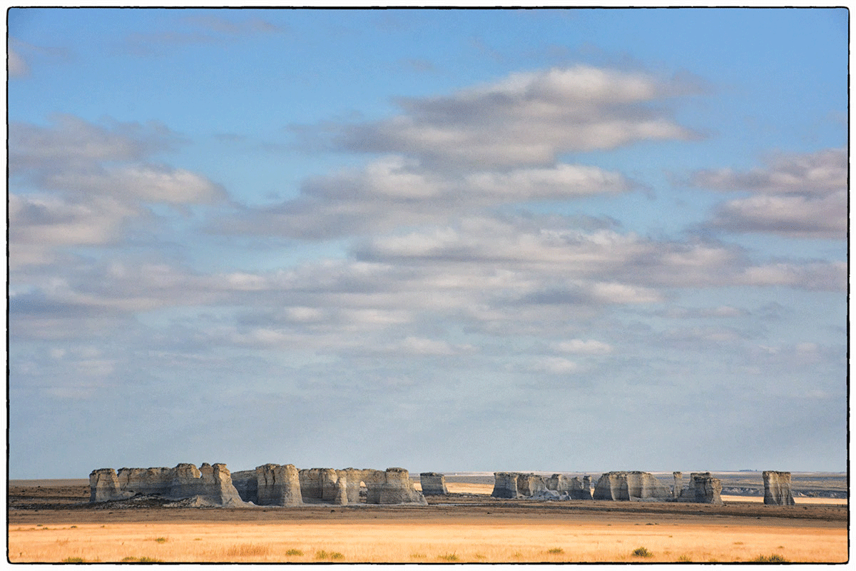 After setting up camp we had time to do some sightseeing. We decided to go and see one of the 8 Wonders of Kansas, 20 miles south of Oakley, we found the Monument Rocks, heavily sculpted chalk monoliths that are also referred to as the Chalk Pyramids.The unusual spires and shapes stand out in the middle of the plains of western Kansas, and not another soul around when we were there.
