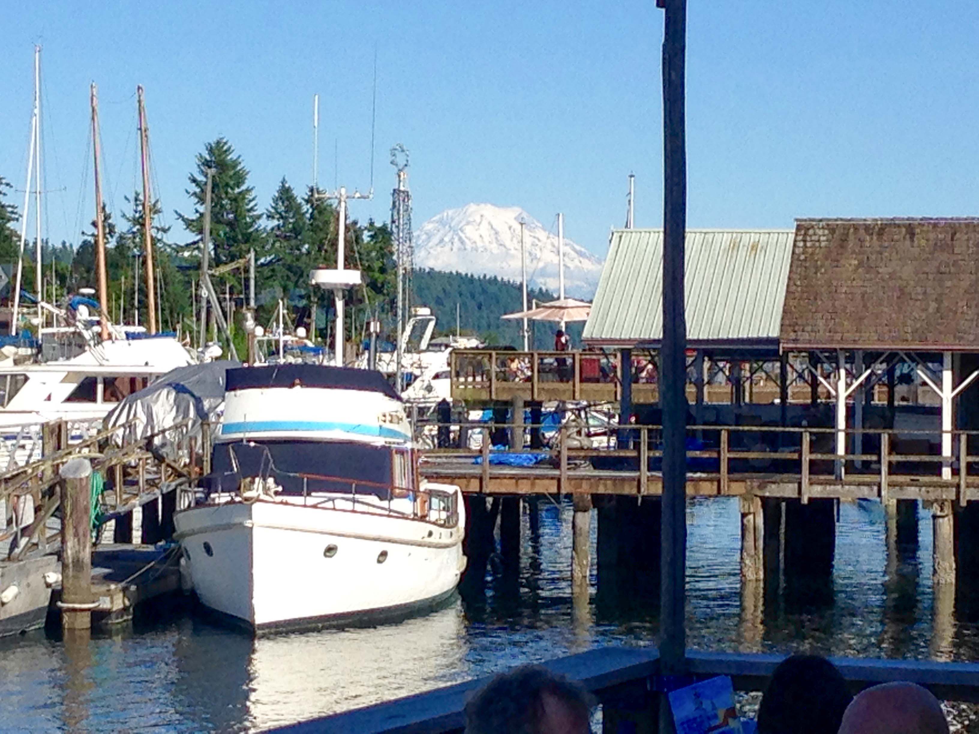 Today we were sad to say farewell to Bend/Sisters area, but we had to keep heading north to Gig Harbor, WA and its Gig Harbor RV Resort. We crossed over the famous Tacoma Narrows Bridge, which was first built in 1940, but collapsed just months after it was completed, and Gig Harbor was isolated from Tacoma and Seattle by Puget Sound until 1950 when the second bridge was built. In 2007 a $1.2 billion project added a second span to the bridge. Gig Harbor was incorporated in July, 1946, and is the Gateway to the Olympic Peninsula. After we settled into the RV Resort, we went into the quaint town of Gig Harbor located on the shores of Puget Sound. We enjoyed a fabulous dinner at Tides Tavern on the water with amazing views of Mt Rainier.