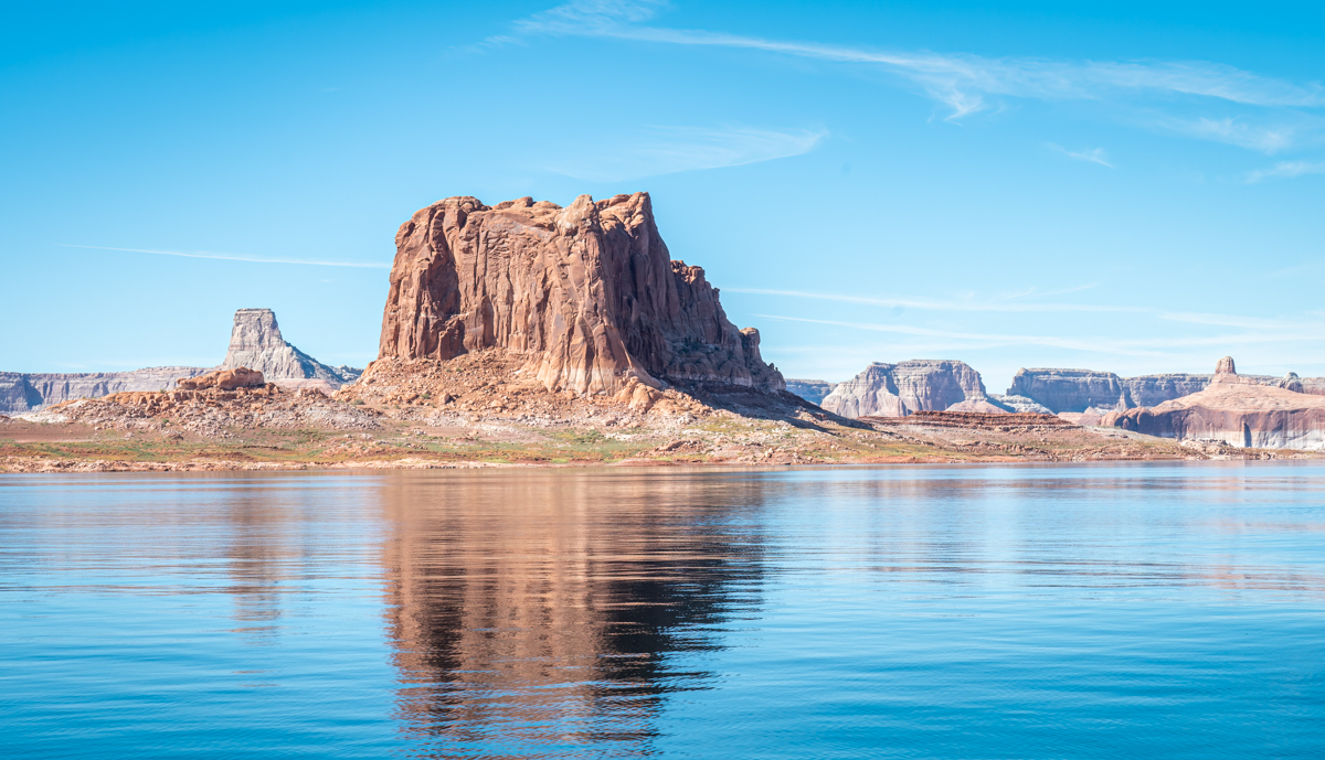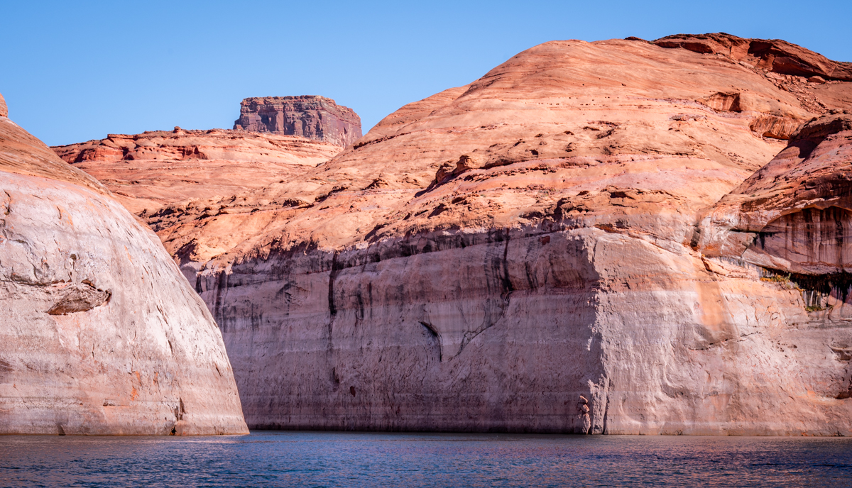 As we left Wahweap Bay and travelled past the Glen Canyon Dam and the Antelope Point Marina, we couldn’t help but notice the low water conditions of Lake Powell. The lake’s water levels have been decreasing over the years due to drought and the diversion of the Colorado River for agricultural use. Despite this, the stunning rock formations that surrounded us still took our breath away.