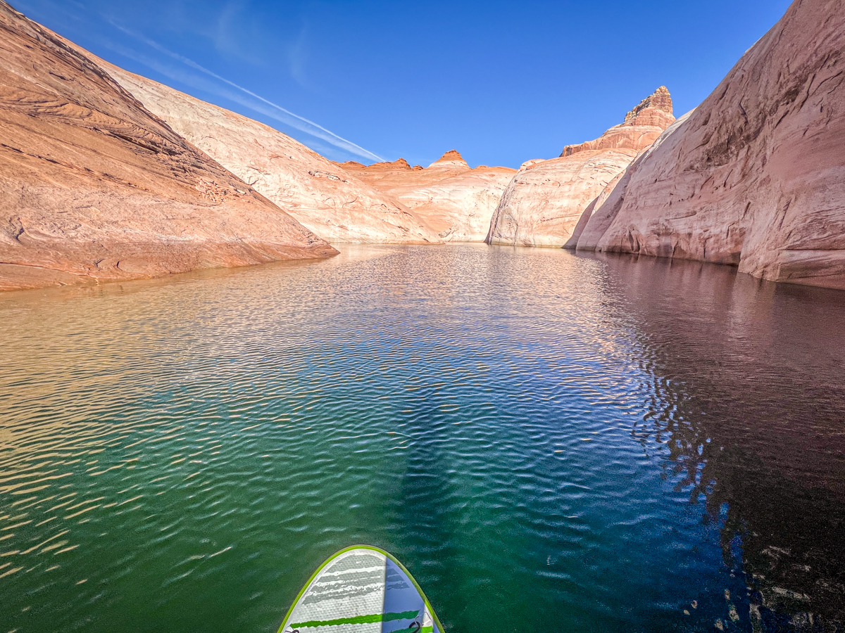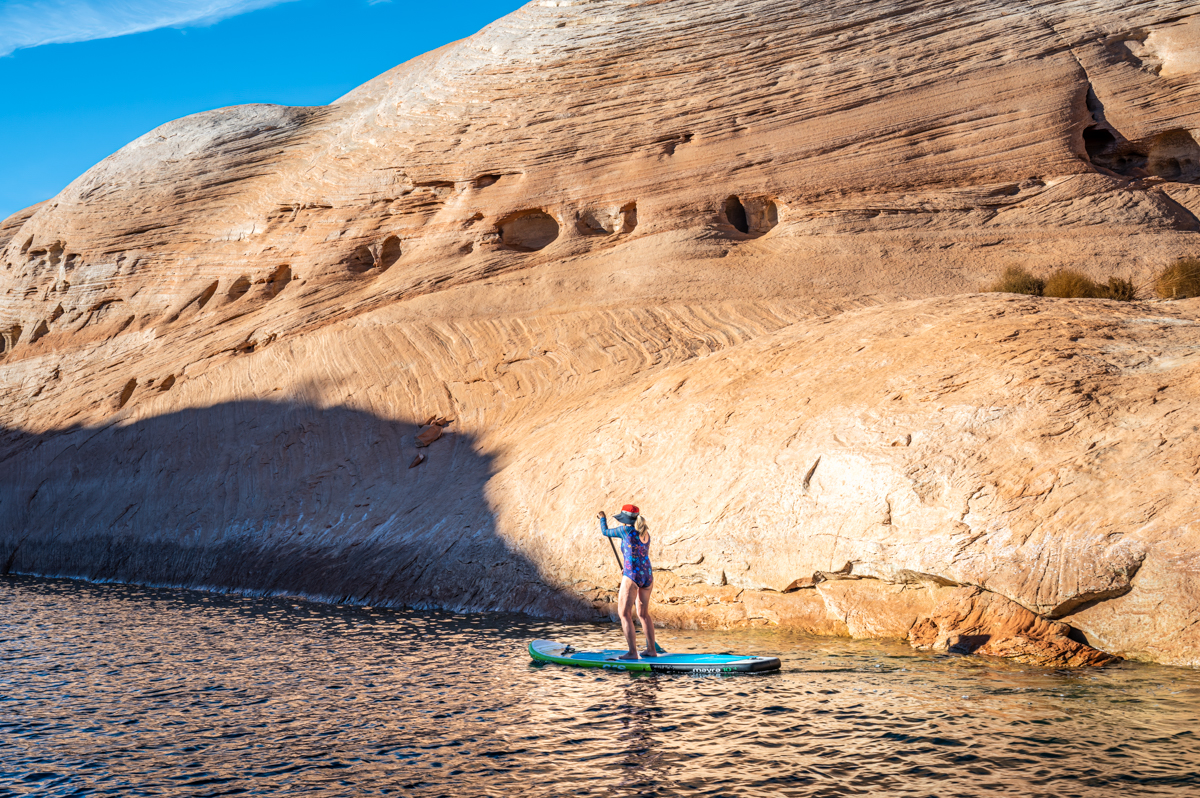 We stopped for lunch in Last Chance Bay, where Patty got on her paddleboard to explore the shoreline. The colors of the surrounding landscape were reflected on the water, creating a breathtaking sight.