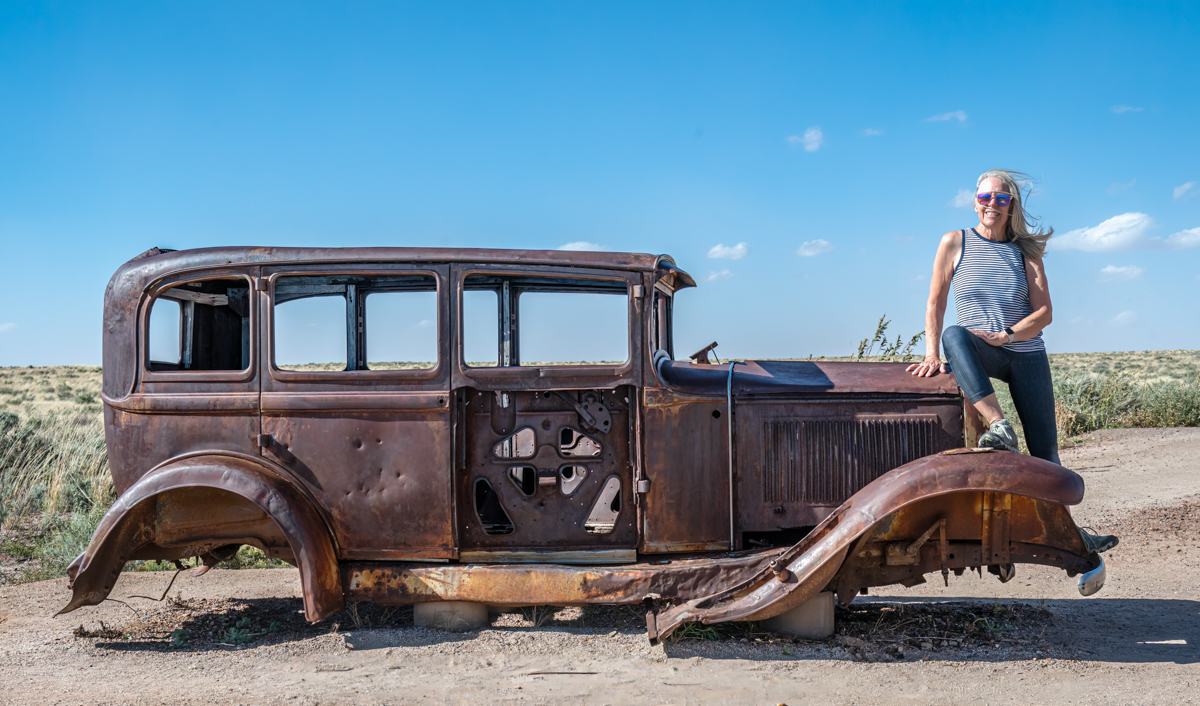 After soaking up all the knowledge we could from the museum, we set out on foot to explore the park’s stunning trails. Our first stop was the Agate House, an ancient dwelling built by the Ancestral Puebloans over 700 years ago. The Agate House is one of the few standing structures in the park, and it’s a testament to the ingenuity and resourcefulness of the people who once called this area home. The house was built using petrified wood and agate, and it’s a marvel to behold up close. From Agate House we continued on the Long Logs trail where we encountered some of the most impressive petrified wood in the park. The Long Logs trail winds through a forest of petrified wood, some of which are over 200 feet long and 10 feet in diameter. It’s a surreal experience to walk among these ancient trees, imagining what the forest must have looked like millions of years ago. Click on thumbnail to view image