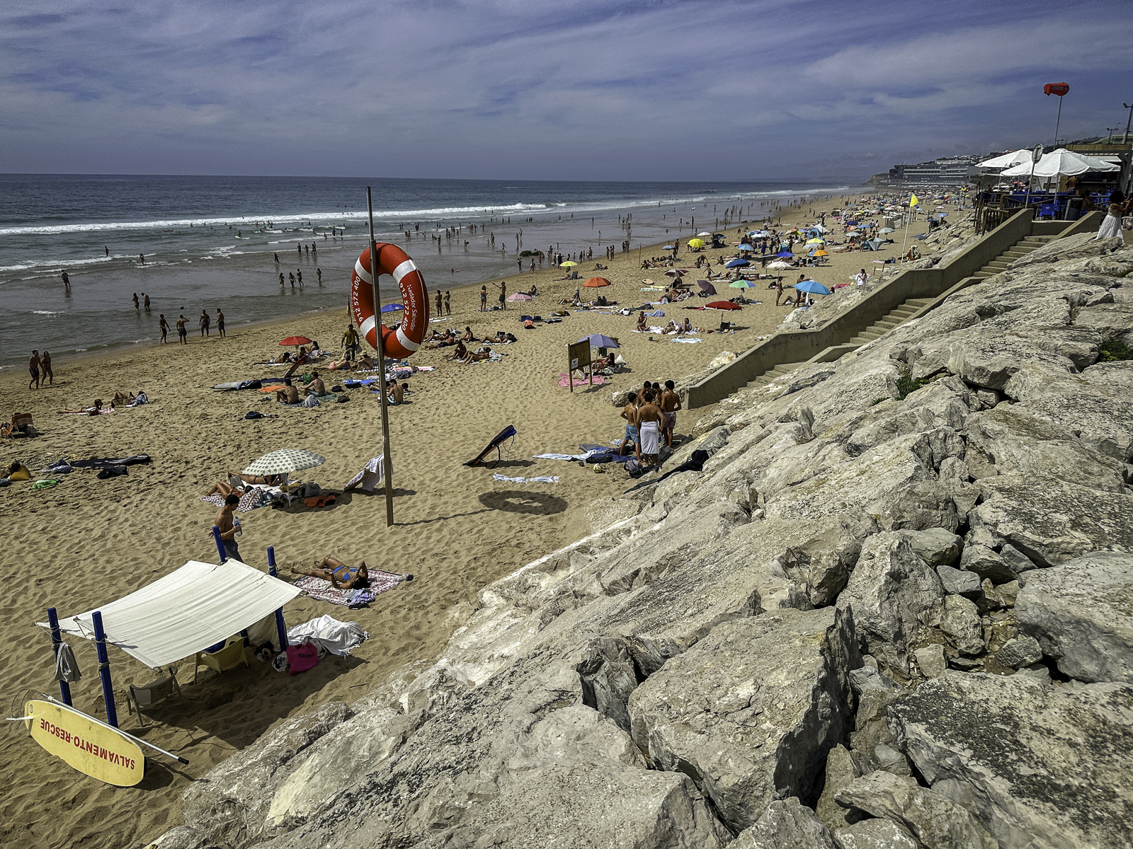 A short distance away lies Praia da Aroeira, a quieter and lesser-known stretch of coastline marked by windswept dunes, rocky headlands, and sweeping views of the Atlantic. Its rugged solitude and natural surroundings make it a peaceful contrast to Sintra’s more visited locations.