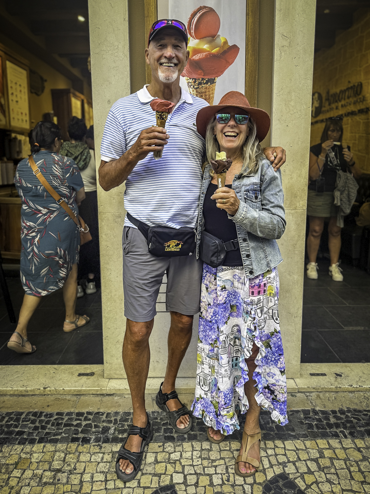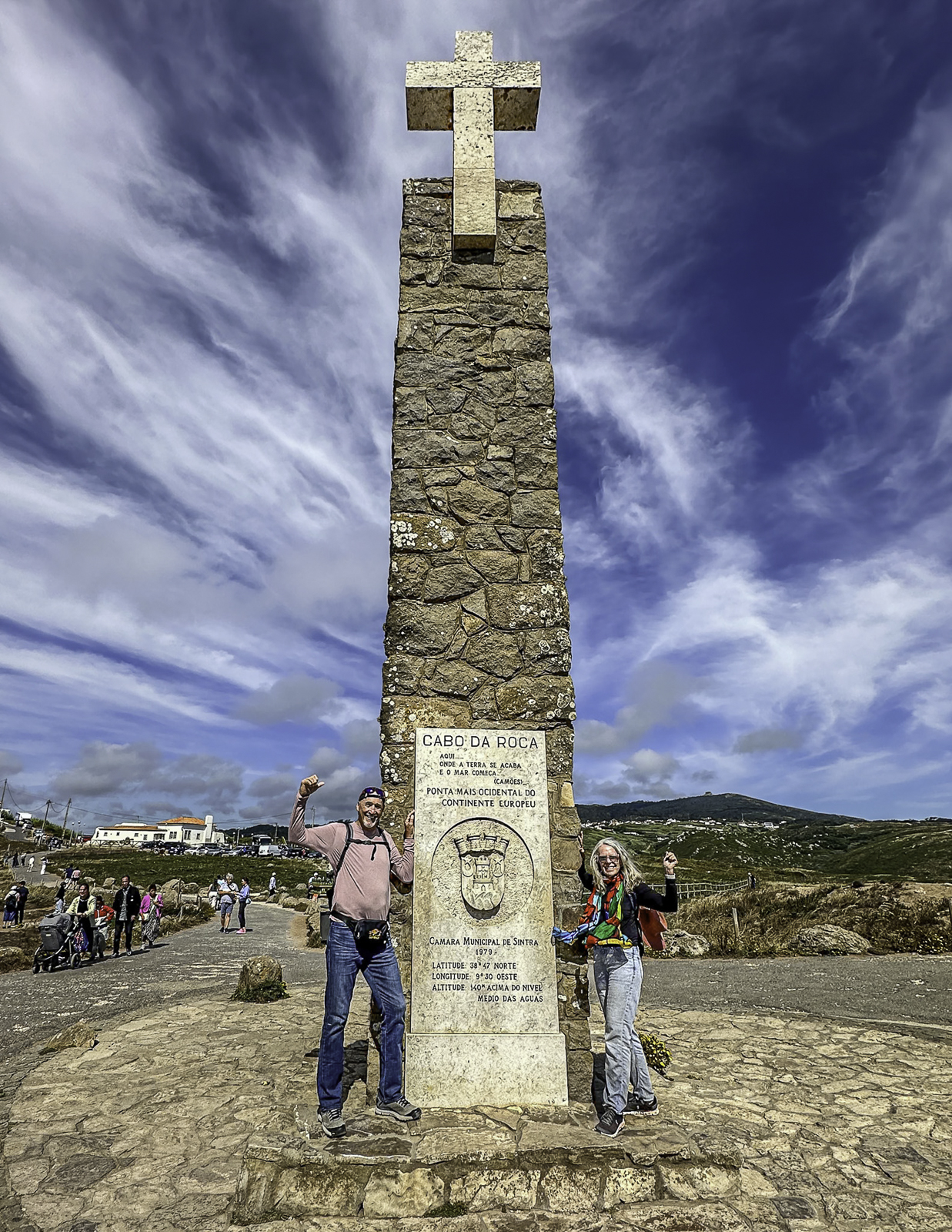 Both beaches sit just north of Cabo da Roca, the westernmost point of mainland Europe. Rising high above the ocean, Cabo da Roca has long been viewed as the “end of the earth,” a windswept promontory where cliffs plunge dramatically into the sea. The lighthouse here marks a symbolic meeting of land and ocean, and the panoramic views capture the vastness of the Atlantic horizon. After signing the guestbook we received our certificates for being at the westernmost point of Europe. We made our way back to Sintra from the coast where Miguel joined for a drink at a restaurant he highly recommended.