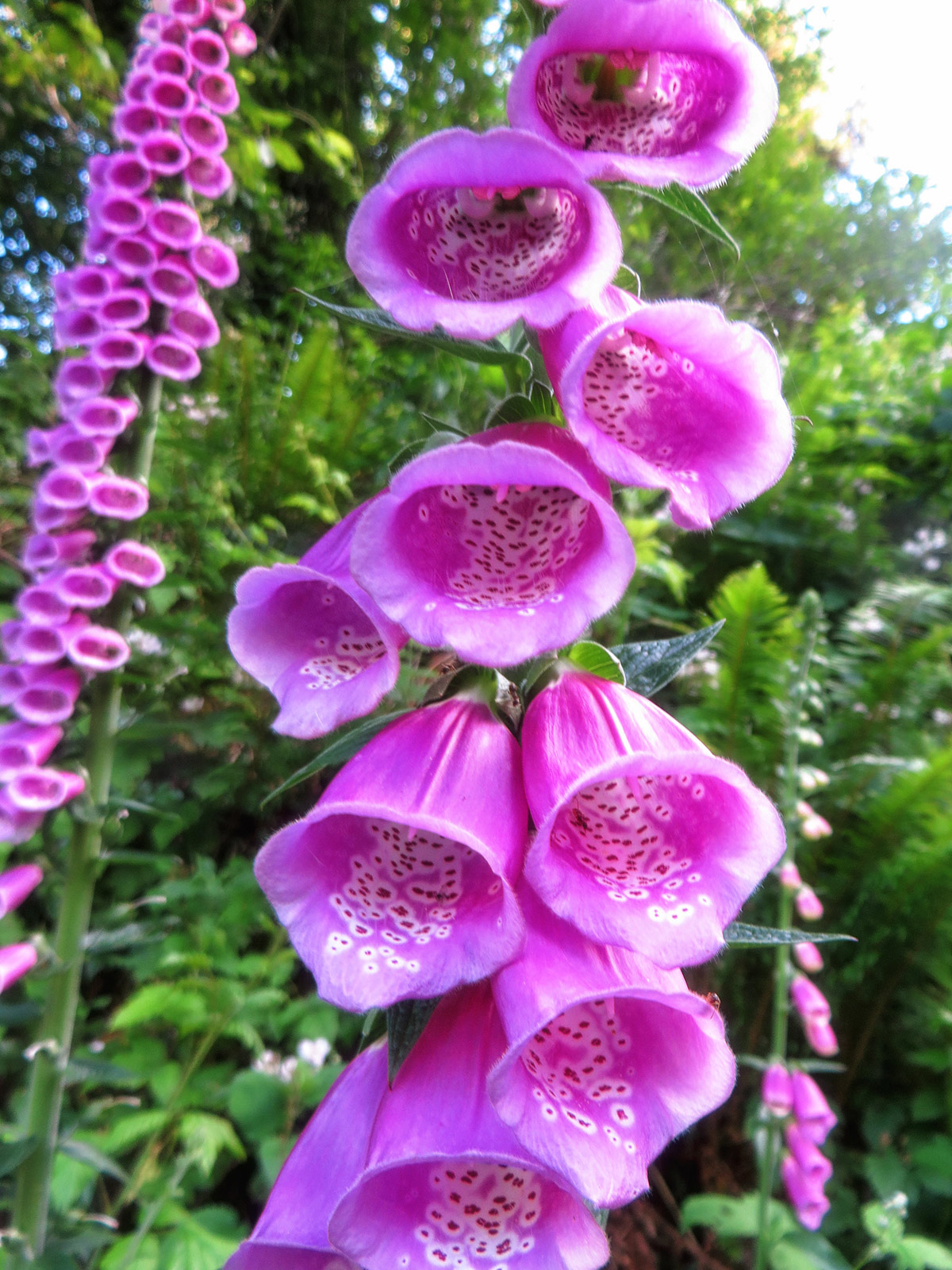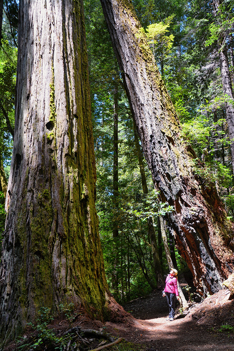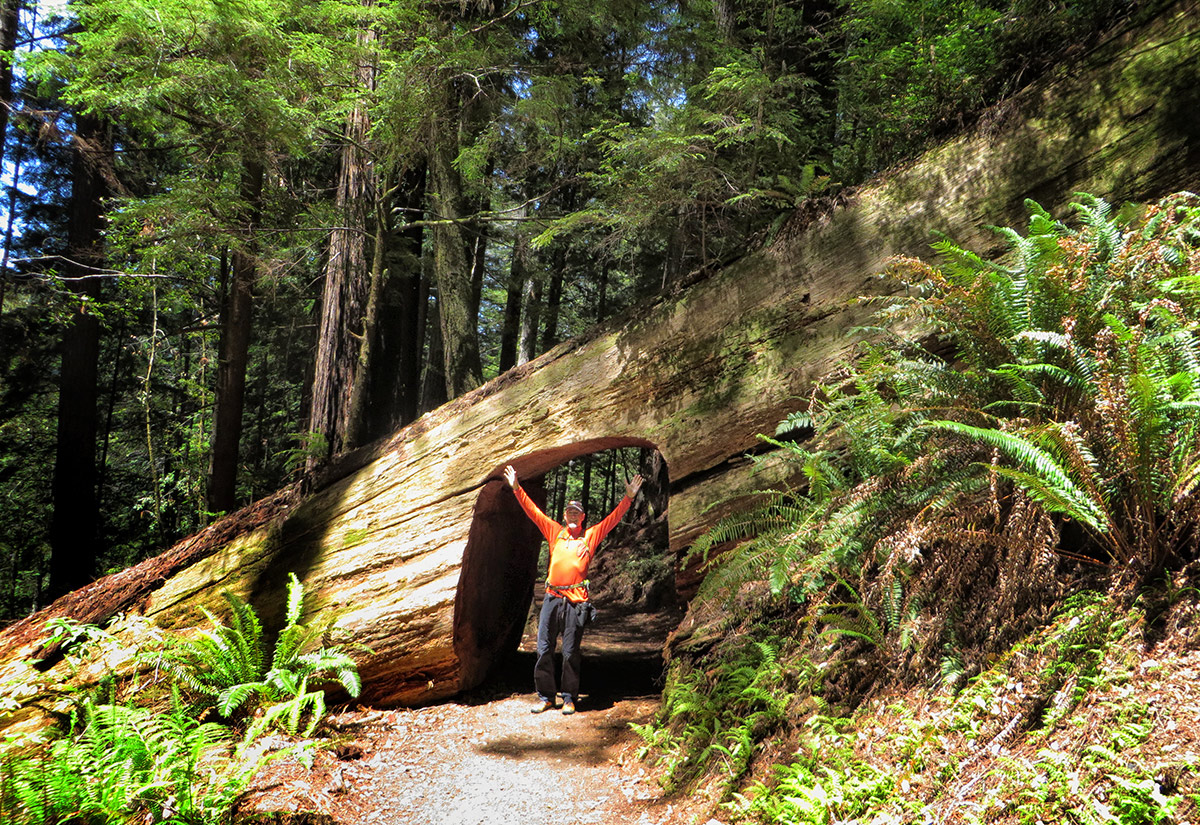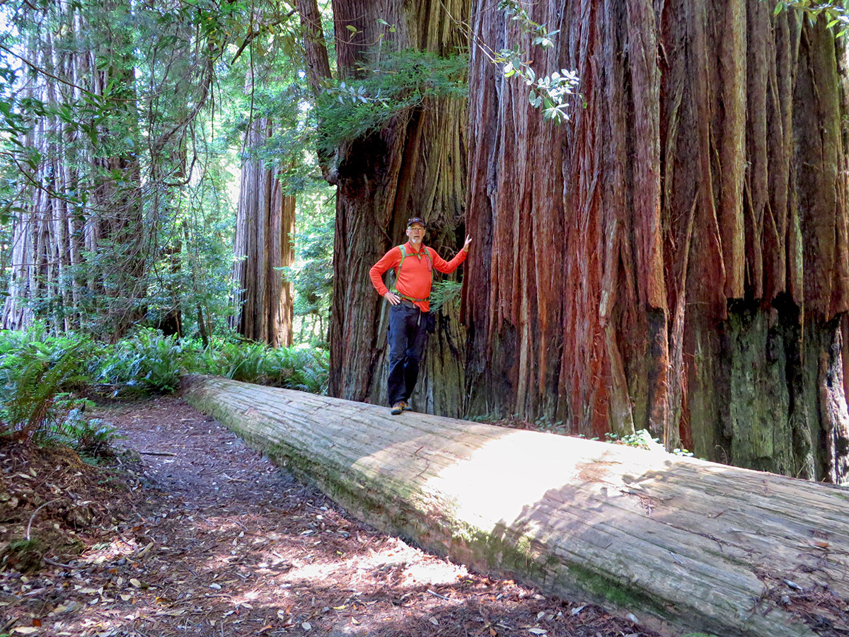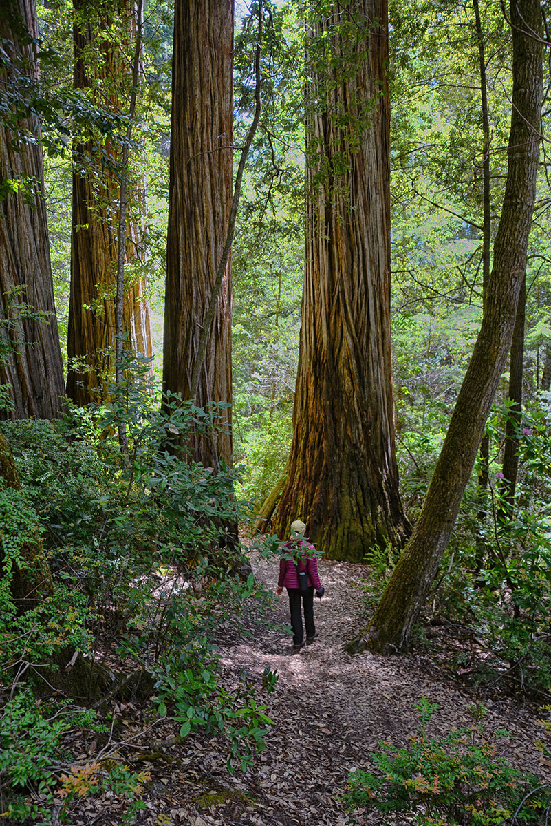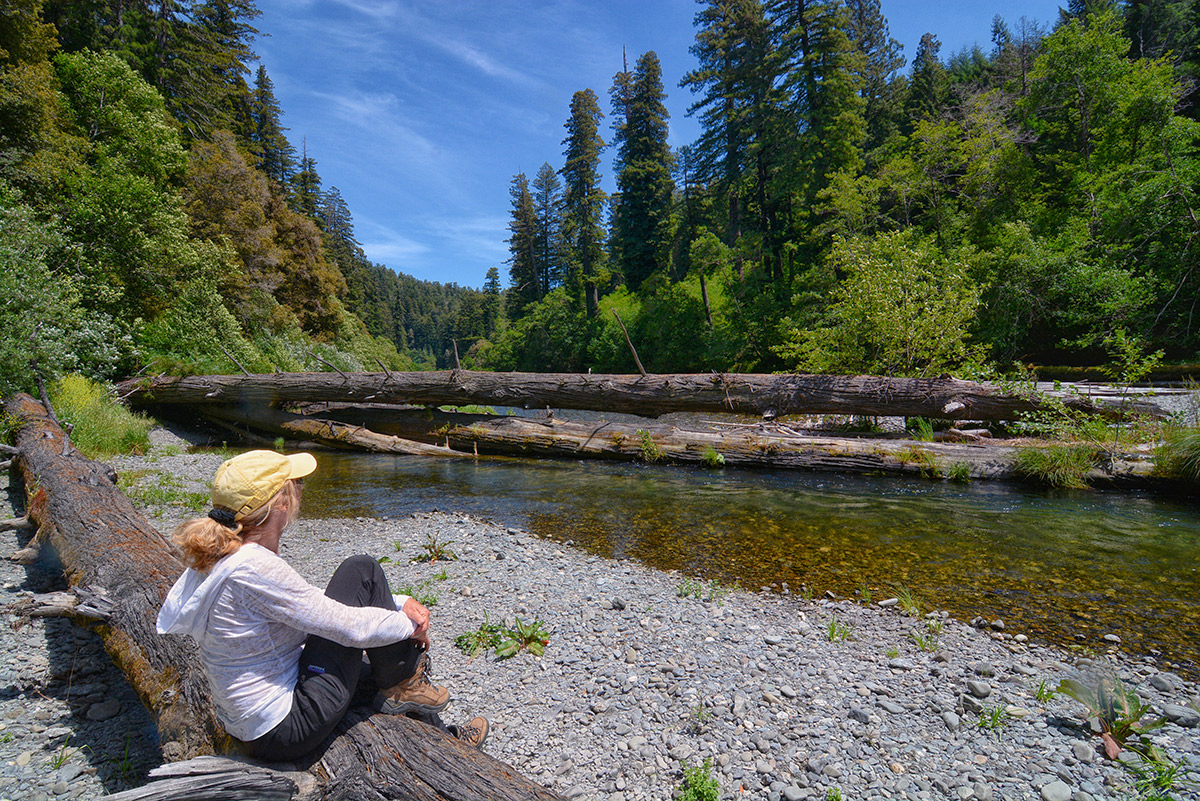 May 25th, again we ventured north to explore the Redwood National Park and hike in the old forests. We drove past Lady Bird Johnson Grove along Bald Hills Road to the Tall Trees access road where we needed a permit to enter through the locked gate, with a secret combination. The difficulty of getting to the Tall Trees Grove only adds to the grove’s mystique, it feels like you are entering some secret hideout. After locking the gate we drove 6 miles along a dusty logging rode to the trailhead. The trail descends steeply immediately, it is a 1.3 mile hike down to the Tall TreesGrove. There were many pink rhododendrons along the trail nestled among the redwoods rising tall and straight from the steep hillside. We reached the bottom of the trail at the Tall Trees Grove and it was beautiful, uniquely special, a reserved magnificence with dark-trunked monster redwoods set among 5 ft tall ferns. This grove is well-known for the Libby tree, which at one time was the world’s tallest known living thing. Although taller redwoods have since been found the Libby tree is still interesting because it’s the only one of the former tall trees that you can actually see. After walking around the loop and marveling at these magnificent redwoods, we took a trail that leads to the Redwood Creek and came out into the sunshine. The broad creek glittered in the sunlight and with its gravel banks and expansive views of the surrounding redwood-covered hillsides, it is a beautiful scene to experience. We stayed for awhile to soak up the beauty. With a permit you can camp anywhere along the creek banks and we saw some backpackers arriving to spend the night as we hiked the steep long grade back up to our car.