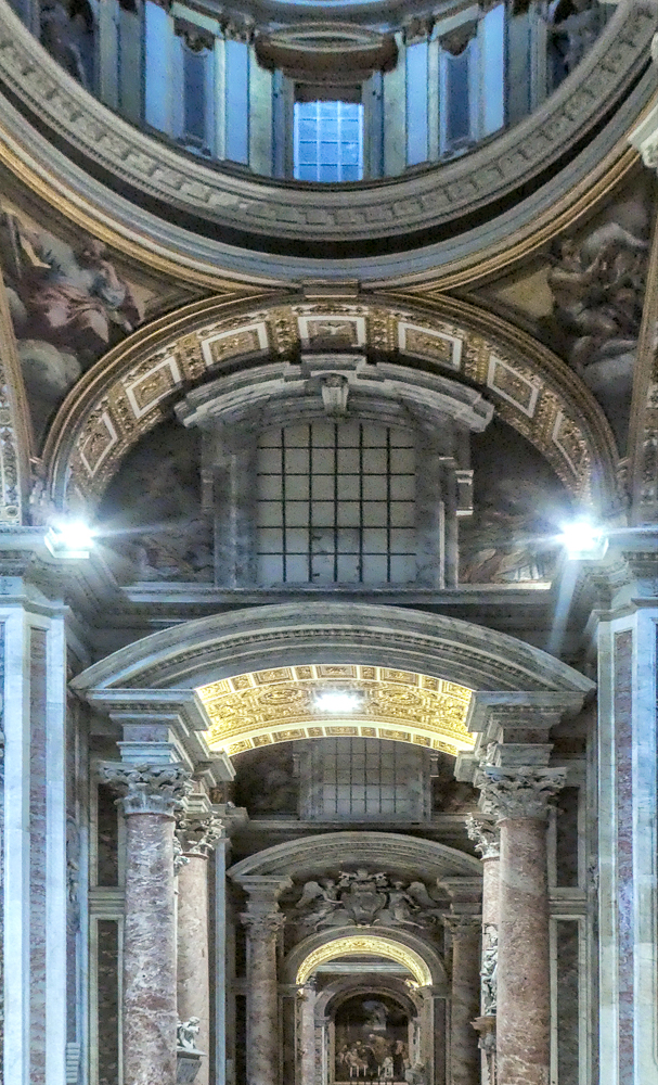 There are four arcaded stories, the first three each have eighty arches, framed by beautiful columns. It’s hard to believe that walking on the cobblestones around the Colosseum, we were walking on the same stones the ancient Romans walked on over 2600 years ago. After our tour we went to see the Roman Pantheon, near our apartment, the crowds were minimal so we were able to get inside and see the Pantheon’s dome, the world’s largest unreinforced concrete dome. The height to the central opening (oculus) to the sky and the diameter of the interior circle are the same, 142 feet. It is one of the best-preserved of all Ancient Roman buildings because it has been used as a church. We had dinner at restaurant in the square in front of the Pantheon called Piazza della Rotonda. Click on thumbnail to view images