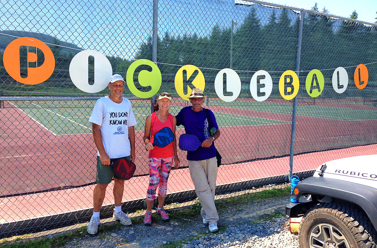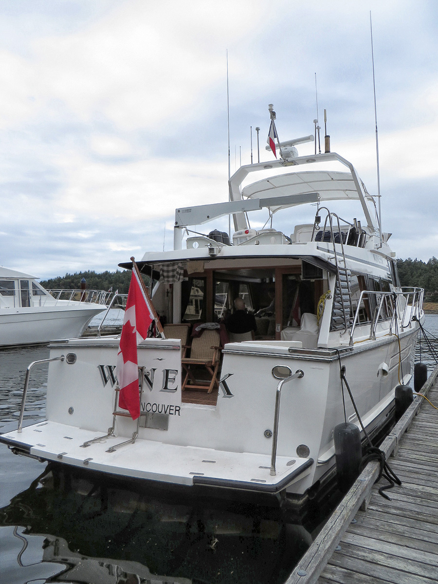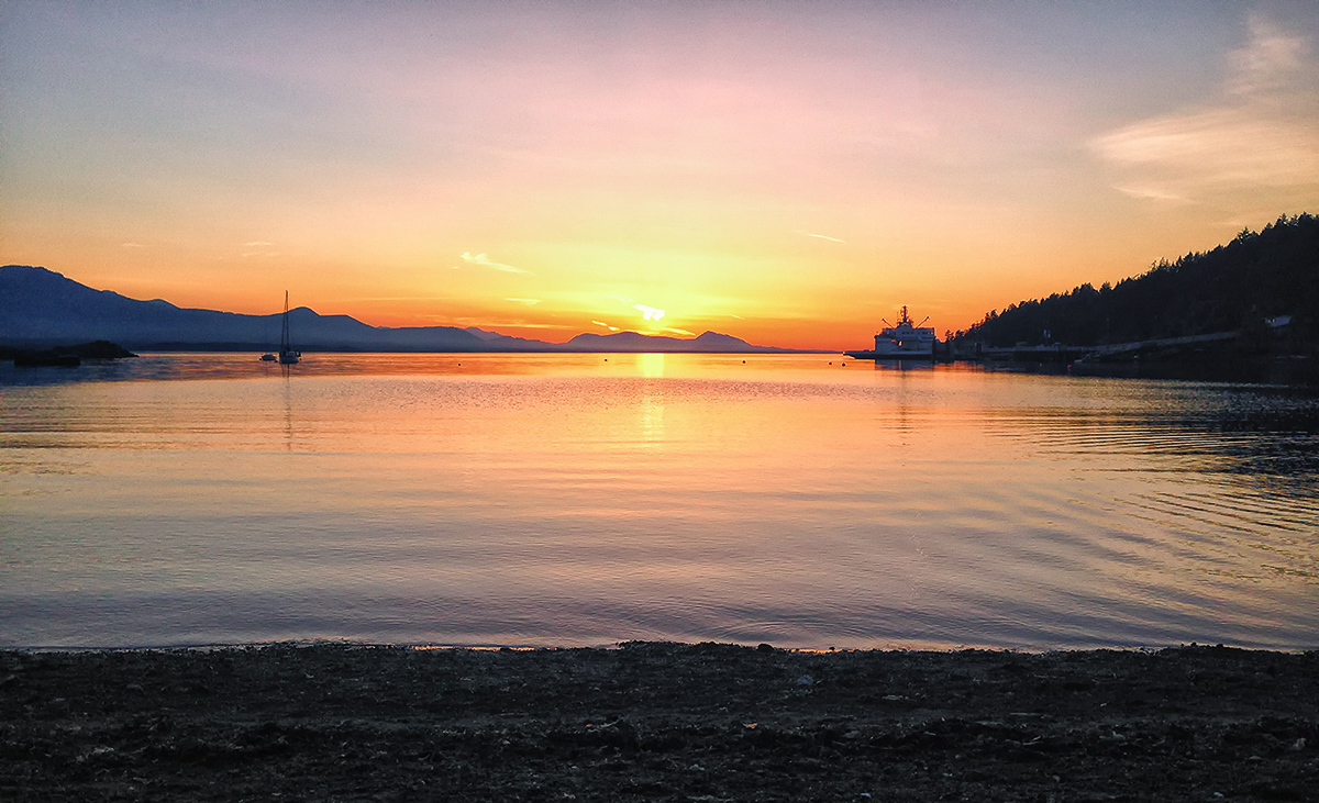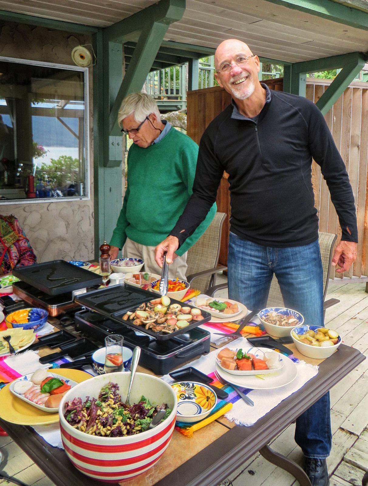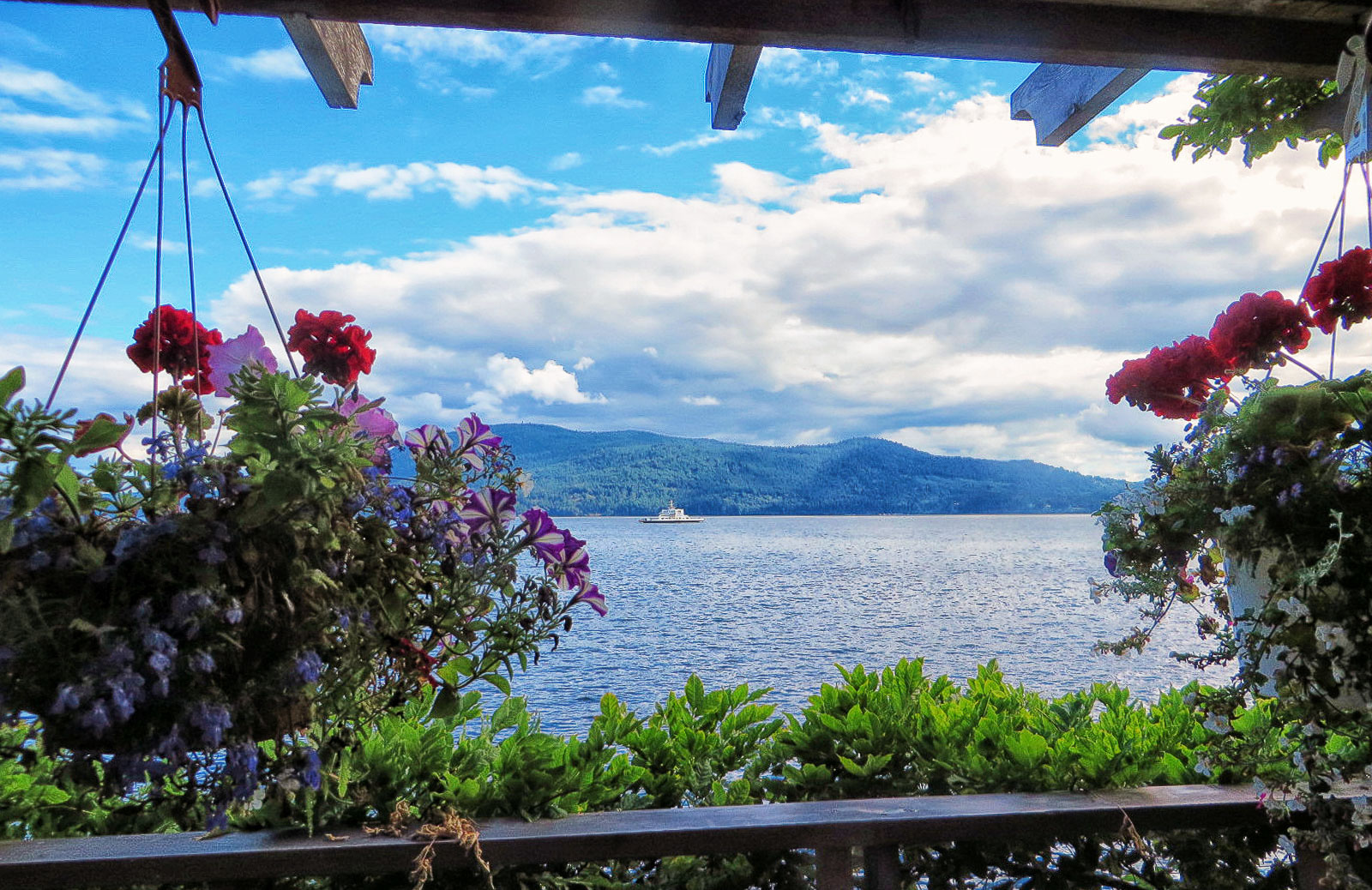 June 21st, Saturday, we left poor Sherpa at the Traveland in Langley to get repaired, and took the ferry over to Salt Spring Island to visit with my sister Sue and Denis at their charming place near Vesuvius on Salt Spring Island. It was like staying in a B&B for three weeks, eating fresh food from their garden, playing pickle ball four times a week and having great meals every day. The weather was hot and sunny most of the time so we went for long swims in the ocean before dinner. Fortunately we were able to watch all the World Cup Soccer games either with Sue and Denis or at a sports bar in Ganges called the Shipstones English Pub. We visited with Byron and Ellie Hender for lunch on their beautiful yacht, Winesk, at the Royal Vancouver Yacht Club on Salt Spring. Had a gourmet dinner evening at Michelle’s place, eating out on his deck perched on a rock outcropping overlooking the ocean. What a fabulous setting and great company. We hiked through the forest at Channel Ridge, and had great views looking out across the channel. One evening we enjoyed the beautiful voices of the African singers at the church in Ganges. We sadly had to leave Sue’s to continue our journey. We left Salt Spring on July 15th and drove back to Vancouver. What a great time we had together and we will definitely return next year.