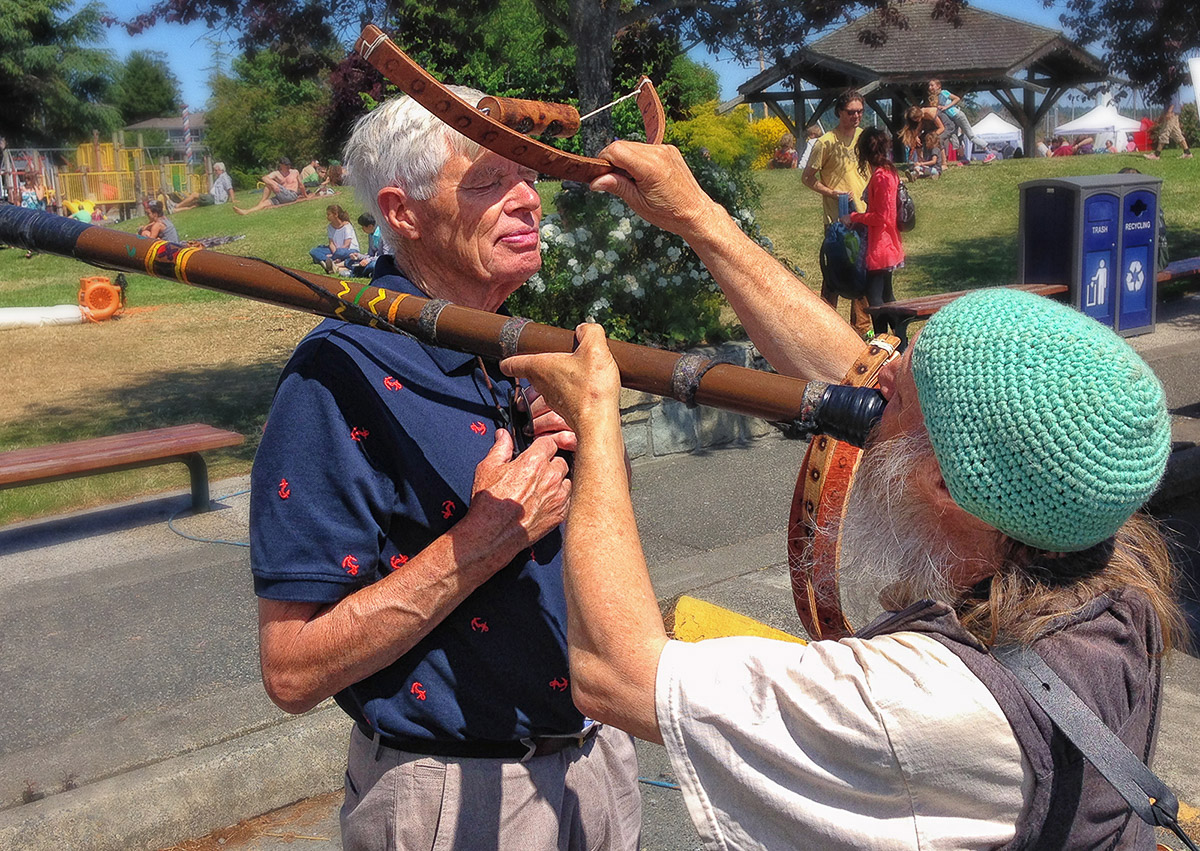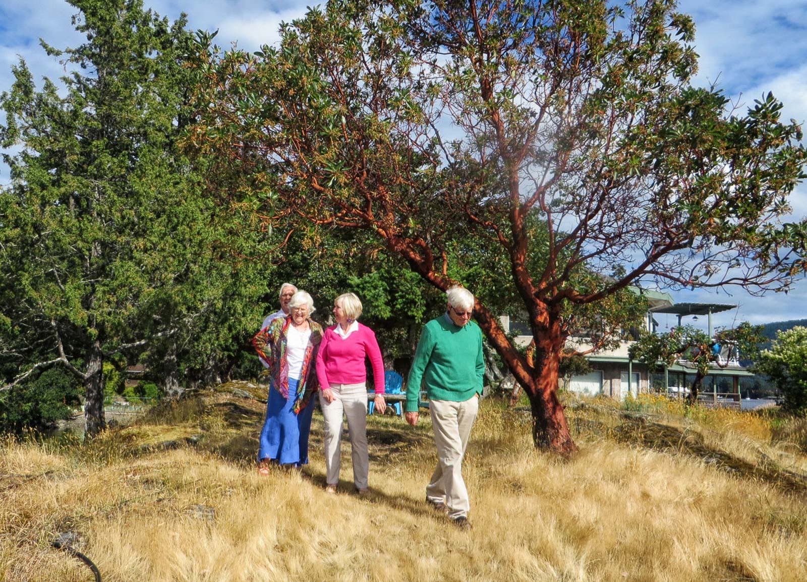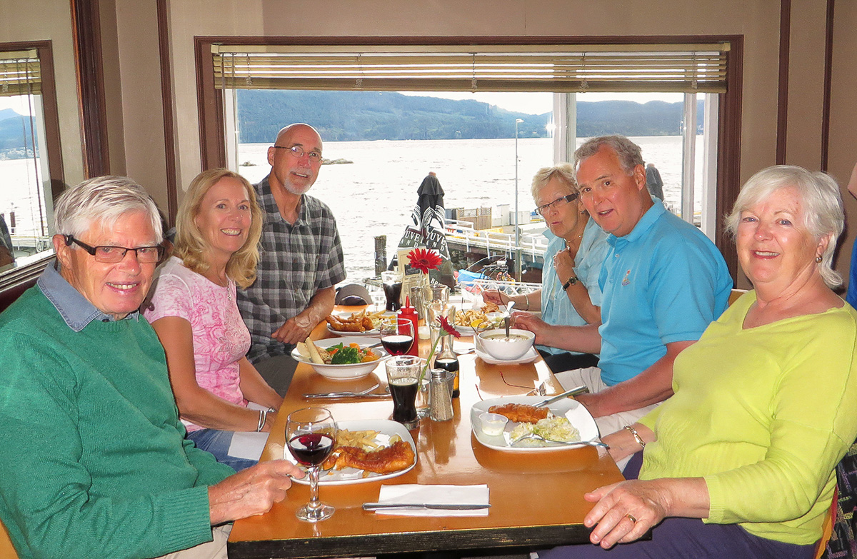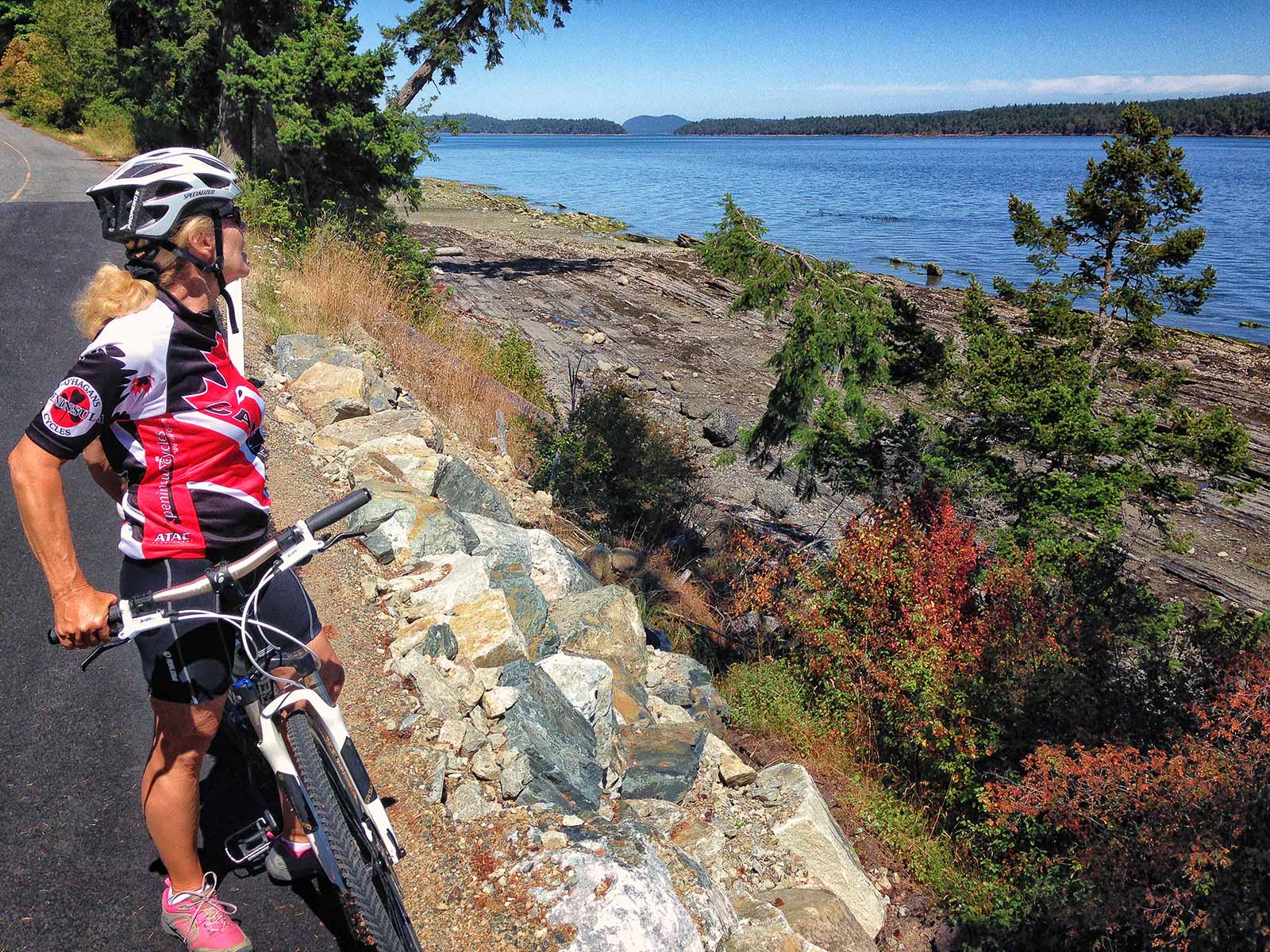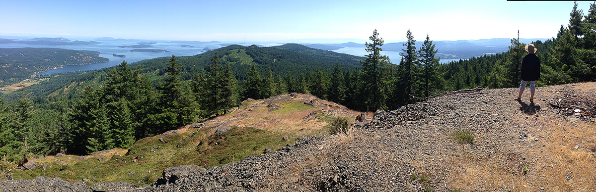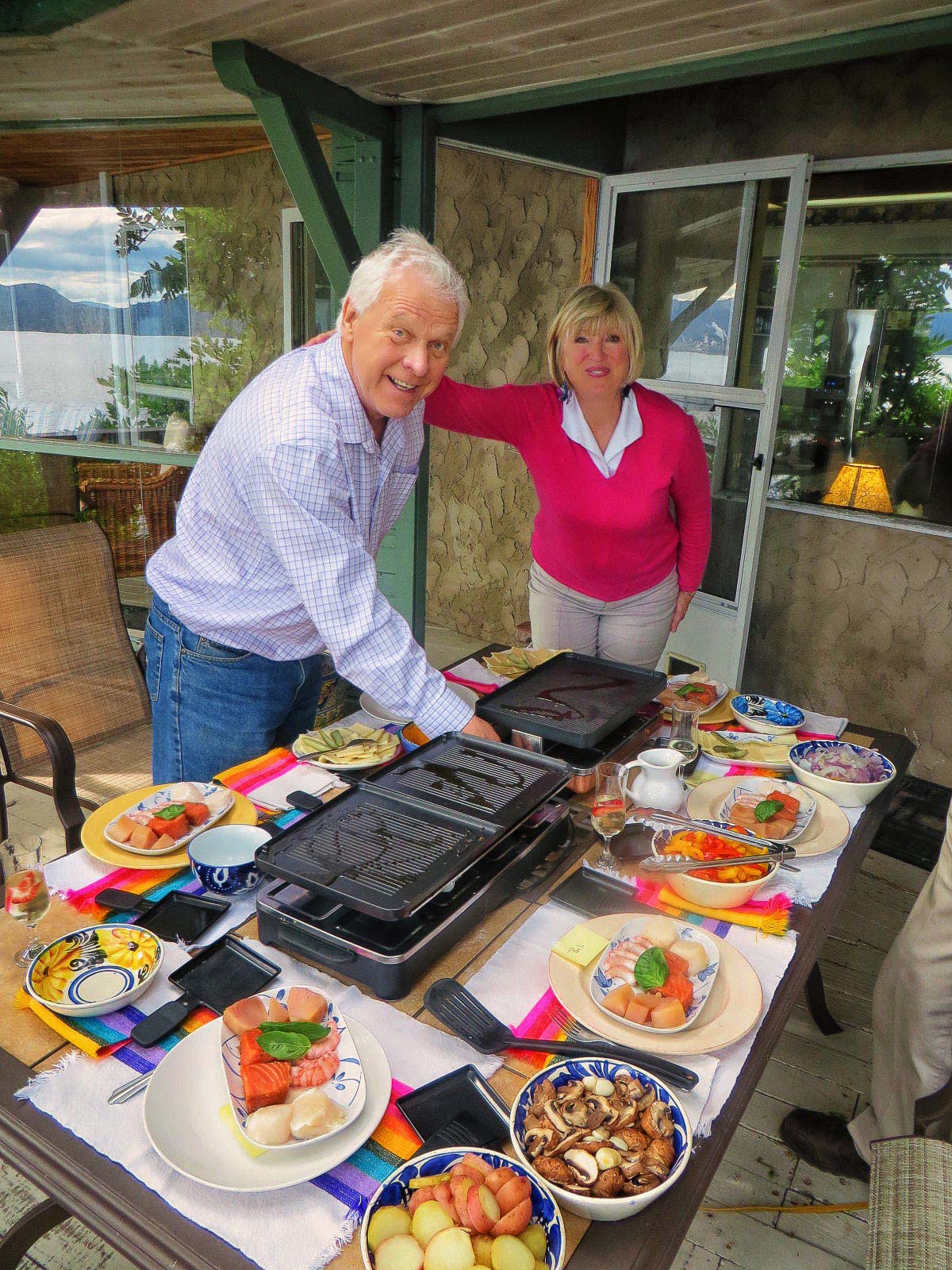 June 21st, Saturday, we left poor Sherpa at the Traveland in Langley to get repaired, and took the ferry over to Salt Spring Island to visit with my sister Sue and Denis at their charming place near Vesuvius on Salt Spring Island. It was like staying in a B&B for three weeks, eating fresh food from their garden, playing pickle ball four times a week and having great meals every day. The weather was hot and sunny most of the time so we went for long swims in the ocean before dinner. Fortunately we were able to watch all the World Cup Soccer games either with Sue and Denis or at a sports bar in Ganges called the Shipstones English Pub. We visited with Byron and Ellie Hender for lunch on their beautiful yacht, Winesk, at the Royal Vancouver Yacht Club on Salt Spring. Had a gourmet dinner evening at Michelle’s place, eating out on his deck perched on a rock outcropping overlooking the ocean. What a fabulous setting and great company. We hiked through the forest at Channel Ridge, and had great views looking out across the channel. One evening we enjoyed the beautiful voices of the African singers at the church in Ganges. We sadly had to leave Sue’s to continue our journey. We left Salt Spring on July 15th and drove back to Vancouver. What a great time we had together and we will definitely return next year.