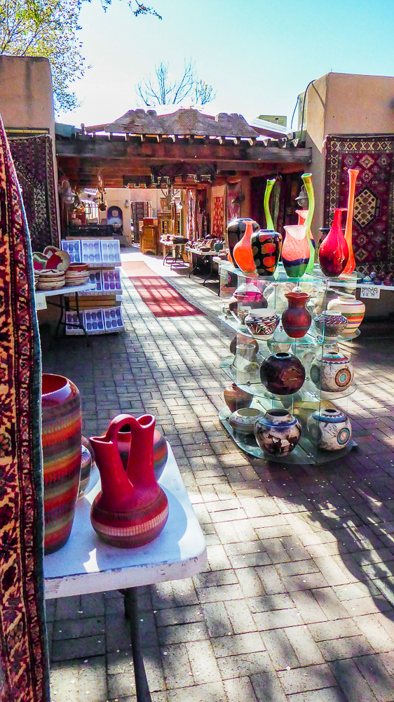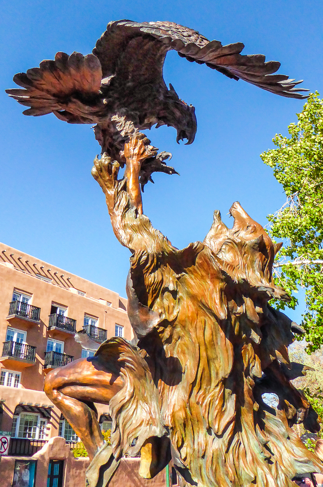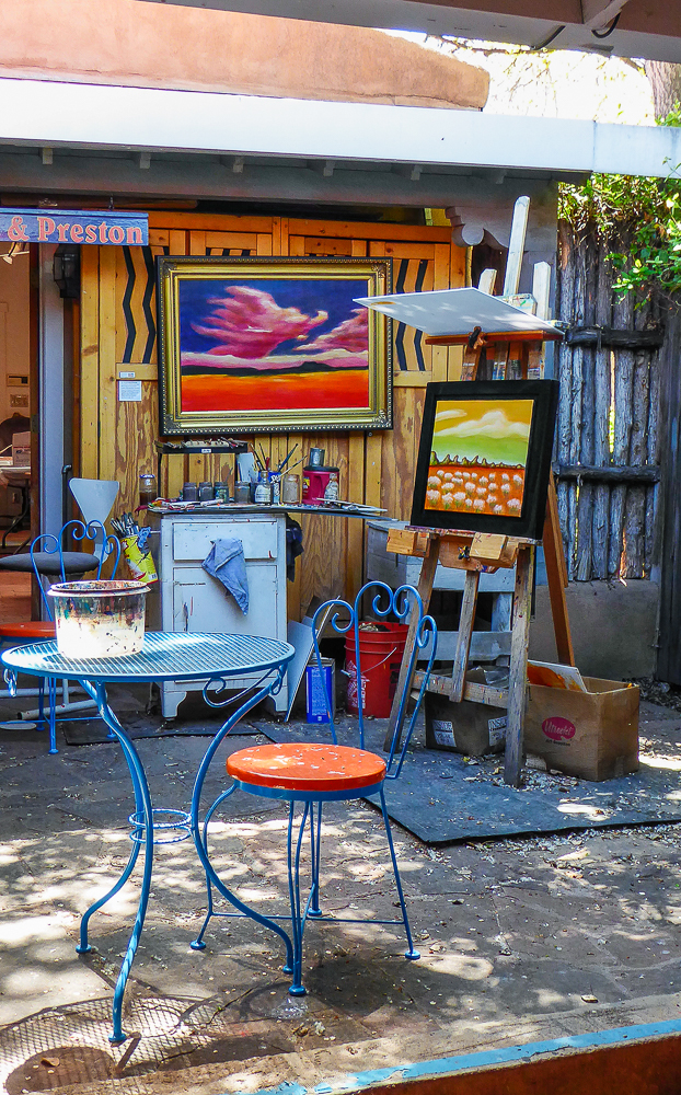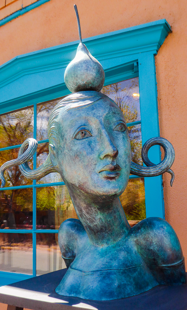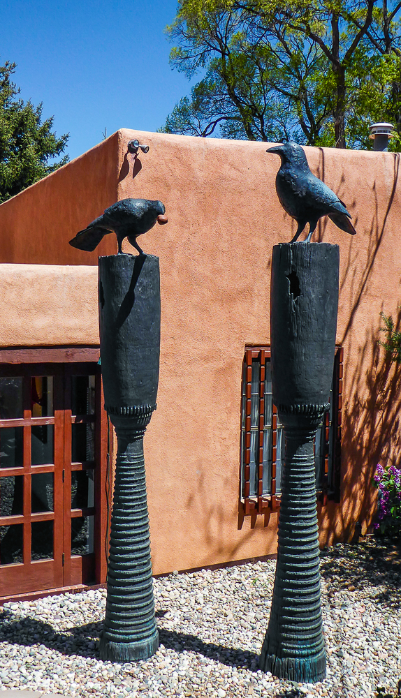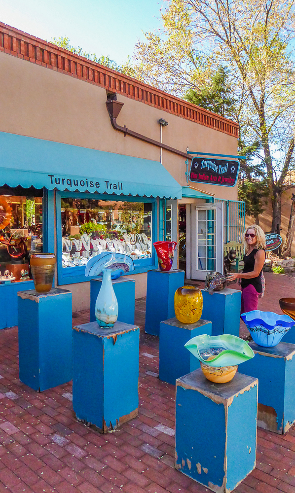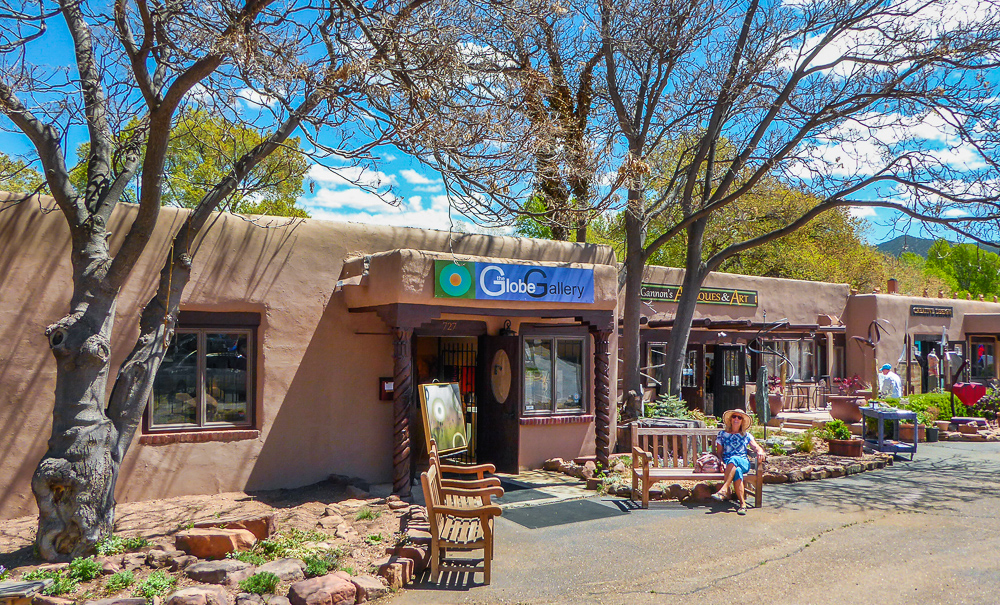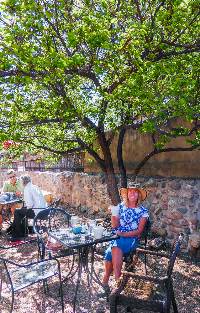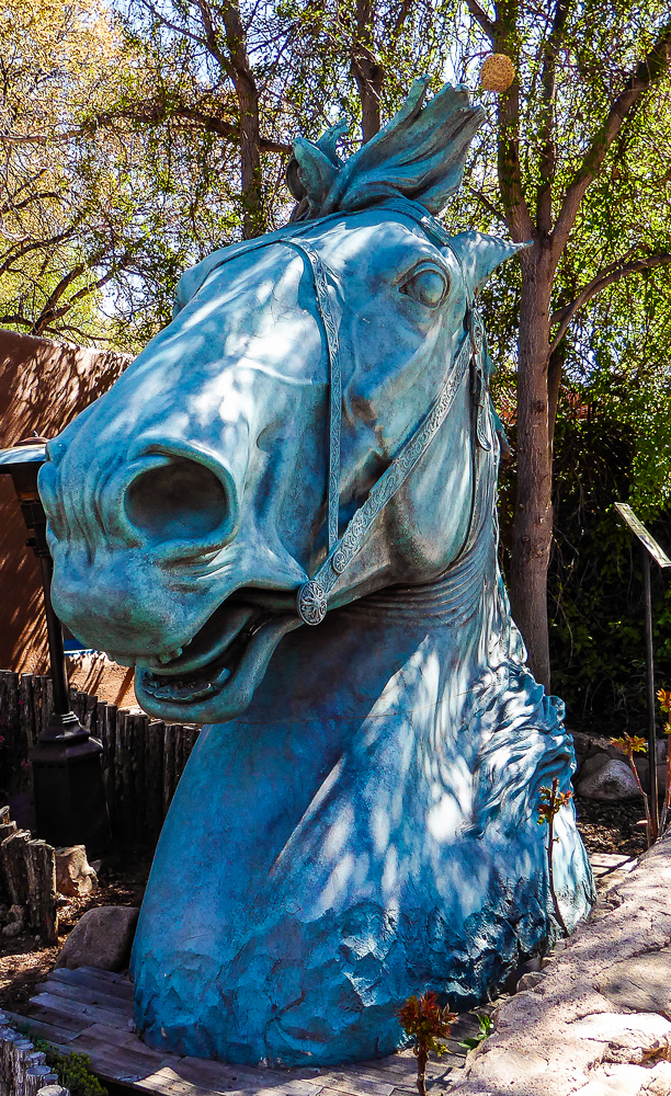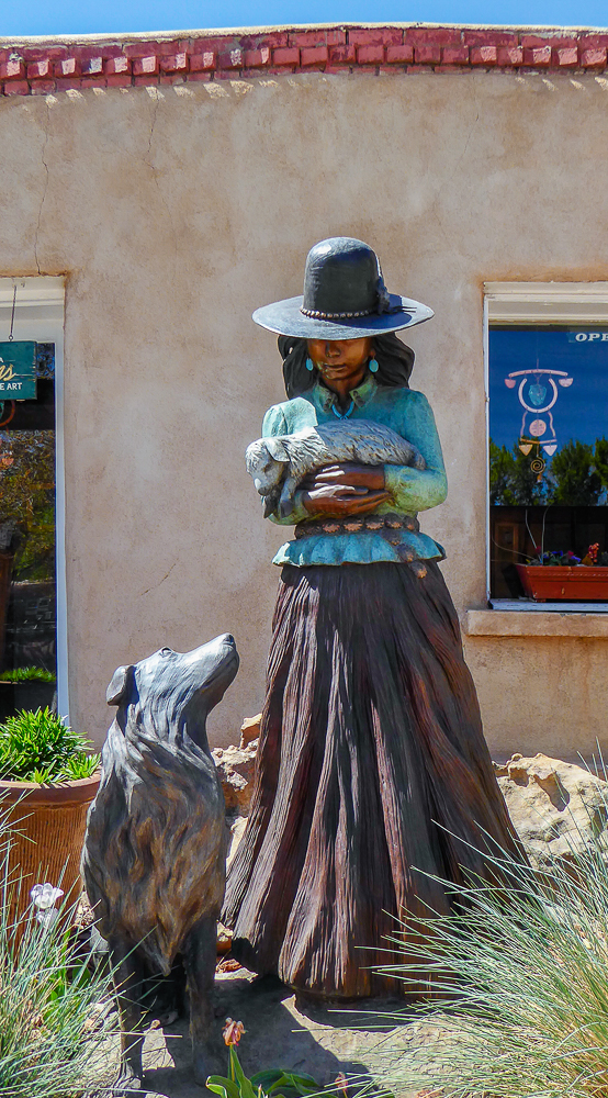We finally arrived in Santa Fe a day later than we had planned because of RV repairs in Tucson. We are staying at the Trailer Ranch RV Resort only 4 miles from downtown Santa Fe. After settling into our site we drove into Santa Fe and went for dinner at the Blue Corn Café. We walked the streets and gazed at all the beautiful art pieces in the windows and on the sidewalks. The next day we drove to Canyon Road which is an entire street dedicated to galleries and art shops. We had breakfast at The Teahouse, sitting outside under the trees, enjoying the best oatmeal I have ever eaten, (and I’ve eaten a lot of oatmeal). We walked up and down Canyon Street exploring all the unique shops with different art sculptures and paintings, and Décor for homes. Click on thumbnail to view images