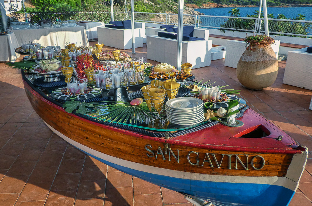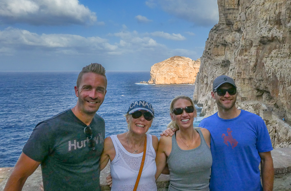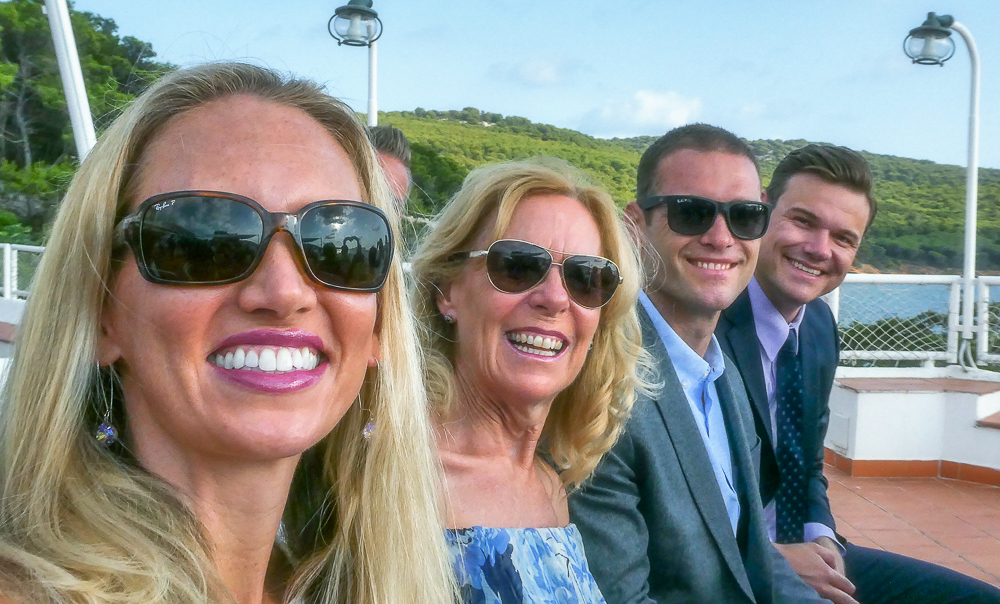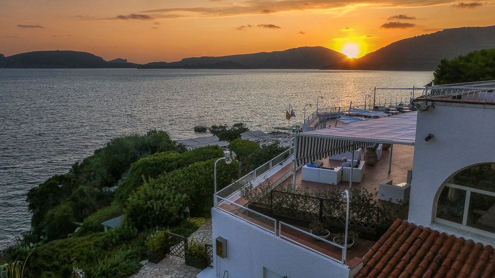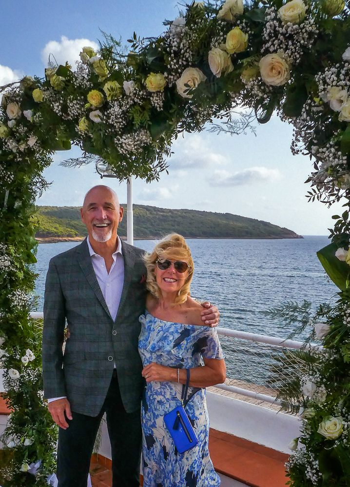 Italy here we come! On September 7th we arrived in Sardinia with Kevin and Ericka to attend Chris Dore and Lisa’s wedding. We landed in the town of Alghero on the northwest coast of Sardinia, Italy. We are all staying at the El Faro Hotel, a beautiful resort overlooking the sea in the Regional Natural Park of Porto Conte. The setting is perfect for a wedding. When we arrived we were so excited to see Tony and Darlene Dore again after many years and of course, Chris and Lisa and Tony. We hung out by the pool reminiscing and meeting their friends from Ohio who came for the wedding. In the evening the dinner was in the hotel with all the family and friends of the bride and groom. Eric finally arrived for dinner and we spent the rest of the night partying with the young.