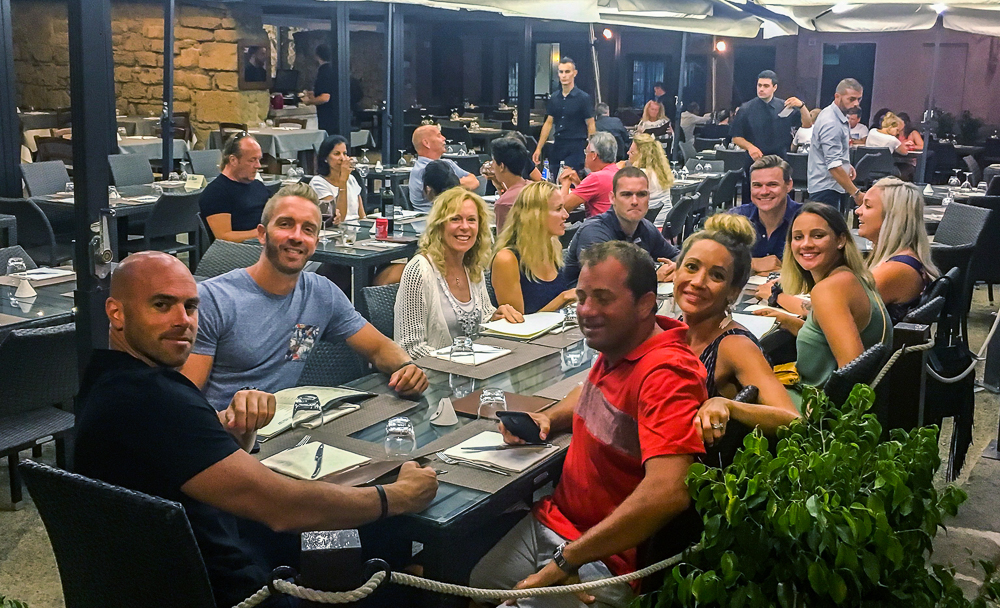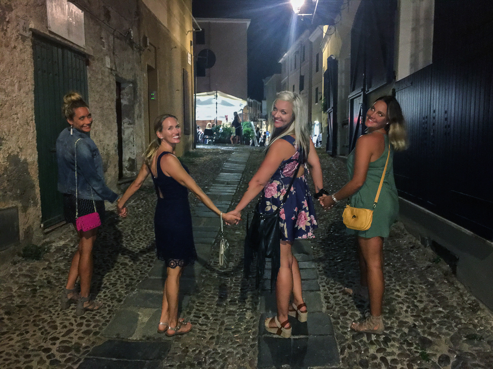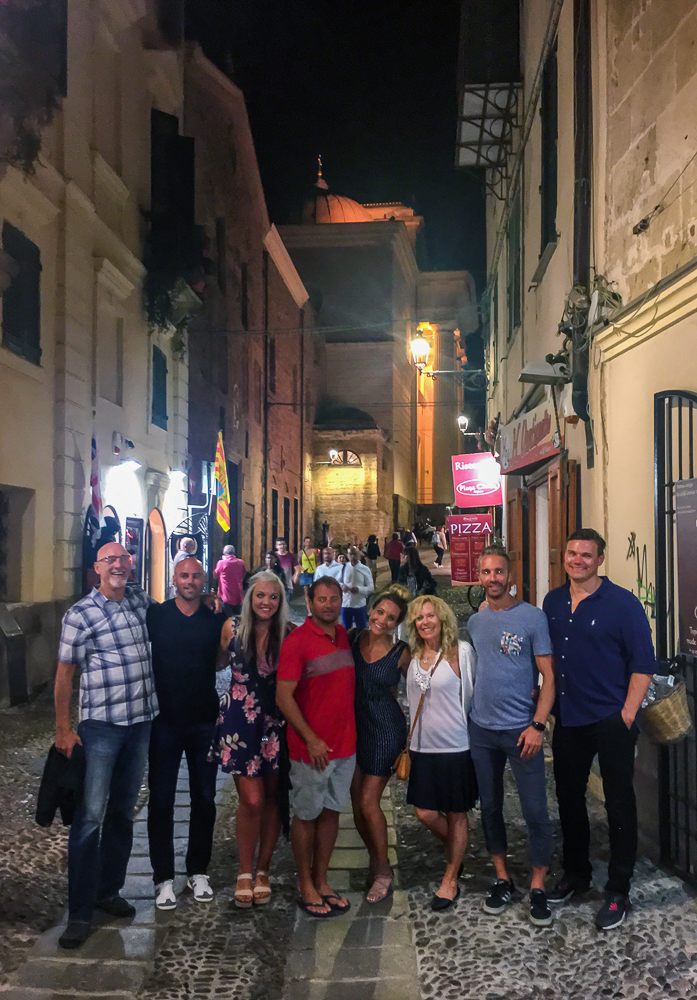 On Saturday after the wedding a group of us went to Spiaggia di Porto Ferro beach to surf and relax on the beach and drink beer. Sardinia is a year round beach destination and home to an especially beautiful stretch of sand: Spiaggia di Porto Ferro. The sands were extremely fine, the waves were gentle and the water temperature perfect. Therefore, the surfing was fabulous and I was able to ride the waves several times! Our last night we went to visit the town of Alghero and have dinner. Alghero is one of Sardinia’s most beautiful medieval cities, encircled by ancient walls, it’s known for its cobblestoned old center where we had dinner at an outdoor restaurant. After dinner we walked the cobblestone streets, shopped and celebrated the new married couple, Chris and Lisa Dore. Click on thumbnail to view images
