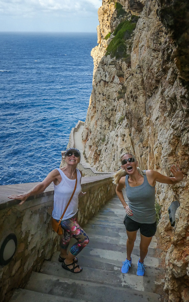 The next morning Bob, Kevin, Ericka, Chris Craft and myself went to see Neptune’s Grotto, a stalactite cave with 600 steps that lead down into this dramatic seafront cavern. The cave was discovered by a local fisherman in the 18th century and has since become a popular tourist attraction. The Grotto gets its name from the Roman god of the sea, Neptune. Going down the 600 stars was easy as the views were amazing and the caves exceptional, walking through the entire cavern gazing at all the many stalactites. Going back up the stairs not so easy, but we made it.
