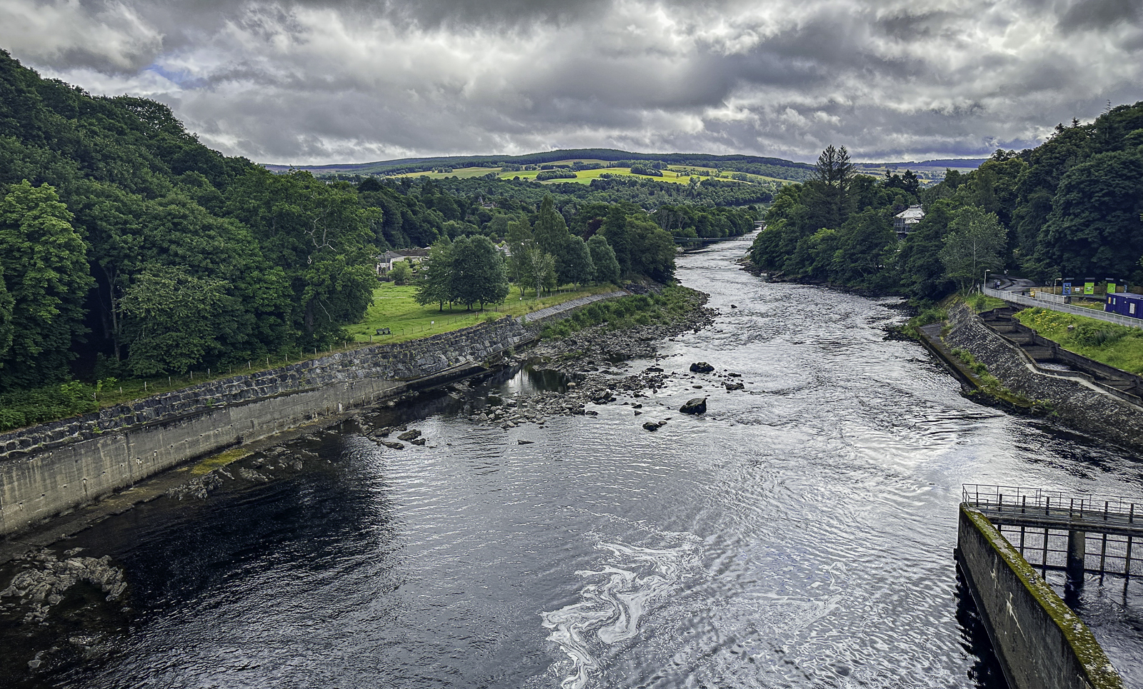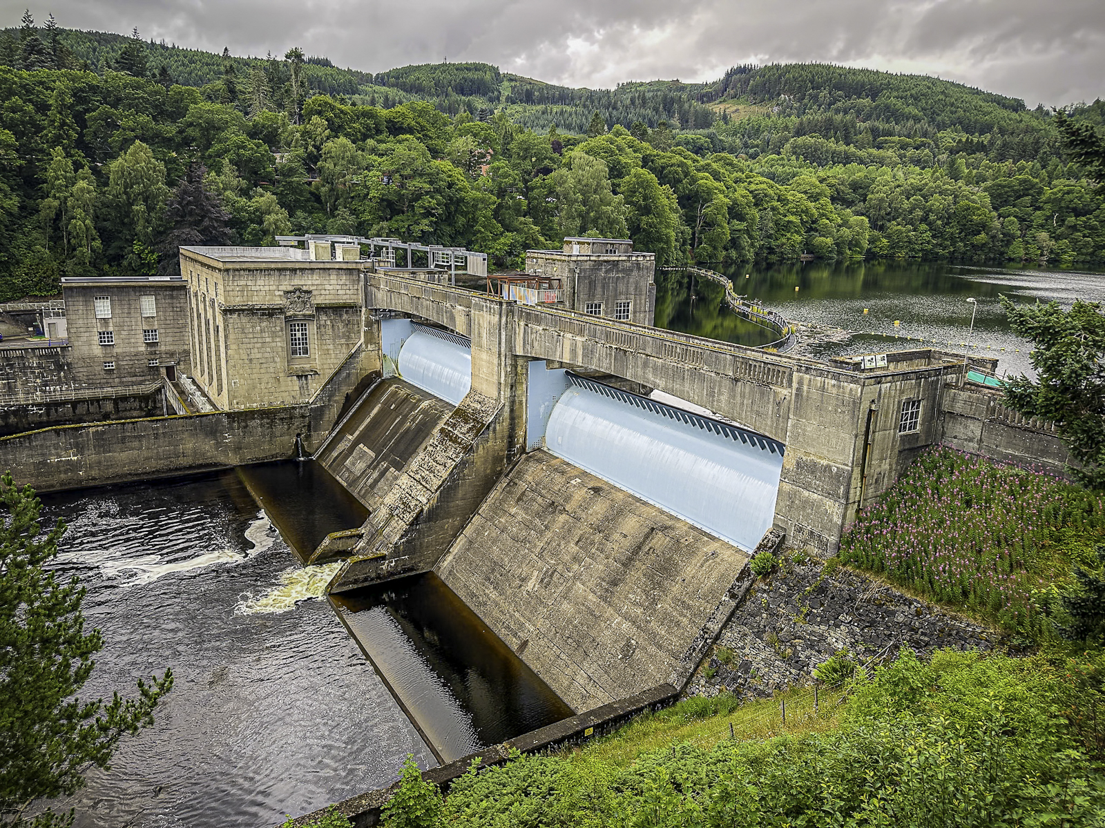 One of Pitlochry’s most distinctive features is its dam and hydroelectric system, constructed in the late 1940s as part of Scotland’s post-war push toward renewable energy. The Pitlochry Dam, built across the River Tummel, created Loch Faskally and became a model of mid-20th-century engineering. What makes the site especially notable is its fish ladder, an innovative solution that allows migrating Atlantic salmon to bypass the dam and continue upriver to their spawning grounds. Visitors can watch the salmon make their seasonal ascent through underwater viewing windows—a rare blend of engineering and natural wonder.