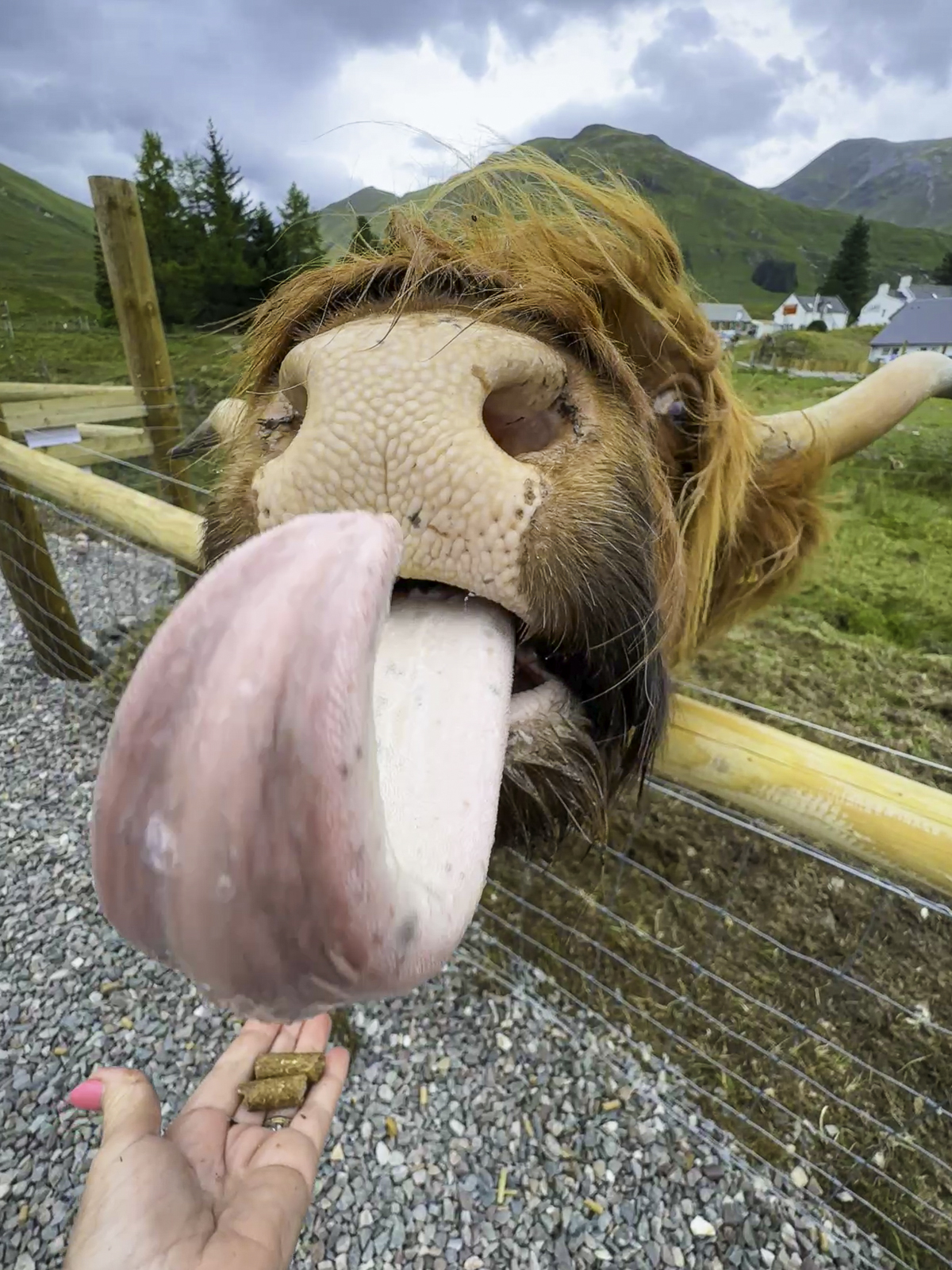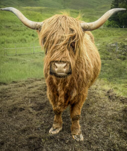 Isle of Skye. The drive carried us through some of the Highlands’ most beautiful scenery, and along the way we were treated to an up-close encounter with the famous Highland cows—one of Scotland’s oldest and most iconic breeds. With their long shaggy coats, sweeping horns, and gentle nature, these hardy animals have thrived in the Highlands for centuries, perfectly adapted to the region’s rugged climate and sparse grazing.