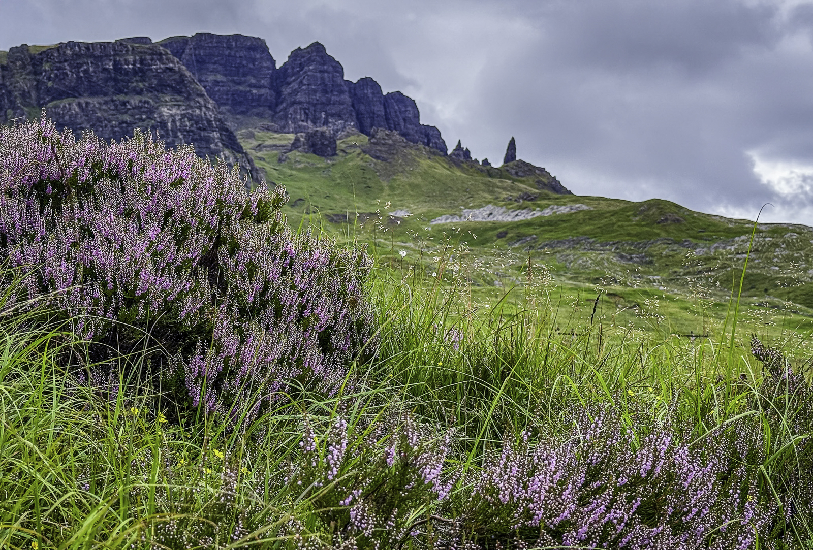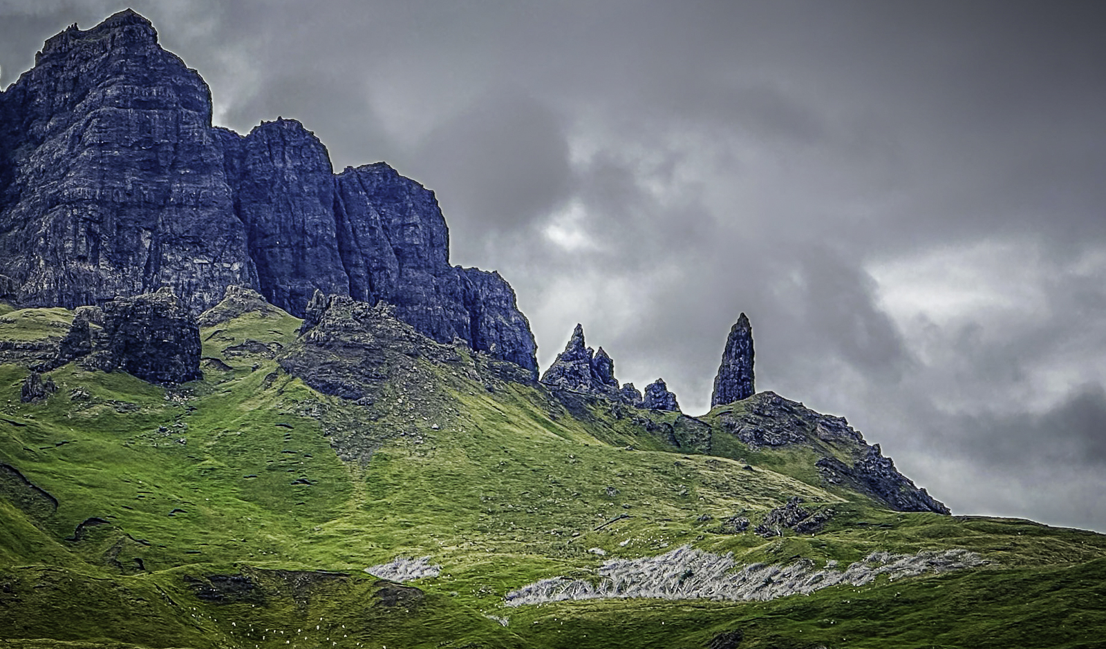 Before long, the unmistakable silhouette of the Old Man of Storr rose into view—its jagged basalt pinnacle standing dramatically against the sky. Formed by prehistoric landslips and sculpted over millennia by wind, rain, and ice, the Old Man is one of Skye’s most recognizable