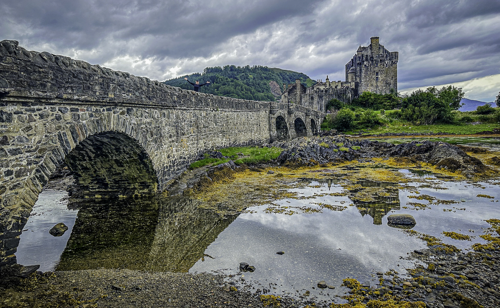 In the early 20th century, the castle was painstakingly restored, guided by historical research and traditional craftsmanship. The structure that stands today is both a careful reconstruction and a heartfelt tribute to the resilience of Highland culture and identity. Crossing the graceful stone footbridge toward its fortified walls—framed by sweeping lochs and distant mountains—offers an unforgettable introduction to the dramatic island landscapes that define western Scotland and sets the tone for the journey ahead. Click on thumbnail to view images