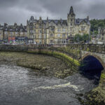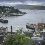 Oban is crowned by the distinctive McCaig’s Tower, a 19th-century granite structure modeled loosely after the Roman Colosseum. Built by a local philanthropist to provide winter employment, it overlooks the town and offers sweeping views of the bay and surrounding islands. Along the waterfront, Victorian buildings, seafood restaurants, and working fishing boats reflect the town’s maritime heritage.