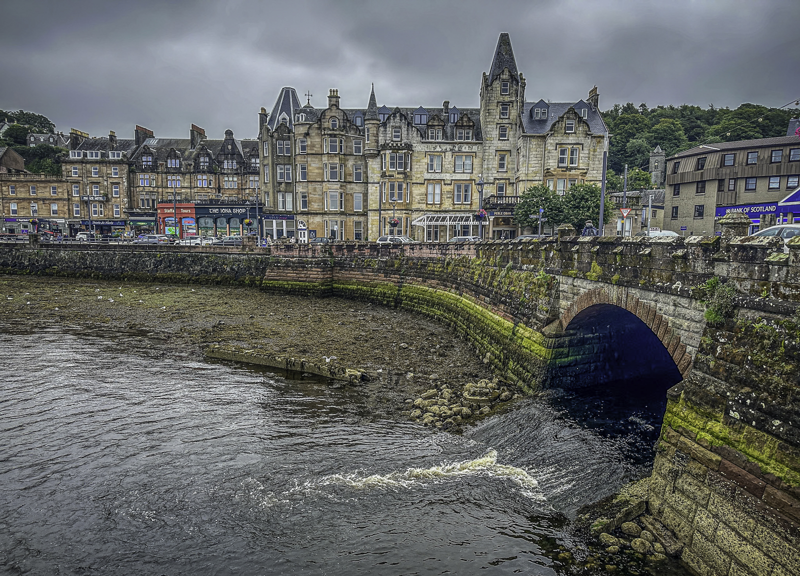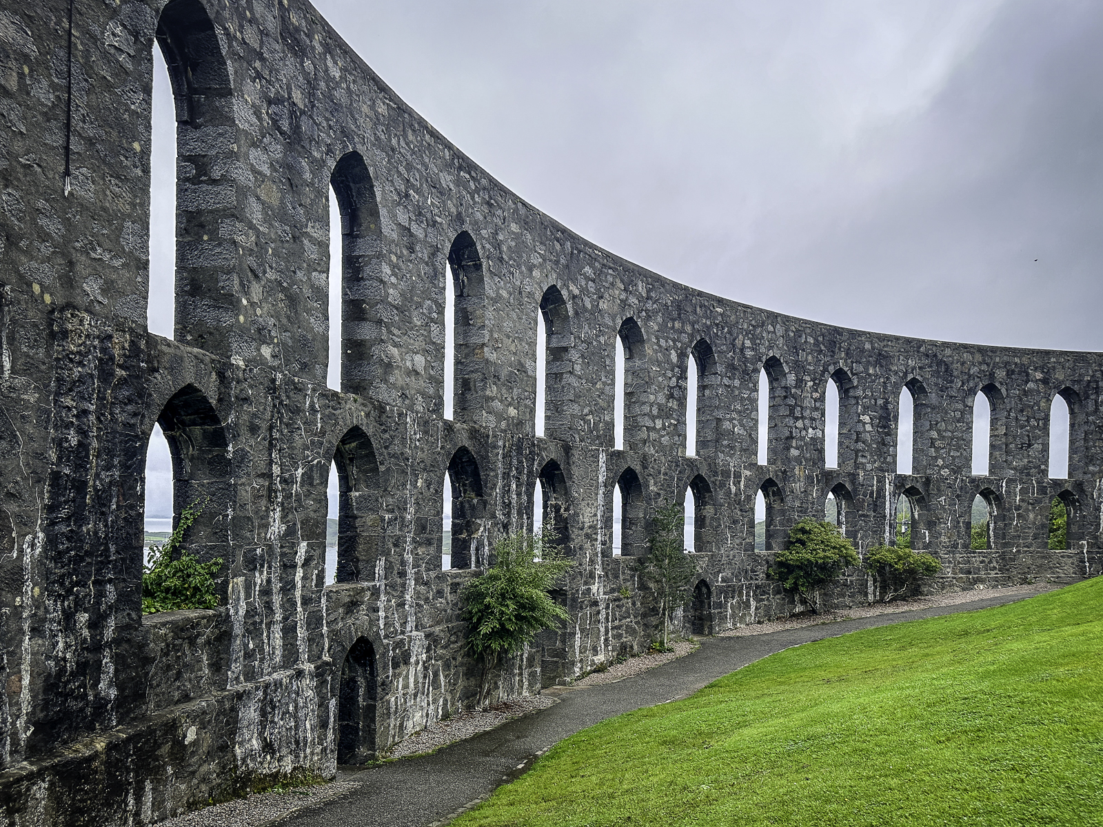 Oban is crowned by the distinctive McCaig’s Tower, a 19th-century granite structure modeled loosely after the Roman Colosseum. Built by a local philanthropist to provide winter employment, it overlooks the town and offers sweeping views of the bay and surrounding islands. Along the waterfront, Victorian buildings, seafood restaurants, and working fishing boats reflect the town’s maritime heritage.