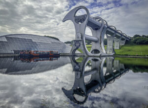 The design of the wheel is as remarkable as its engineering. Inspired by Celtic patterns, modern propeller blades, and the sweep of traditional boat-building forms, it stands as both a functional machine and a sculptural landmark. Its smooth rotation lifts boats from the lower canal basin to the upper aqueduct in just a few minutes, offering passengers a unique and almost otherworldly experience.