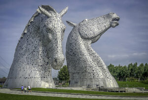 Often referred to informally as the Stirling Horses, the towering sculptures known as The Kelpies rise dramatically from the landscape near Falkirk, not far from Stirling. Completed in 2013, these 30-meter-tall steel horse heads are the largest equine sculptures in the world and have become one of Scotland’s most recognizable modern landmarks.