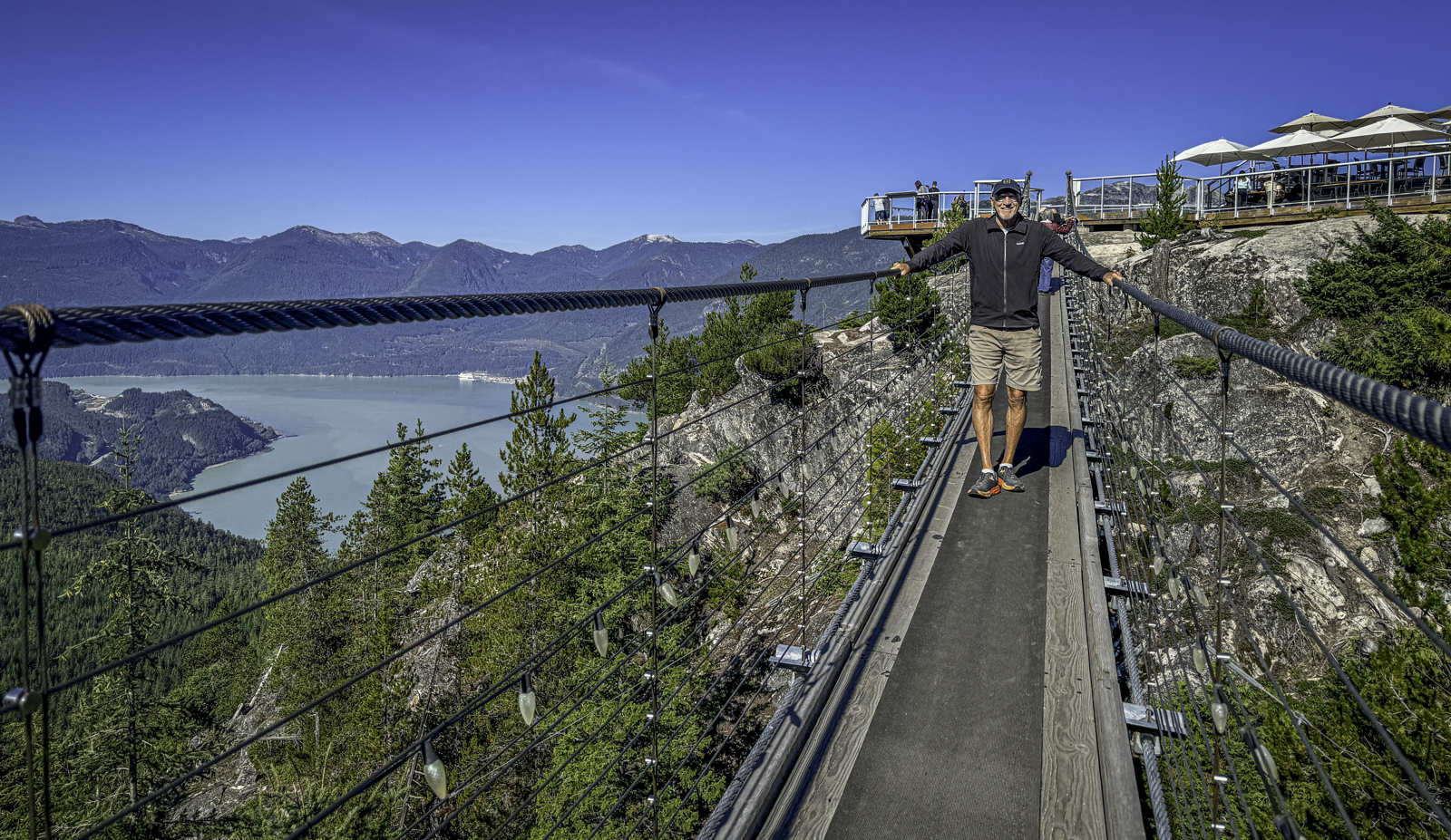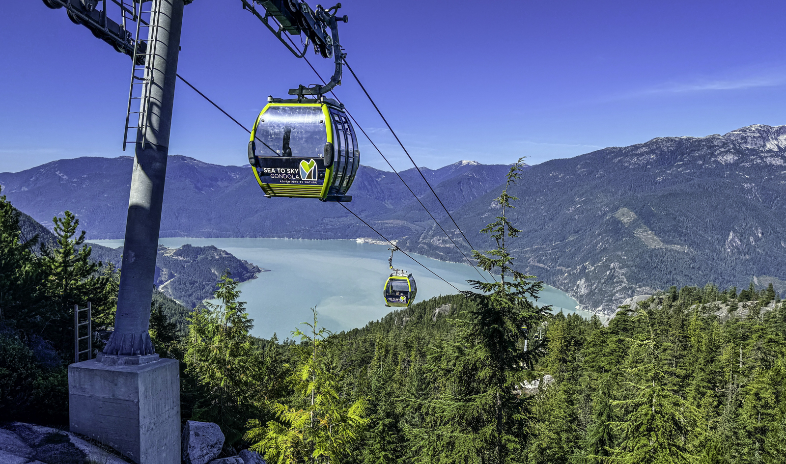 One of Squamish’s most popular attractions is the Sea to Sky Gondola, which offers visitors a chance to experience the stunning landscape from above. We boarded the gondola at the base, excited for the 10-minute journey that would take us 2,900 feet (885 meters) up the face of the mountain. As we ascended, we were treated to incredible panoramic views of the Stawamus Chief, one of the largest granite monoliths in the world, and the deep blue expanse of Howe Sound below. The ride was smooth and the scenery, nothing short of spectacular—the kind that makes you feel both awe-struck and small in the face of nature’s grandeur.