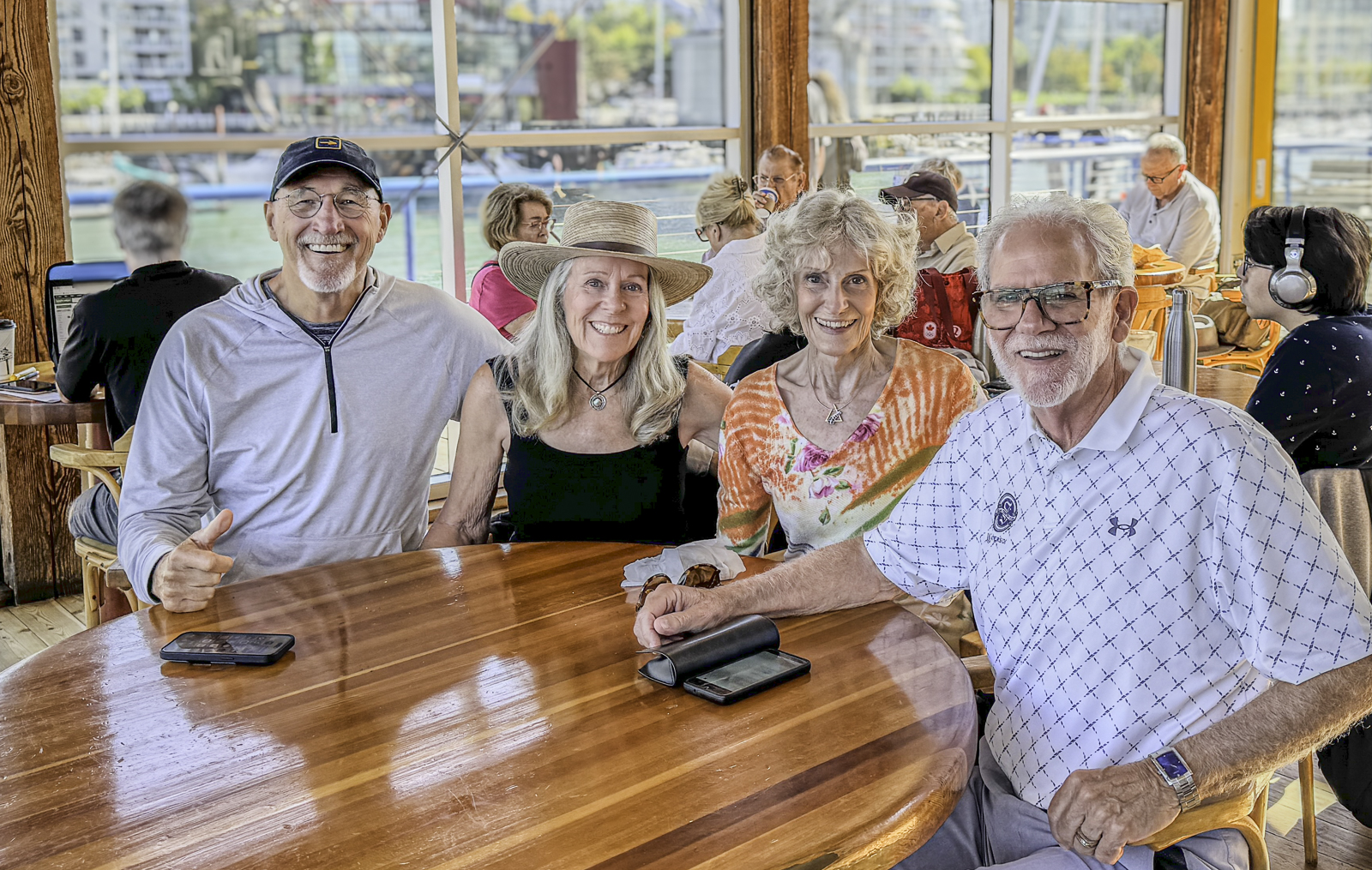 On our way back to the hotel, we took in the distinctive architecture that defines Vancouver’s ever-evolving skyline—modern glass towers set against the backdrop of mountains and ocean. For lunch, we headed to Mahony’s and Sons Tavern on False Creek, where we met more old friends, Spence McTavish and Sherry Hurst. It was another joyful reunion filled with laughter and good conversation.