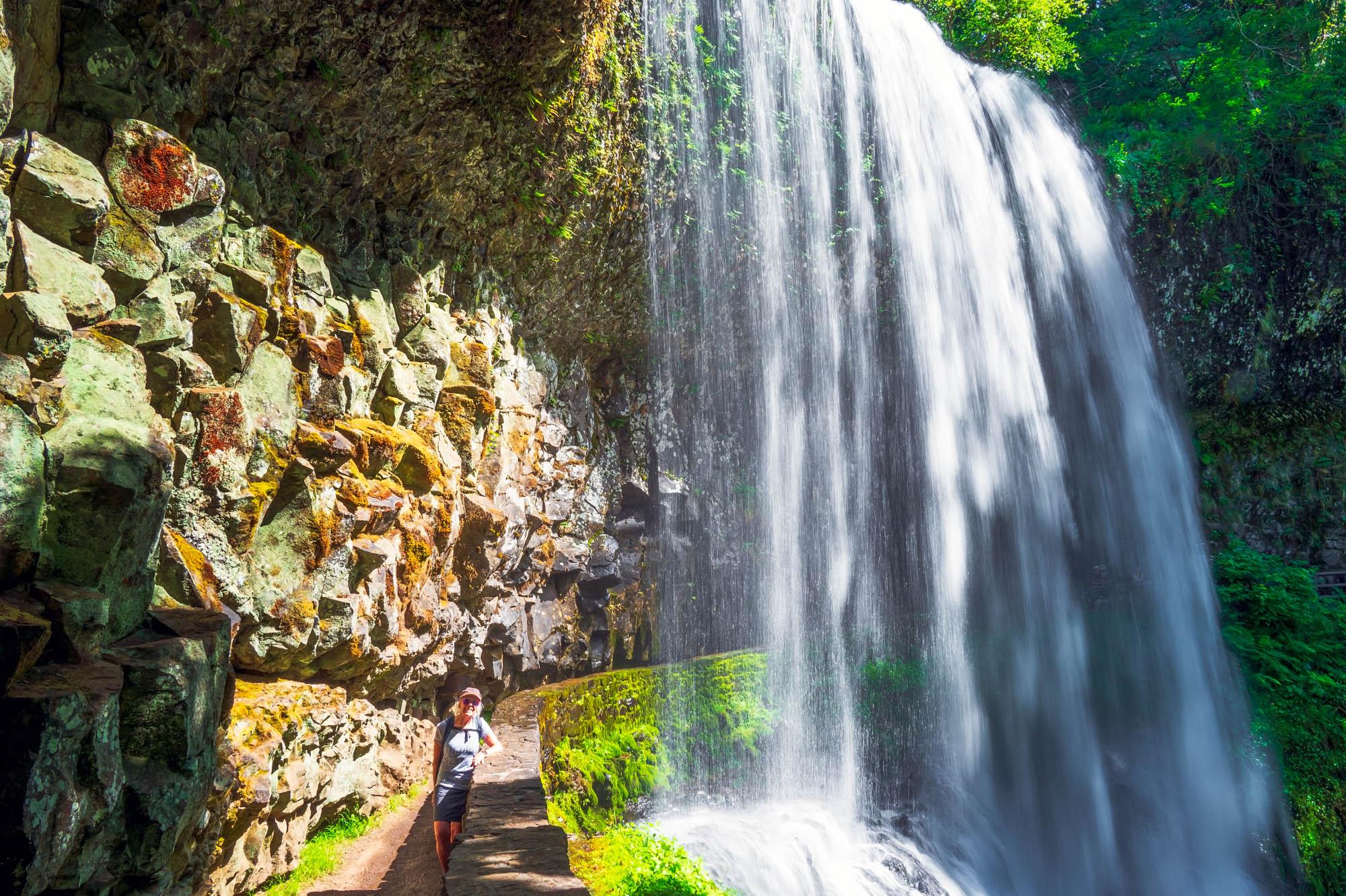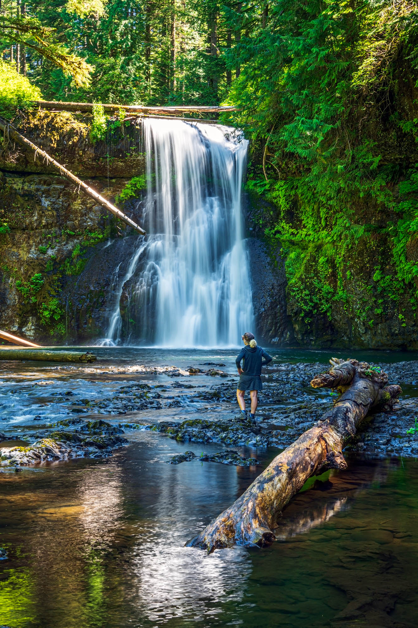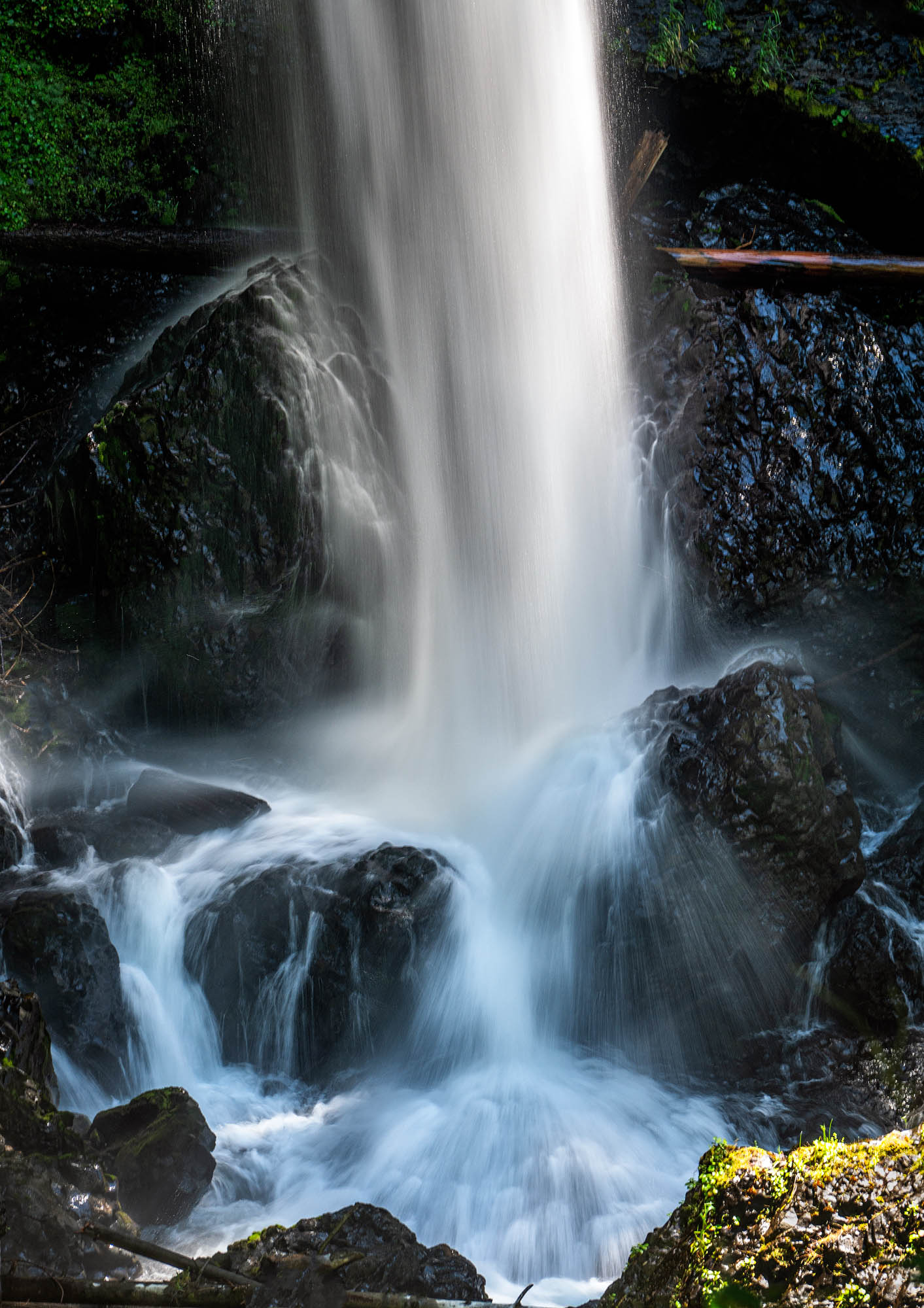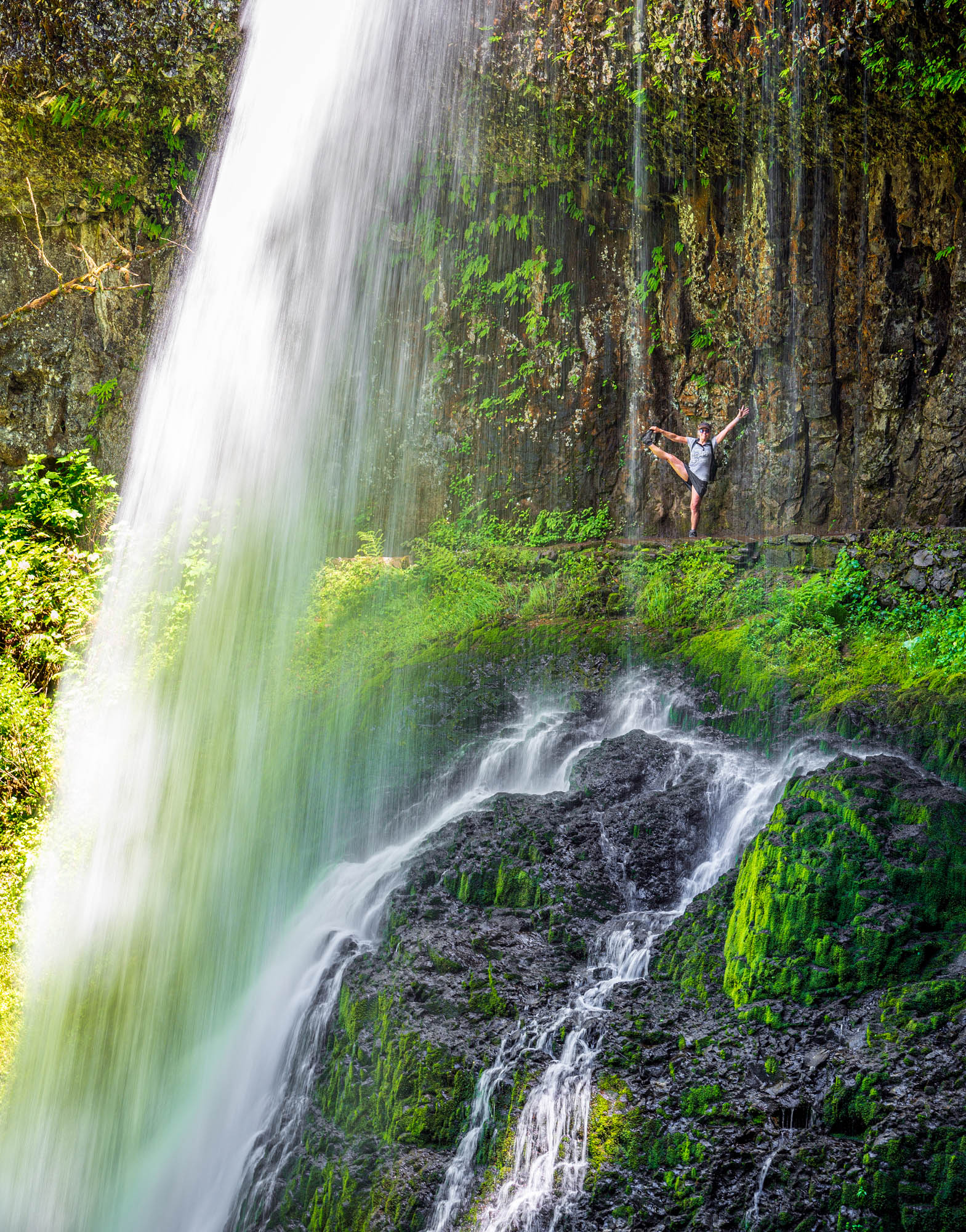 Back on the trail we continued past a gorgeous look back at 30-foot Lower North Falls.We left the trail and went down to the creek for a nice lunch break before seeing the final two of the ten falls. Then we came to the Lower South Falls, where the creek plunges off of a lava lip in a wide dramatic sheet of water. The trail loops behind the waterfall itself in a large cave-like grotto. After crossing behind the waterfall, we climbed several switchbacks of stairs and continued upstream. Finally, we came to the tenth and most popular waterfall in the park, South Falls, is the second highest waterfall in the park at 177-feet, and it has the highest single drop. The trail crosses behind the waterfall in yet another natural grotto, with a bench inside the grotto to rest and take in the magnificent sight of this waterfall. I can see why this is one of the most photographed waterfalls in Oregon. The trail climbs the side of the canyon with beautiful views looking back at South Falls, we saved the best for last. This hike was definitely the best waterfall hike we have ever done. Click on thumbnail to view images