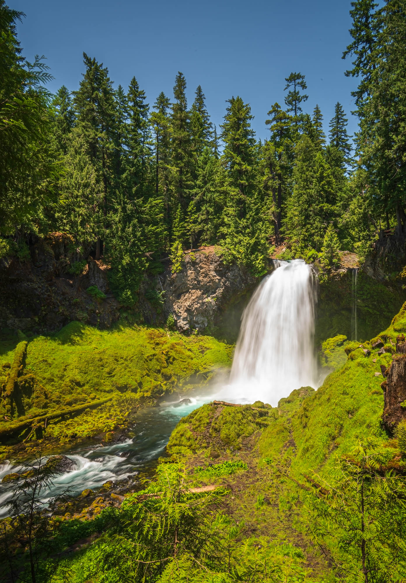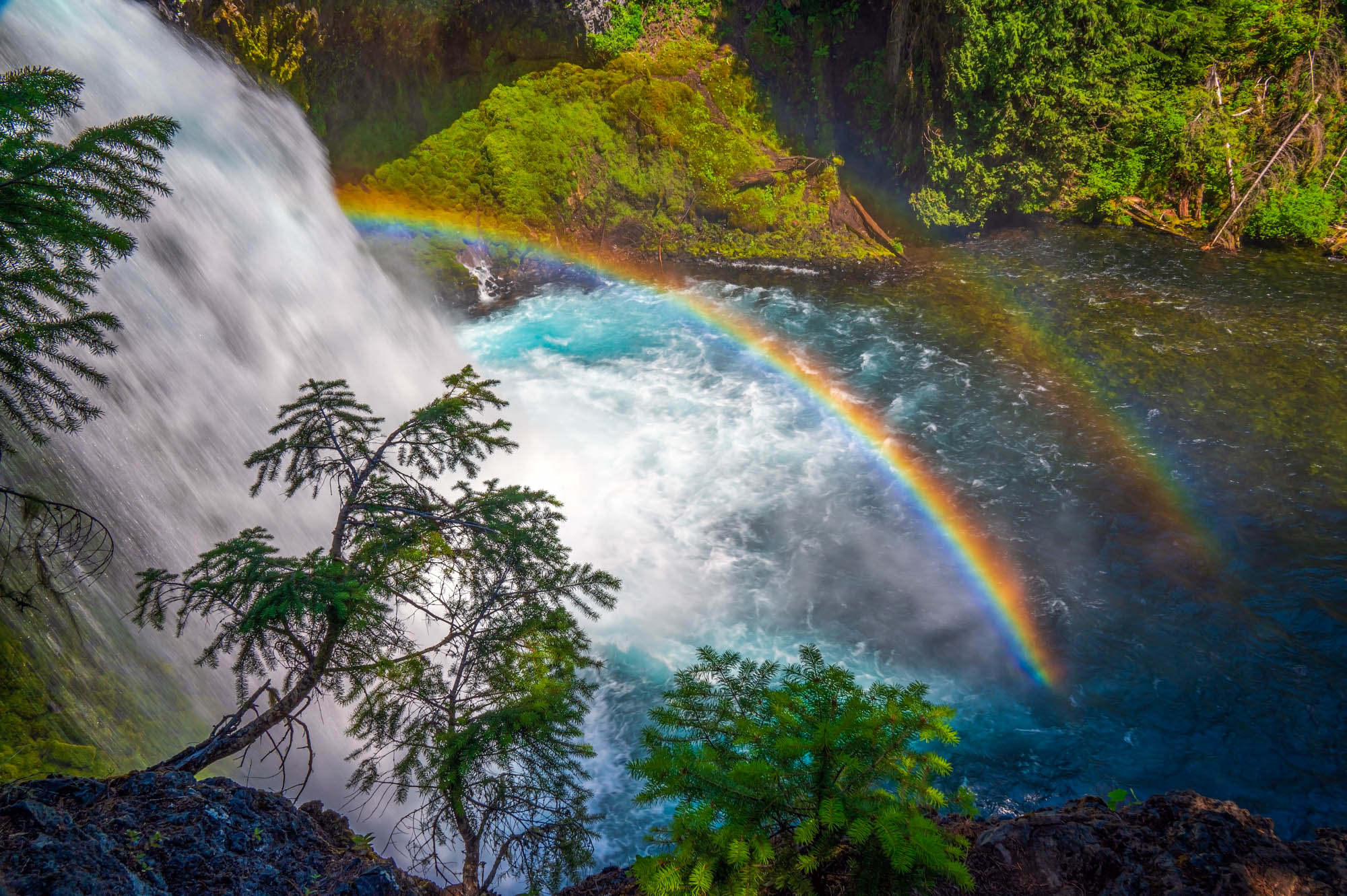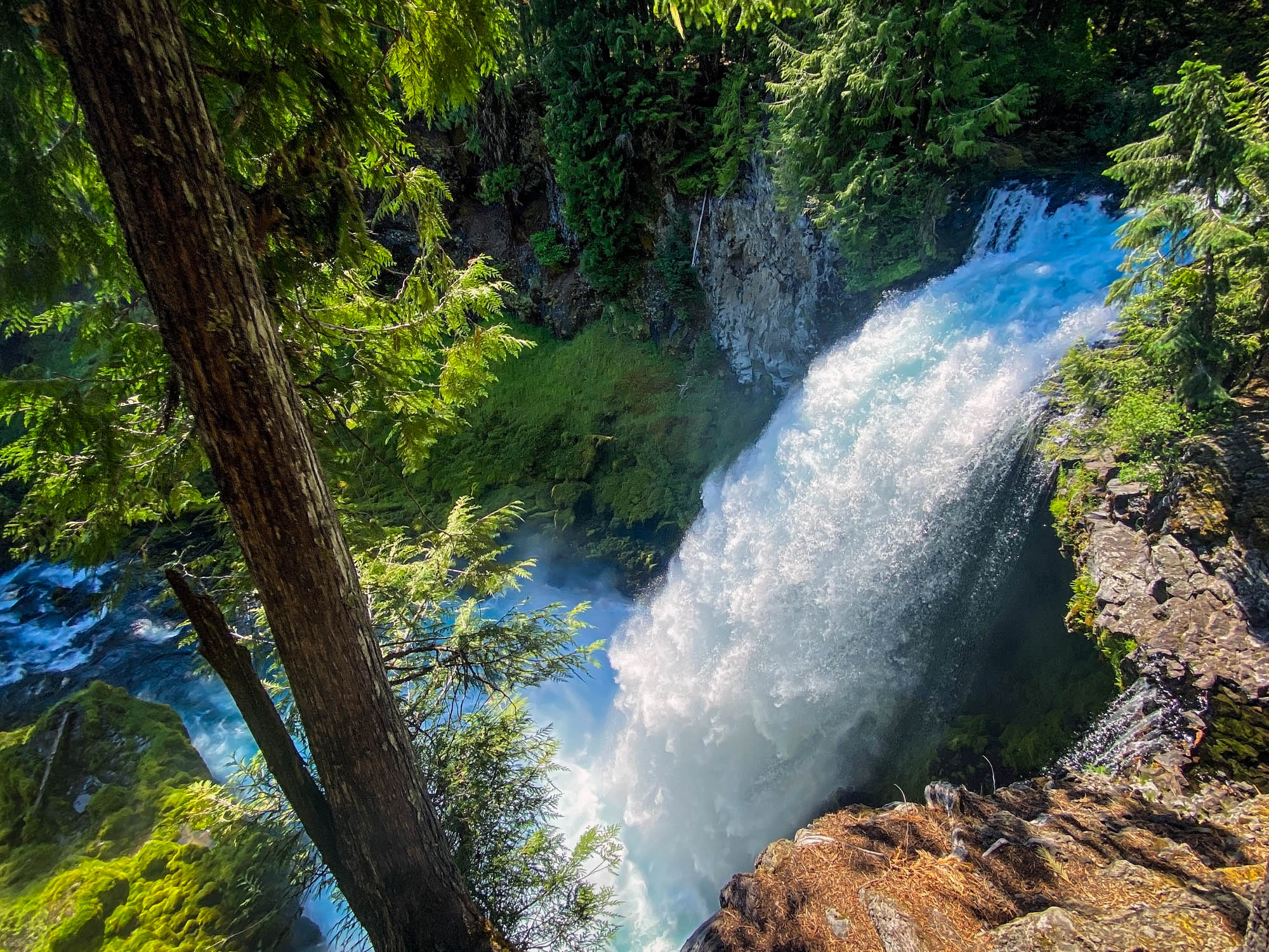 Sahalie and Koosah Falls are located along the McKenzie River in the Cascade Mountains. Today we visited these two waterfalls, first arriving at the Sahalie Falls viewing platform, close to the parking lot. Sahalie Falls is a mass of foaming white water plunging 100 feet over a natural lava dam. We continued on the 2.6 mile loop trail that connects Koosah and Sahalie Falls. The hike borders the McKenzie River through towering forest. Following the river we passed several small waterfalls flowing down beautiful crystal, clear, turquoise water. We reached Koosah Falls dropping 70 feet into a deep pool, and we were fortunate to see a double rainbow rising out of the pool. We continued along the trail and stopped by the river at a beautiful small pool and waterfall, great place for a pose, Bird of Paradise, in paradise. Then back to the top of Sahalie Falls and a few more photos before heading back to the Jeep. Click on thumbnail to view images