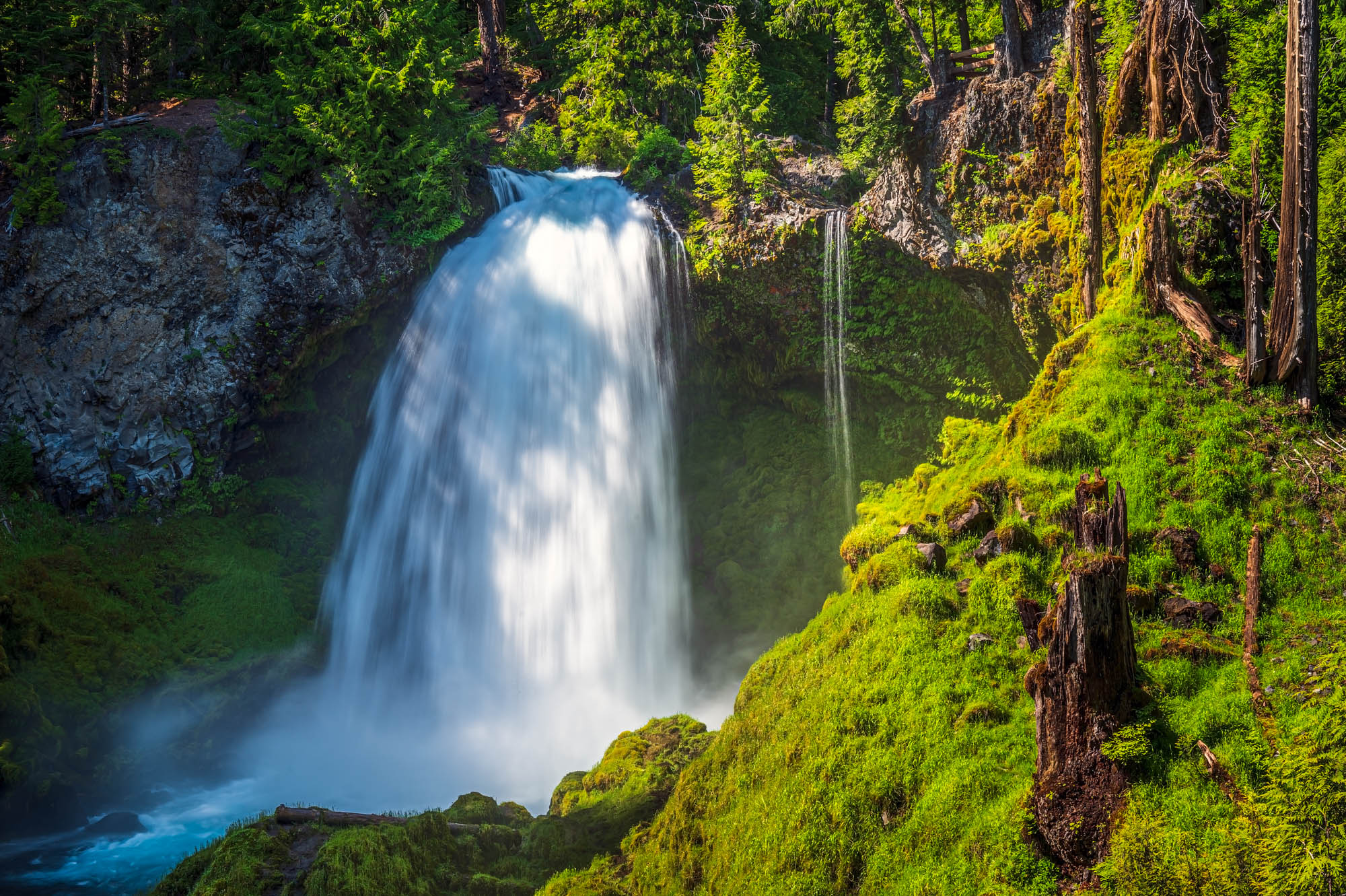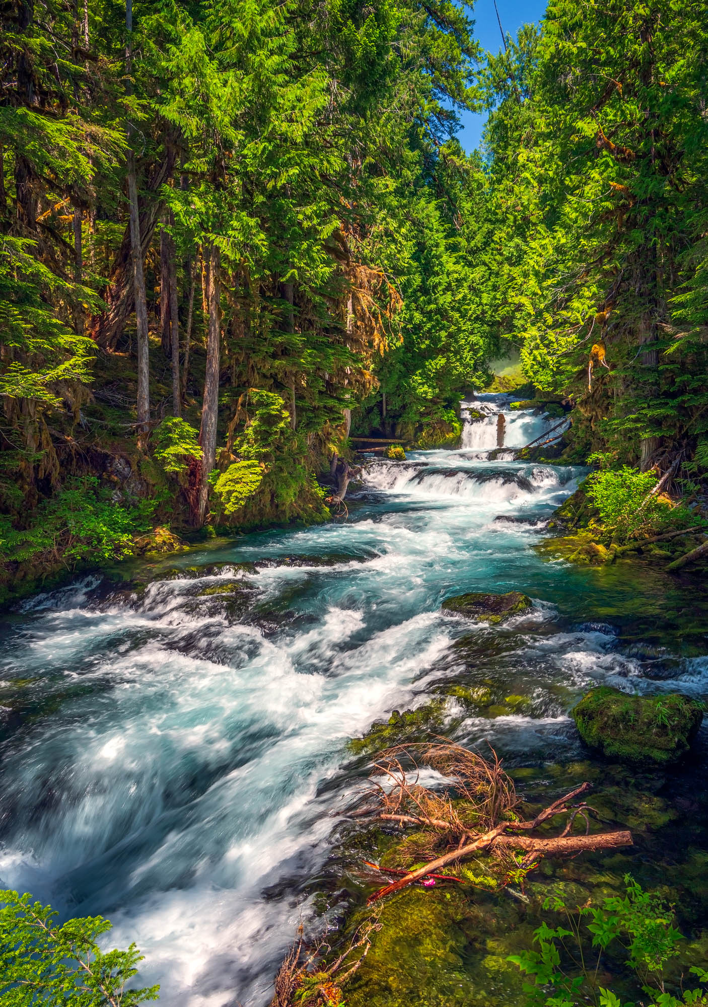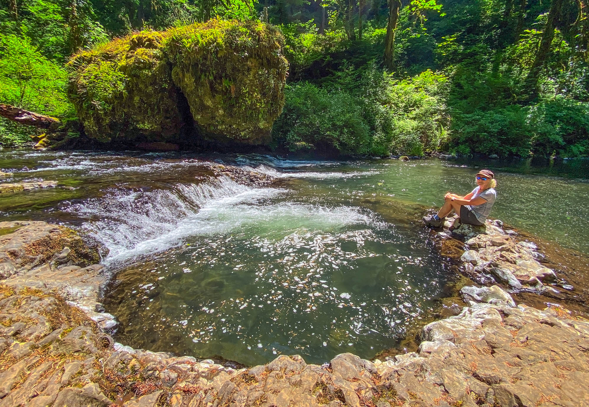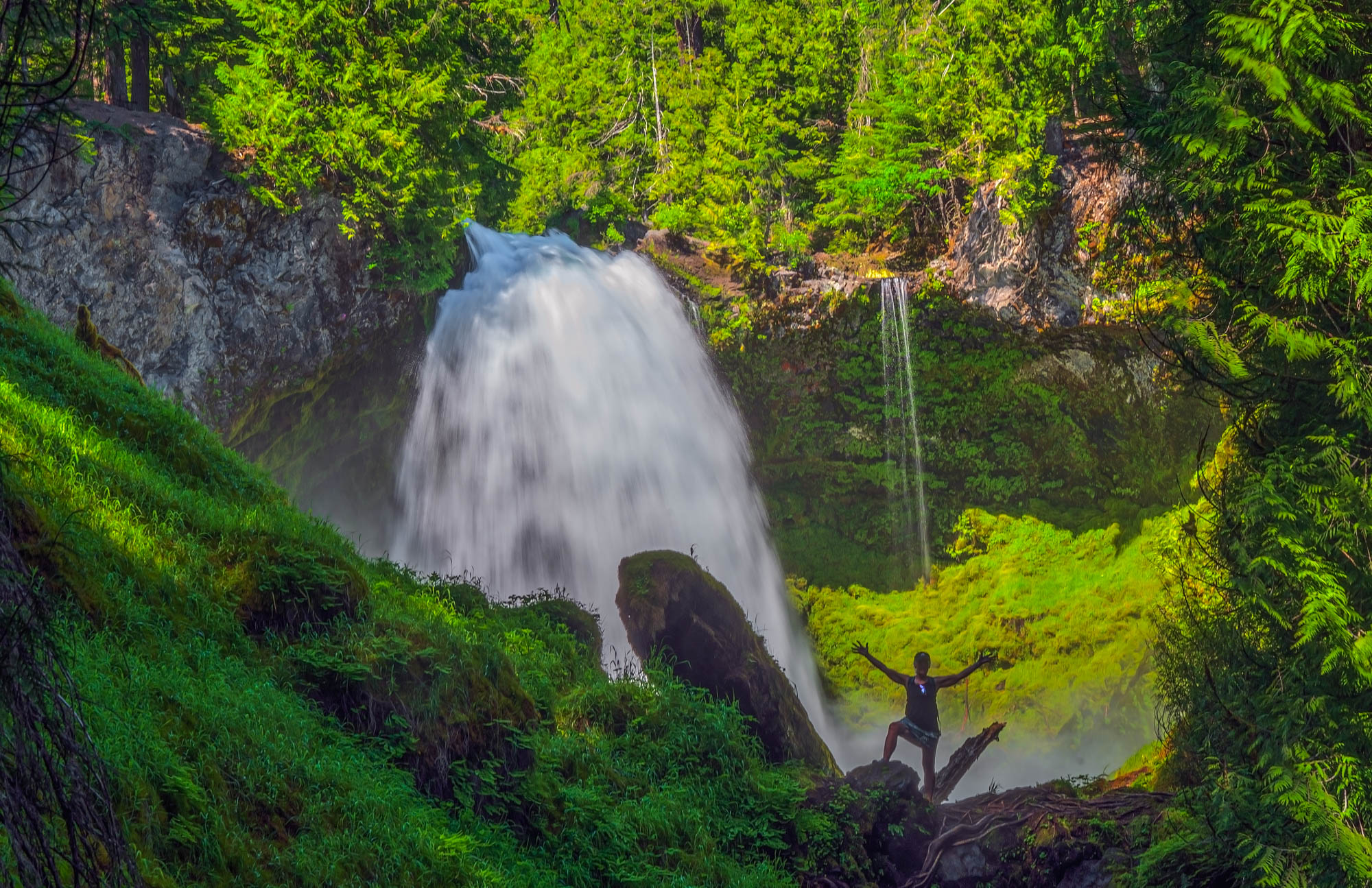 Sahalie and Koosah Falls are located along the McKenzie River in the Cascade Mountains. Today we visited these two waterfalls, first arriving at the Sahalie Falls viewing platform, close to the parking lot. Sahalie Falls is a mass of foaming white water plunging 100 feet over a natural lava dam. We continued on the 2.6 mile loop trail that connects Koosah and Sahalie Falls. The hike borders the McKenzie River through towering forest. Following the river we passed several small waterfalls flowing down beautiful crystal, clear, turquoise water. We reached Koosah Falls dropping 70 feet into a deep pool, and we were fortunate to see a double rainbow rising out of the pool. We continued along the trail and stopped by the river at a beautiful small pool and waterfall, great place for a pose, Bird of Paradise, in paradise. Then back to the top of Sahalie Falls and a few more photos before heading back to the Jeep. Click on thumbnail to view images