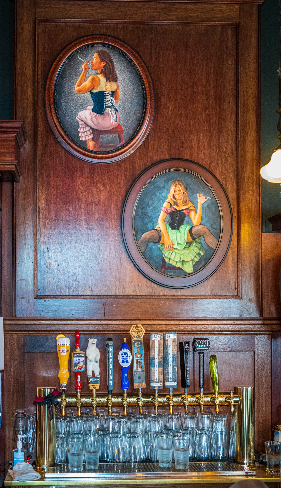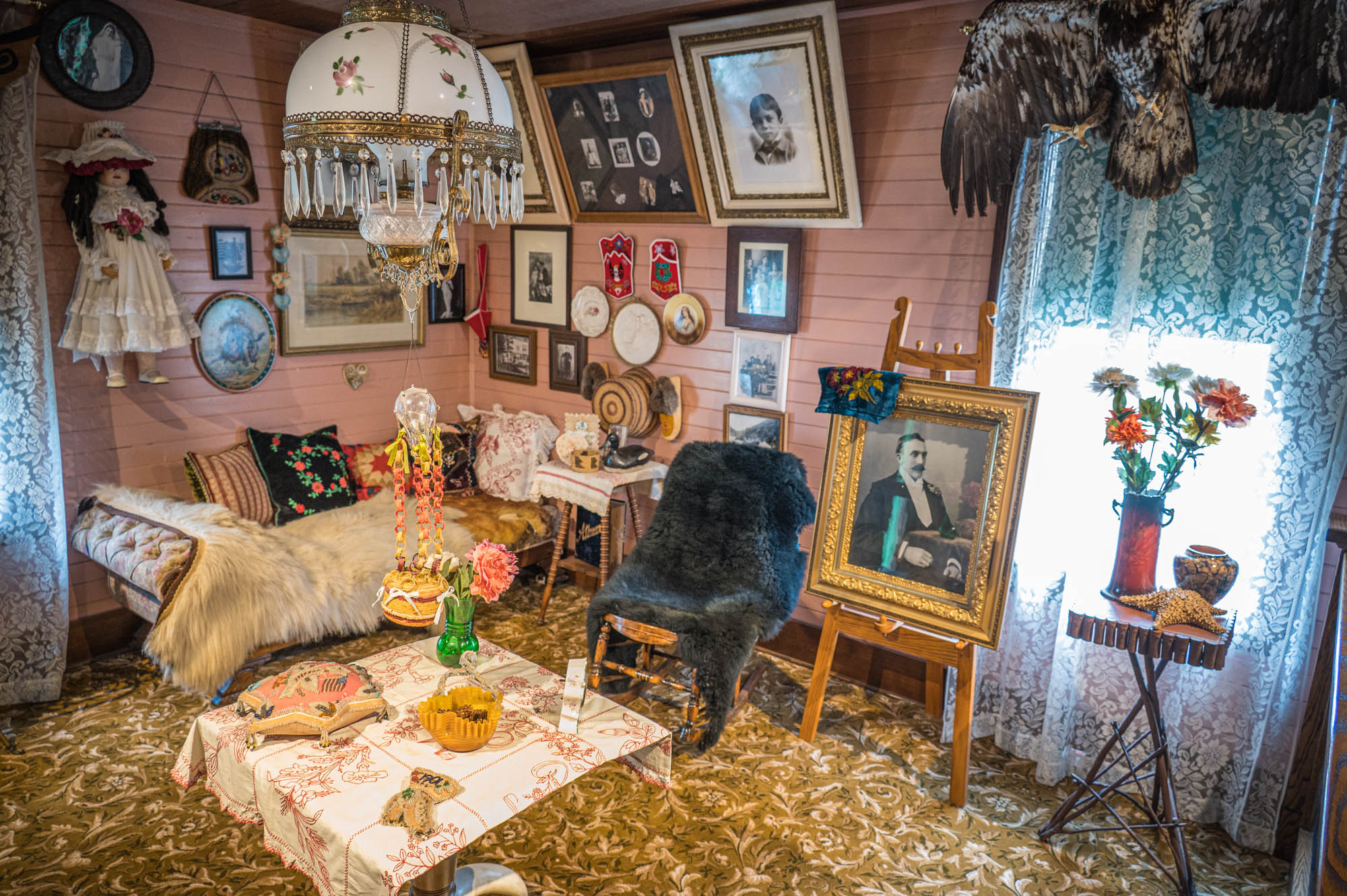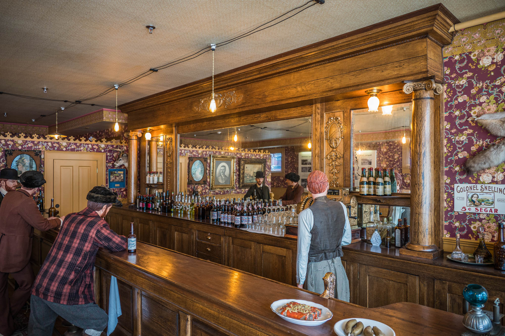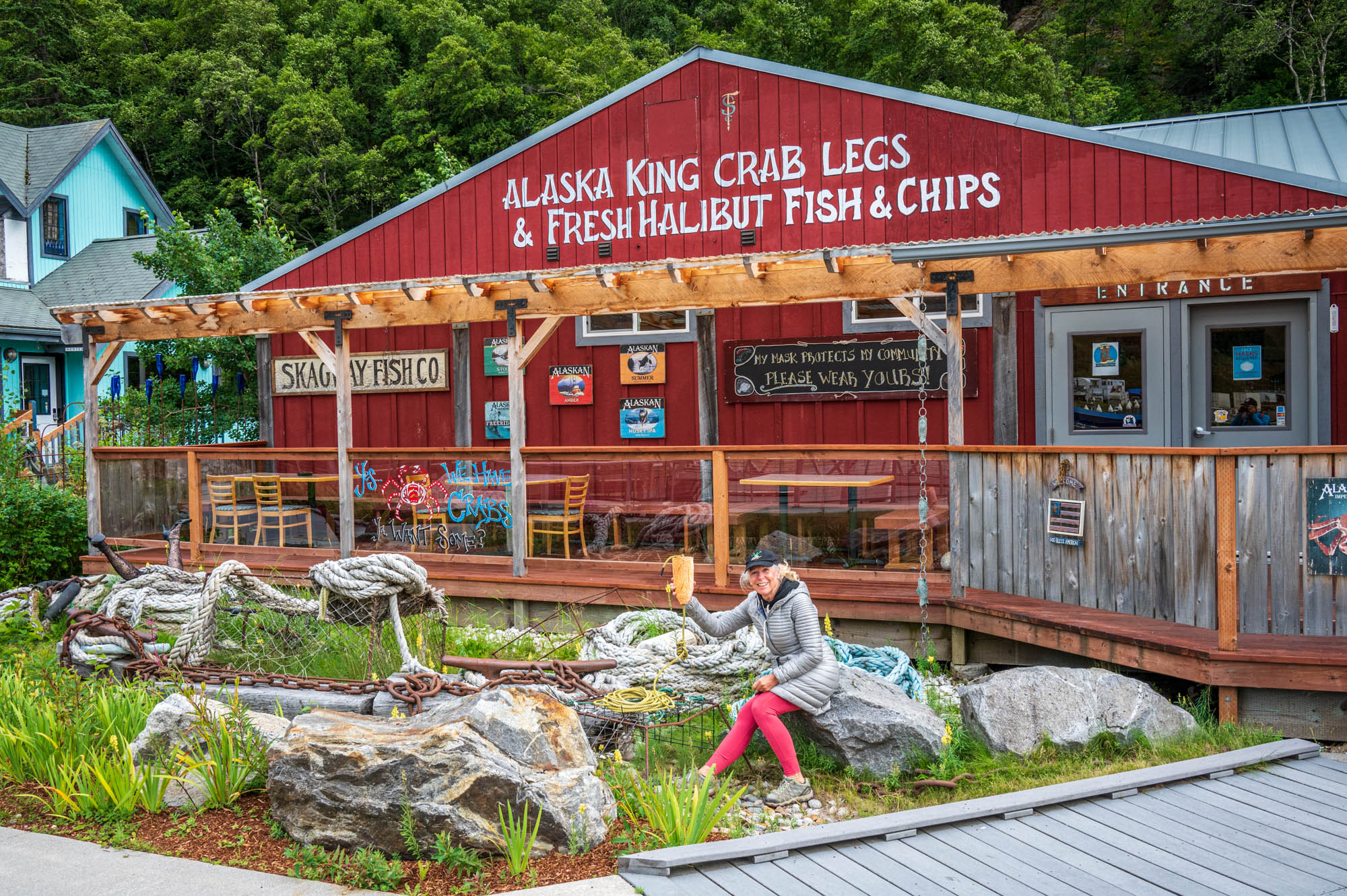 Skagway was originally spelled S-K-A-G-U-A, a Tlinglit word for “windy place”. The first people in this area were Tlinglits from the Chilkoot village in the Haines area. The windy Skagway valley was good for hunting mountain goats and bear, but no one settled here until 1887. After arriving in Skagway we checked into the White House Inn, built in 1902 by gambler Lee Guthrie. It was the finest home in Skagway, and we had a beautiful, large room on the first floor with picture windows. Our first stop in Skagway was to the Red Onion Saloon for pizza and beer. It was built in 1897 during the height of the Gold Rush, the Red Onion Saloon operated as one of the finest Bordellos in town, and you can visit the brothel museum for a link to the past. Racey, old-timey portraits of alluring women still adorn the walls of the Red Onion Saloon and the ghost of Lydia, a former Madame, still haunts the place. Then we explored Skagway and saw beautiful bronze statues. The Skagway Centennial Statue honors the Tlingit packers made famous during the Klondike Gold Rush of 1897-1898, located in a small park at the end of Broadway Avenue. This sculpture represents a typical scene at the start of Chilkoot Trail or White Pass trails in August 1897. The Tlinglit packer wears traditional clothing, made of moosehide and bear fur, and carries a pack from the skin of a mountain goat. He leads a young stampeder, just off a ship, who is determined to reach the gold fields. His pack is a wood-frame box, and outside are strapped his hunting knife, shovel and gold pan. Another bronze sculpture we saw was of a prospector and his dog outside the Alaska Geographic Museum. In the Centennial Park we saw the historic Rotary Snowplow, this is the retired snow plow used by the White Pass & Yukon Railroad: Rotary Snow Plow Number 11. The plow spins its huge blades and throws snow to the side. It was built in 1898 and cleared the tracks until 1964. It was restored in 1995 and displayed for all to see. Click on thumbnail to view images