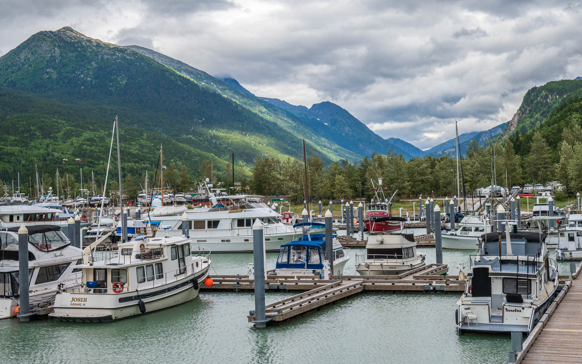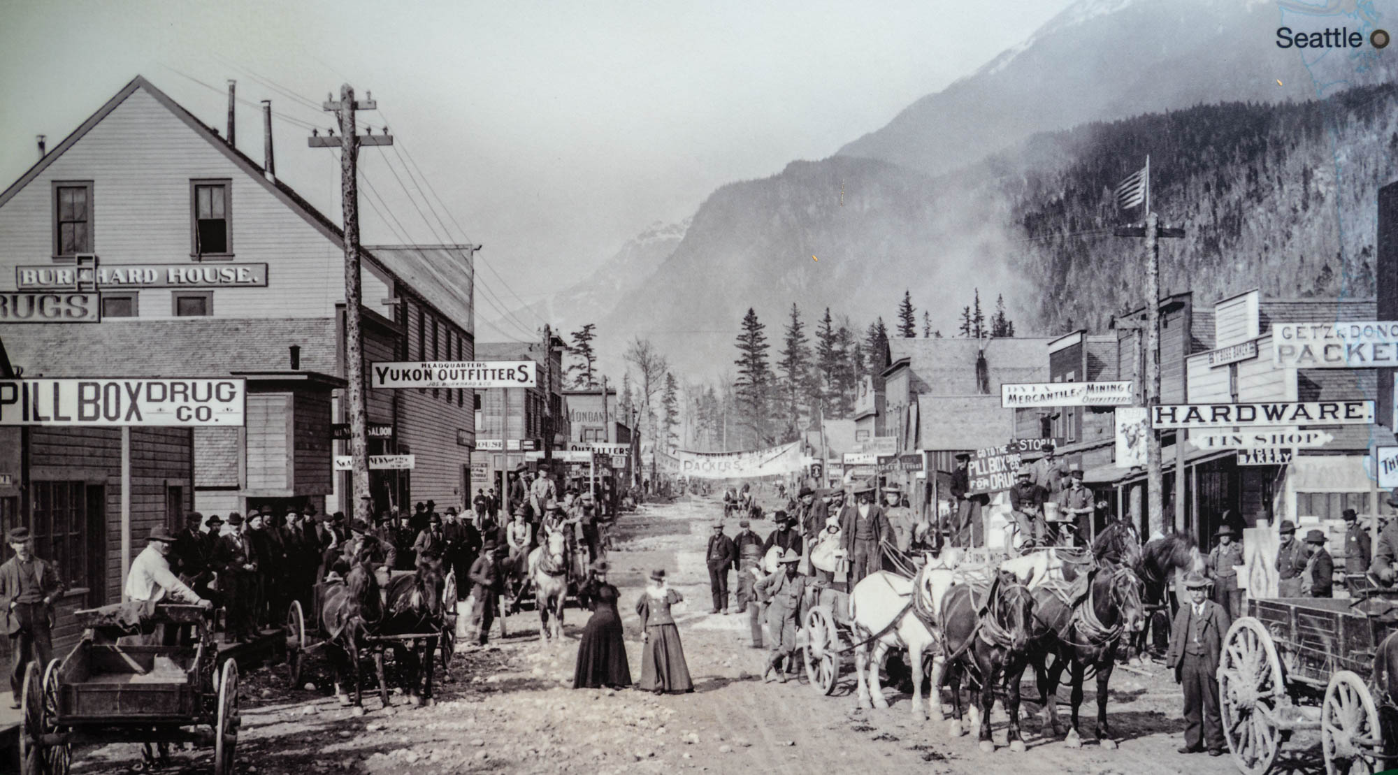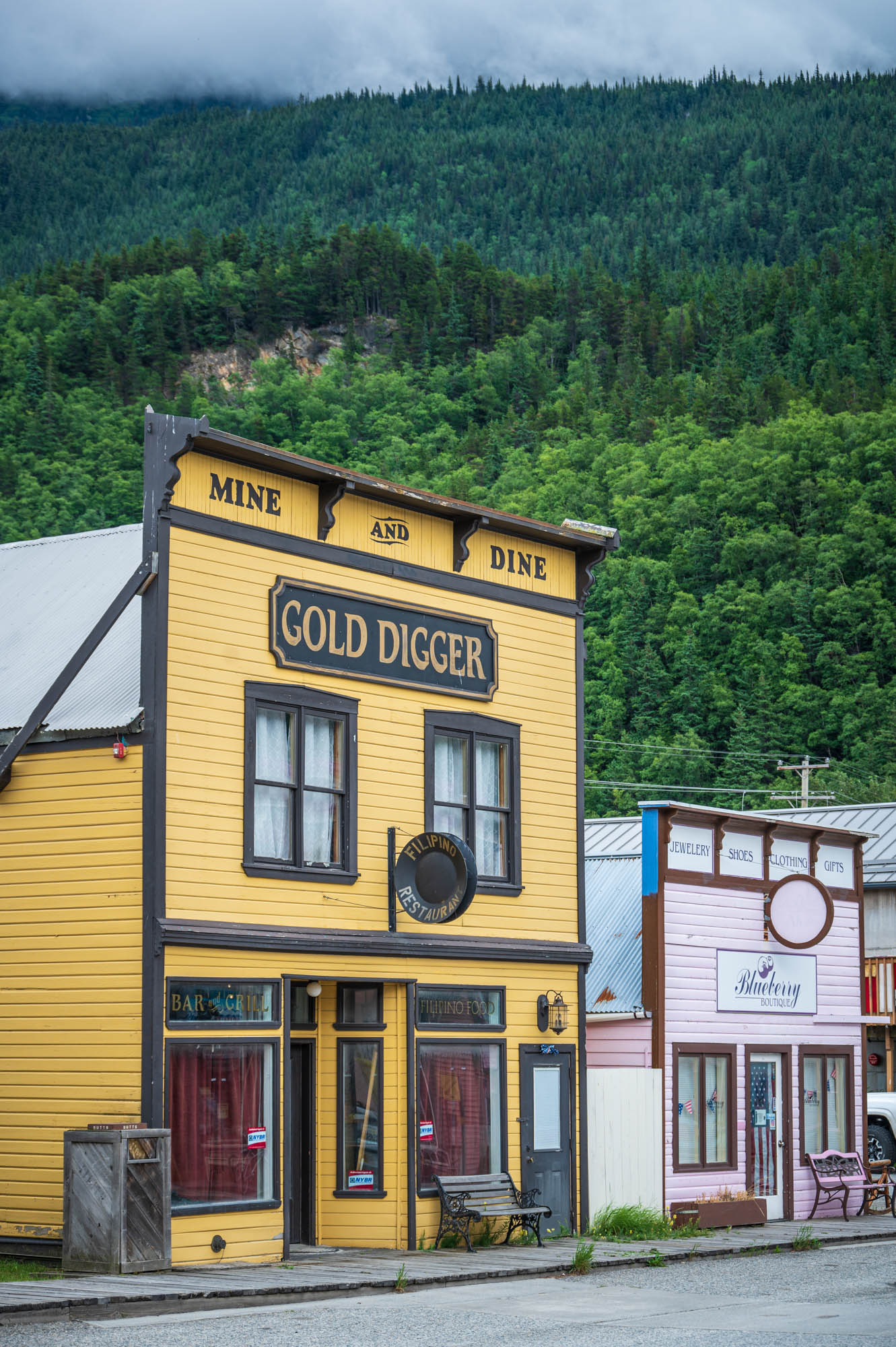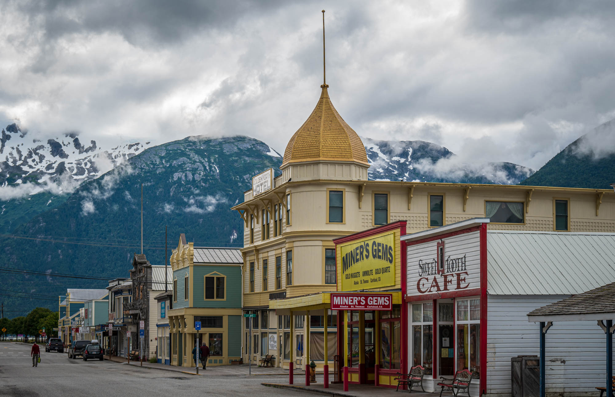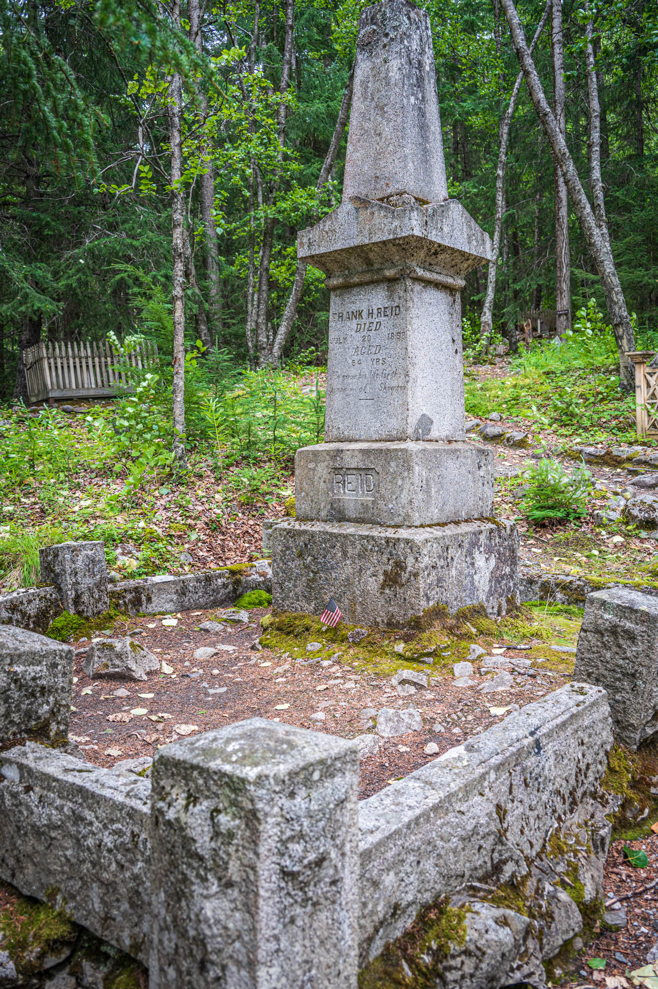 Skagway has an interesting history because of the Klondike Gold Rush from 1897-1898, and we decided to explore more of its history. We drove out to the site where Dyea on the Taiya River Inlet, was once a thriving town with over 5,000 people, but now a ghost town. During the Gold Rush days the Stampeders began their trek from here on the Chilkoot Trail to the gold fields 500 miles away. We visited the Museum in Skagway depicting the town during the Gold Rush days and took several pictures from that era. The founder of Skagway was Captain William Moore who came to the Skagway valley with a Canadian survey team in the spring of 1887. He was impressed by what he saw that he returned in October that year with his son, Ben, to stake a 160-acre homestead in the Skagway valley, and laid a foundation for a cabin and began building a wharf. He believed that gold in large quantities would be found, and had a vision that Skagway, with its deep-water harbor and trail through the White Pass, would become the gateway to those gold fields, the “Gateway to the Klondike Gold Rush”. Our final visit was to explore the Gold Rush Cemetery where the old tombstones are still standing. Click on thumbnail to view images