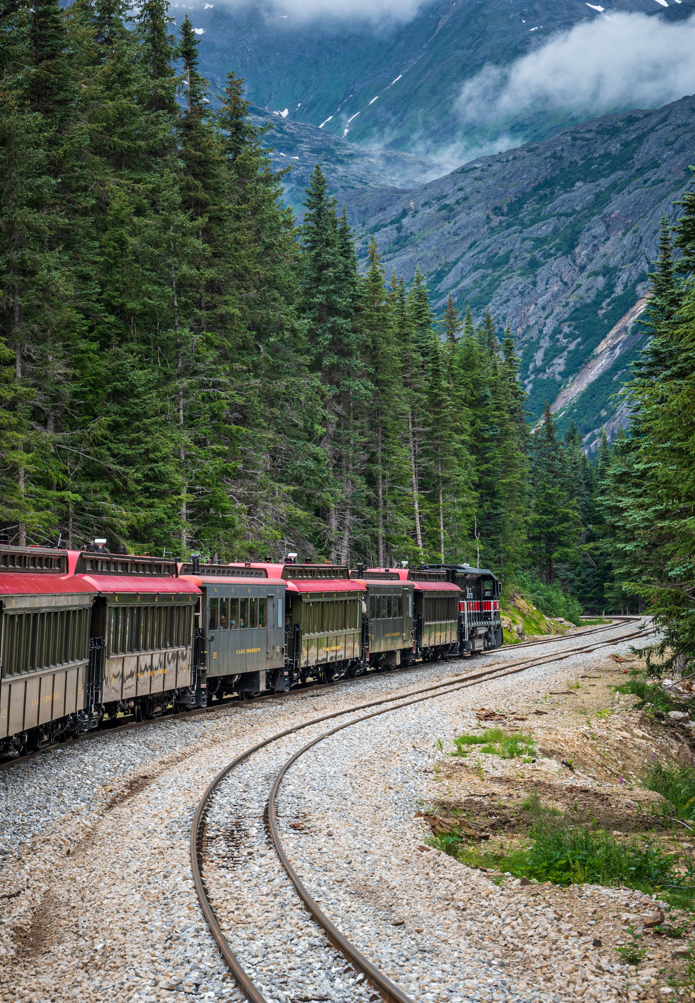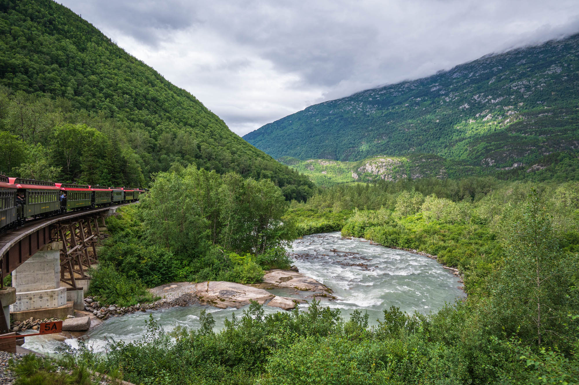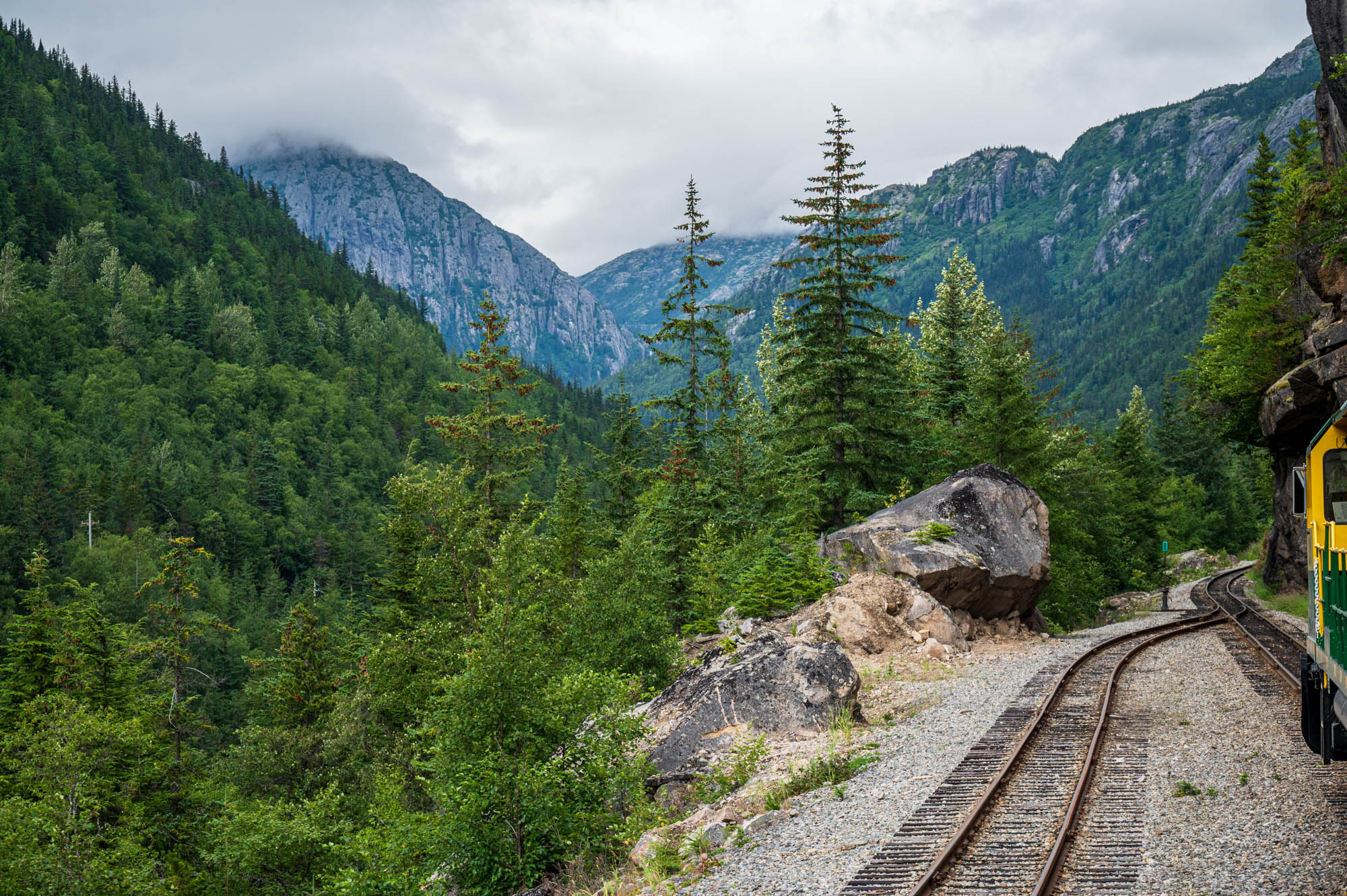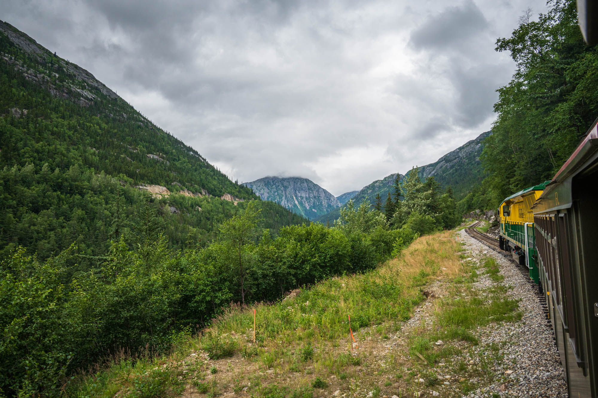 The White Pass & Yukon Railroad was built in 1898 during the Gold Rush from 1897-1898 days. The tour on this historic and breathtaking narrow gauge railroad, is a 65-mile journey into the Yukon. We began this adventure on the docks of Skagway and climbed the South Klondike Highway to the top of the White Pass 3,292 feet. Unfortunately for us the railroad track was closed for repairs, so we only got about halfway up to the White Pass. We saw beautiful views of the Skagway valley from the train as we began the climb. The mountain vistas were impressive and the scenery along the railroad was worth the short ride. We will have to come back again to complete the adventure. Click on thumbnail to view images