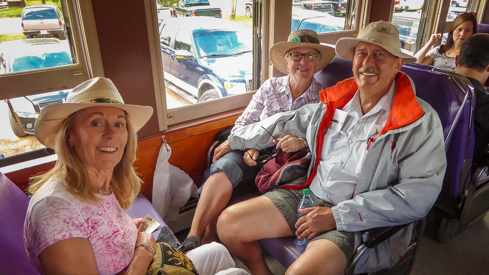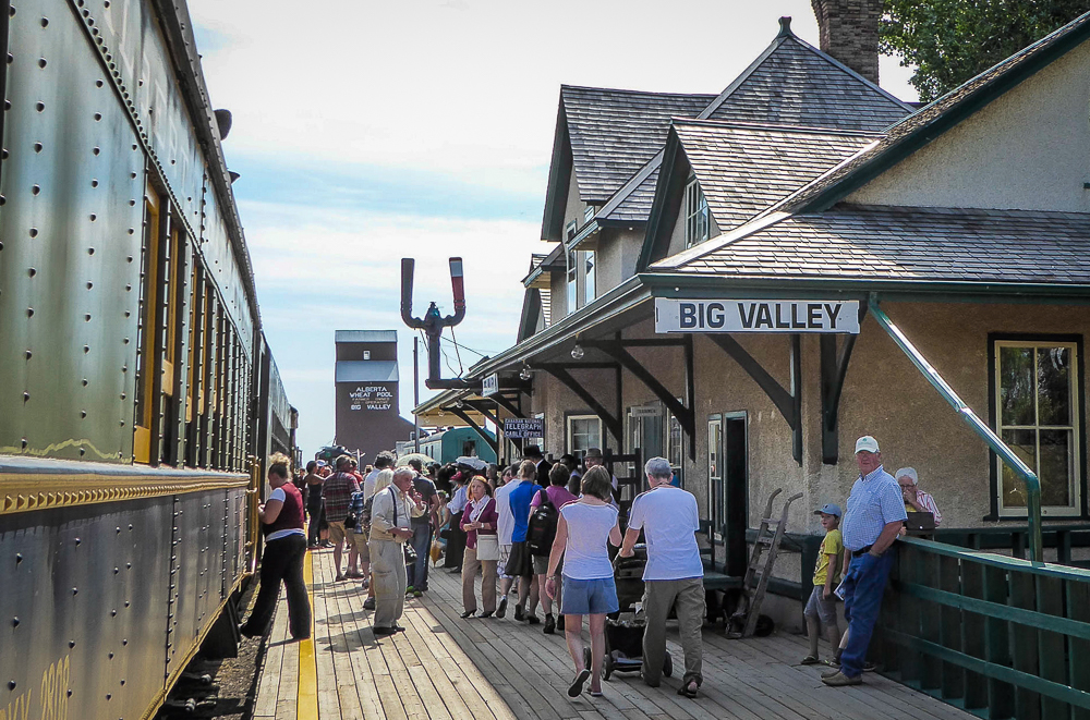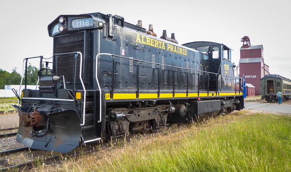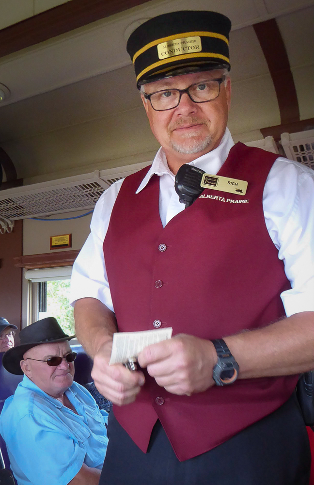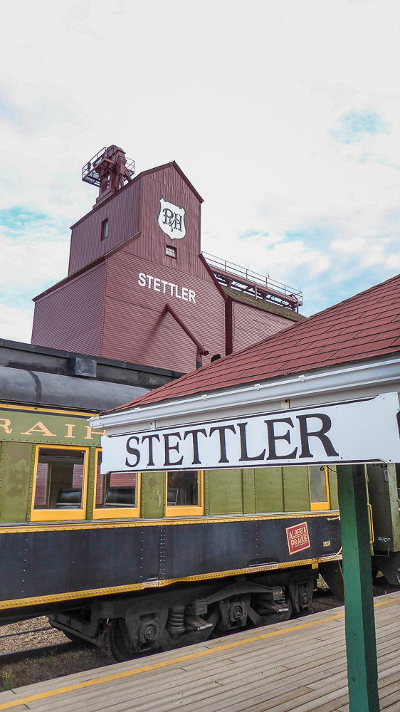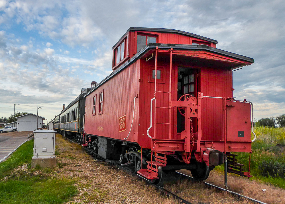 This 9-hole executive course has lush fairways and grass greens, meandering among the trees and along the Rosebud River, it was definitely a fun course to play. In the evening we enjoyed a spectacular show of the Wizard of Oz at the local theater. The next day we drove to Stettler, Alberta, Harry’s hometown. We had flown over Stettler in Harry’s plane to see his farm from the air. We were excited to ride on the Alberta Prairie Railway Excursions, a heritage railway originating in Stettler and runs between Stettler and Big Valley. Click on thumbnail to view images