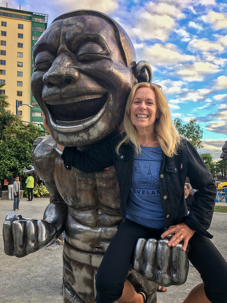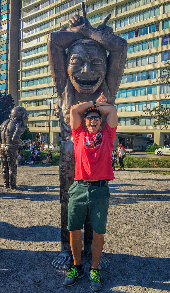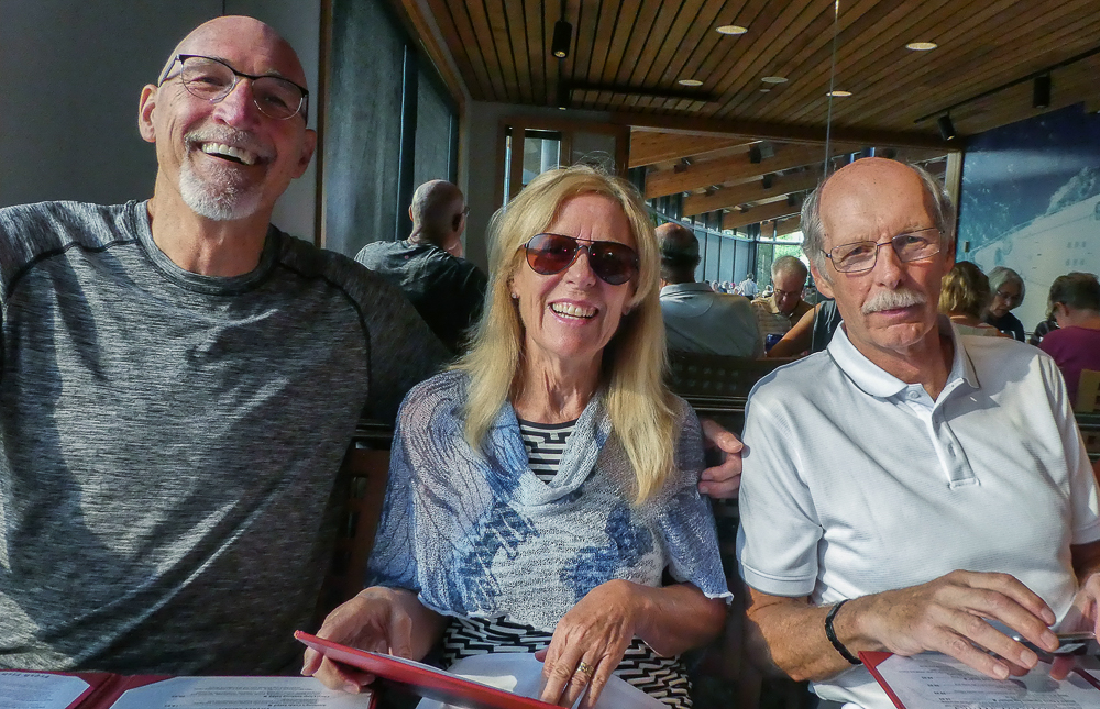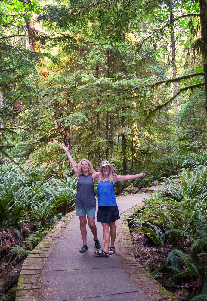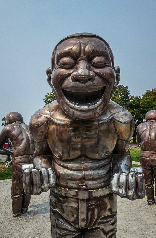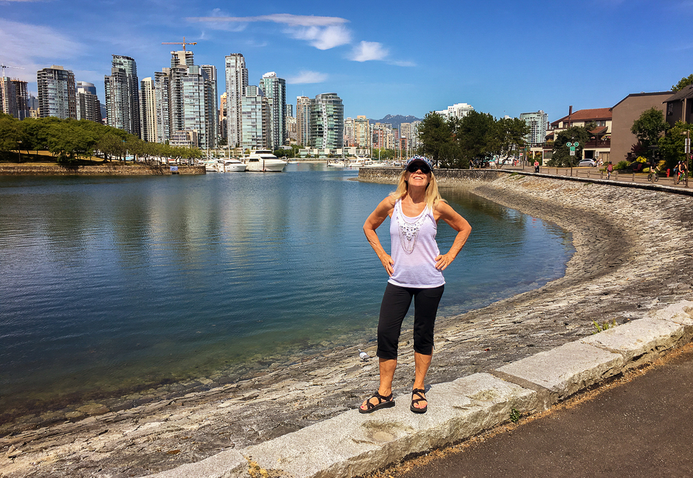 Our friends from Cleveland, Ohio, Karen Moyer and Bruce Kahn, came to visit us for a few days on their way to Alaska. We picked them up at the airport and came back to the RV for a fabulous vegan lunch. After lunch we drove into Vancouver and checked in at the Sylvia Hotel, a designated heritage building, built in 1912. Then we walked around English Bay stopping at Morton Park to view the 14 enormous bronze statues, in all different poses, of a shirtless guy laughing hysterically, called A-maze-ing Laughter. We had dinner at the Cactus Club, sitting outside enjoying the sunset across English Bay from our table. The next morning we started our bike ride from the Sylvia Hotel and stopped at Granville Island for breakfast before heading to Stanley Park. What a fabulous day for a ride around Stanley Park, great views of the city and visited many of the sites in the Park. Later we took the gondola up Grouse Mountain to explore the top and have dinner at The Observatory Restaurant. We had two wonderful fun-filled days with Karen and Bruce, couldn’t have had a better time, full of laughs, eating, drinking and sightseeing, and lots of sunshine. Thanks for taking the time to visit us. Click on thumbnail to view images