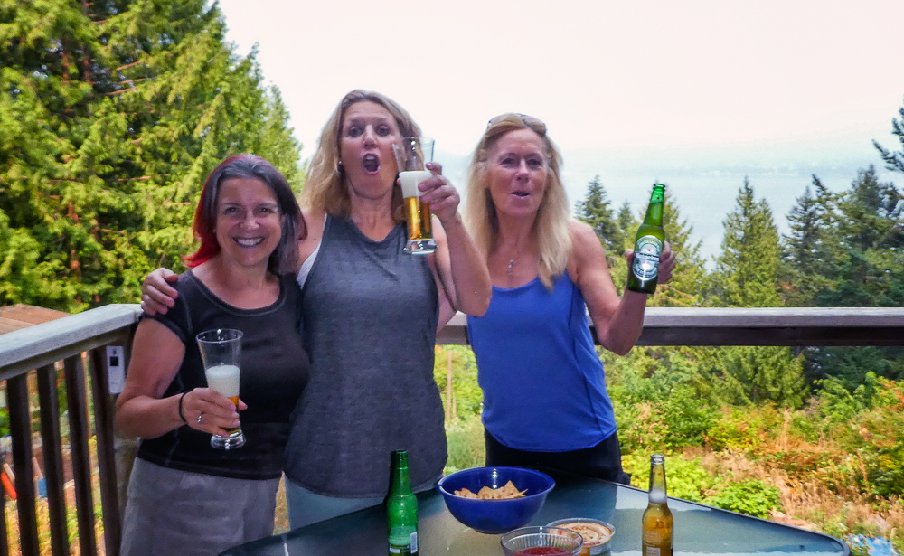 It was my turn this summer to finally connect with some of my old friends from Vancouver. Bob and I had a wonderful dinner with Diane and Steve Owen in their beautiful apartment in downtown Vancouver. While we visited with them, Diane gave me information to get a hold of my friend Sandy Cunningham. Sandy and I lived together in London for a year in 1970 and when Bob and I were married she was my bridesmaid at our wedding in 1971. I was so excited to connect with her after not seeing her for over 30 years, and needless to say she has not changed at all. We had a fabulous dinner at her place in Vancouver and later visited her beautiful home on Bowen Island. What a great time we had touring the island, visiting her friends and having a delicious dinner at Sandy’s cozy home on the hill. Click on thumbnail to view images