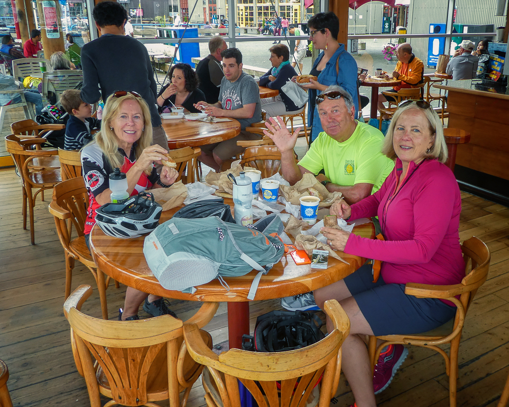 While staying in Vancouver we did a lot of bike rides, organized by our fearless leader Ralph White. In July we signed up for the 100 km ride in the Tour de Whatcom, a family-friendly bike ride in Bellingham, Whatcom County, WA. It is hosted by the Boundary Bay Brewery, where we started and finished the ride, perfect for enjoying beer at the end of a long ride. We did several training rides before the Tour, riding to Langley, Lynden, WA, Fort Langley, and Boundary Bay. Well organized, challenging rides, not too many hills, with a wonderful group of friends riding together, enjoying the scenery, and always stopping for lunch before returning home. In August a large group of bikers rode the Snohomish County Centennial Trail, WA, 60 mile R/T, on a paved trail, that follows the original route of the Seattle, Lake Shore & Eastern Railway. After the ride some of us went for a swim in Lake Samish to cool off before going for dinner at Anthony’s Hearthfire Grill in Bellingham. Click on thumbnail to view images