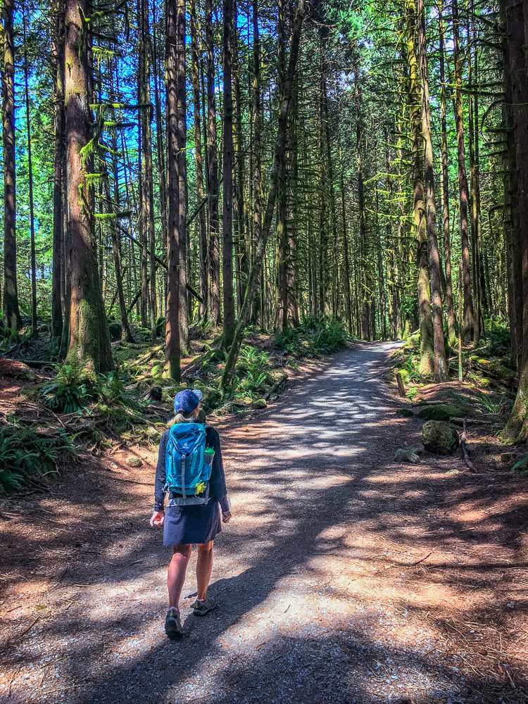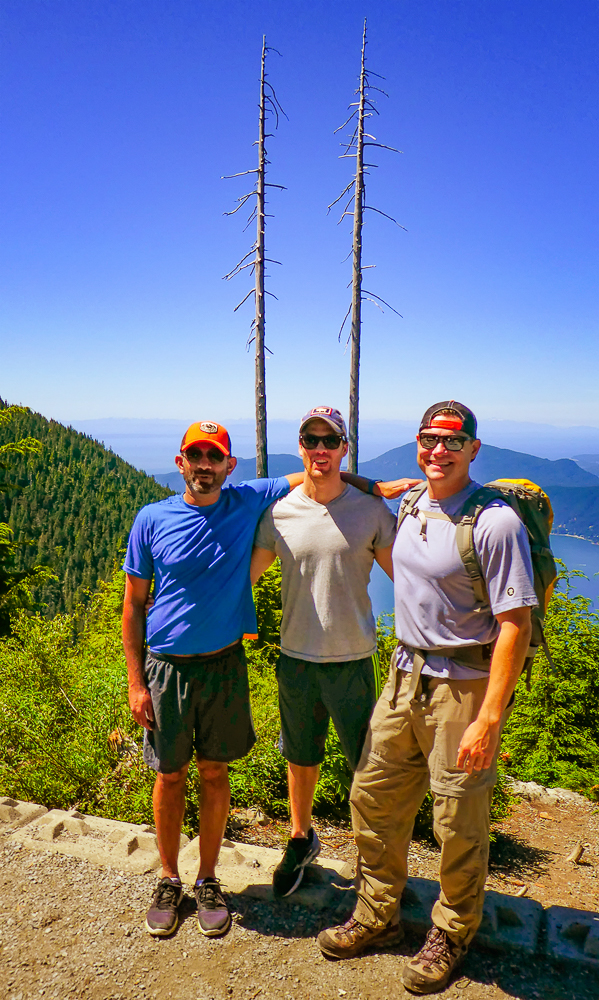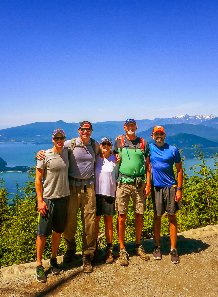 After three days staying with us in the RV, Eric was happy to move in with his friends from San Francisco, Doug and Chris. The 5 of us did another great hike closer to Vancouver at Cypress Bowl Ski Resort on the North Shore. The St Mark’s Summit hike is part of the Howe Sound Crest Trail that spans over 30 km from Cypress to a point along the Sea to Sky Highway. This hike is 11 km R/T on a difficult trail, and very steep in places but well worth the effort once we reached the summit. From the trail we could see the Lions, and when we got to the summit, at the scenic viewpoint we had views of Howe Sound, the Tantalus Range, and even the Gulf Islands and Vancouver Island off in the distance. After resting and soaking in the gorgeous views over delicious lunch, we made our way back to the trail and retraced our steps heading back downhill through the switchbacks, stepping over deep roots and eventually to the parking lot at Cypress Mountain. We were rewarded with fantastic views of Stanley Park and downtown Vancouver on our way down the mountain. What an incredible day in beautiful BC! Click on thumbnail to view images
