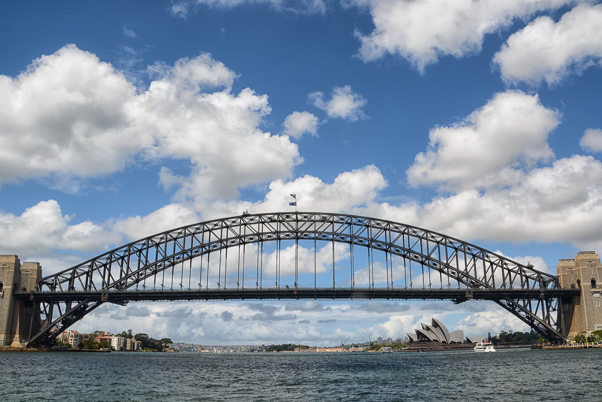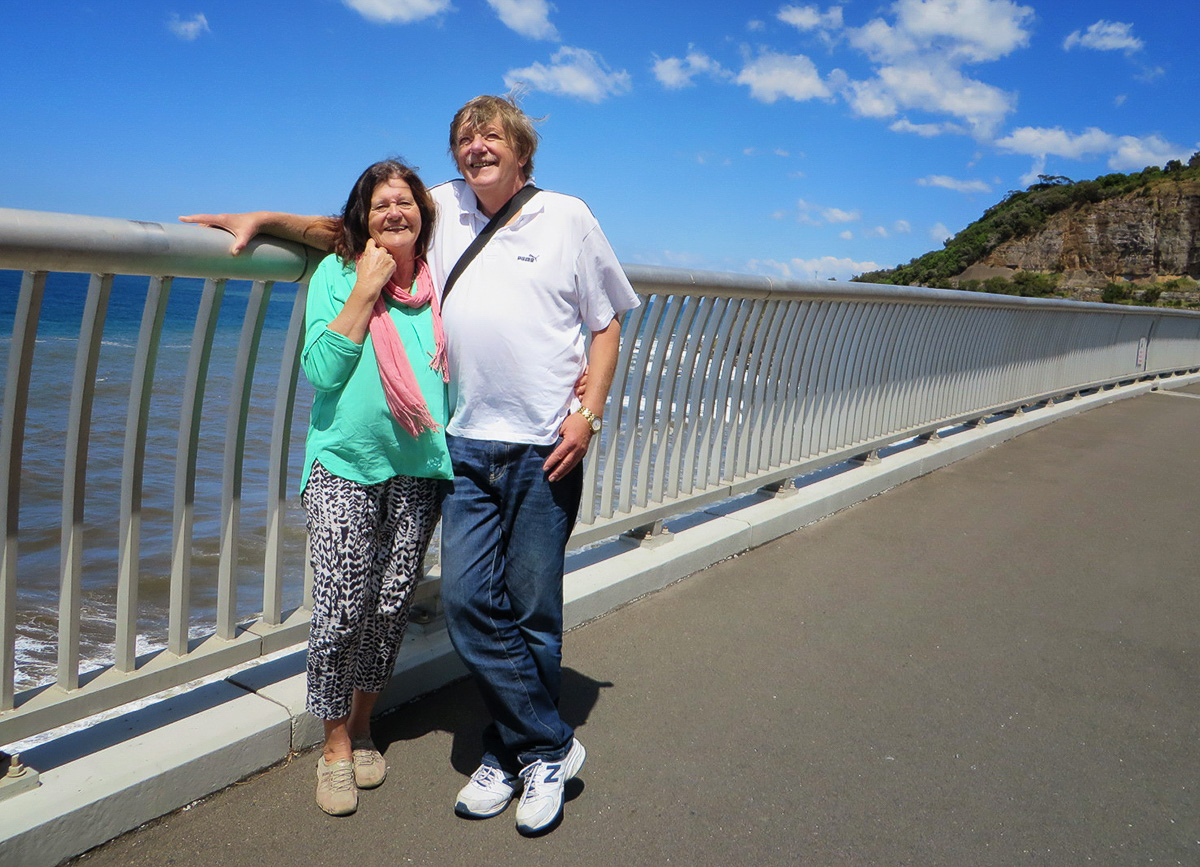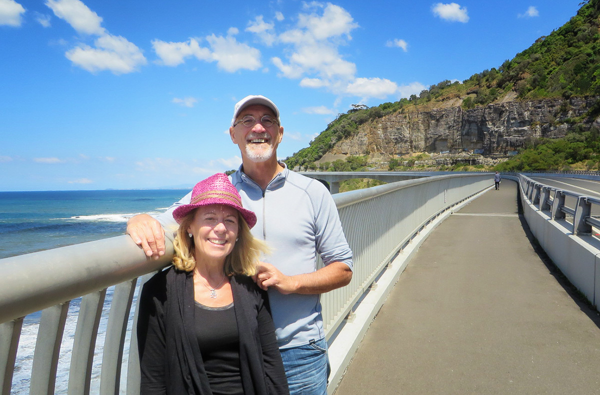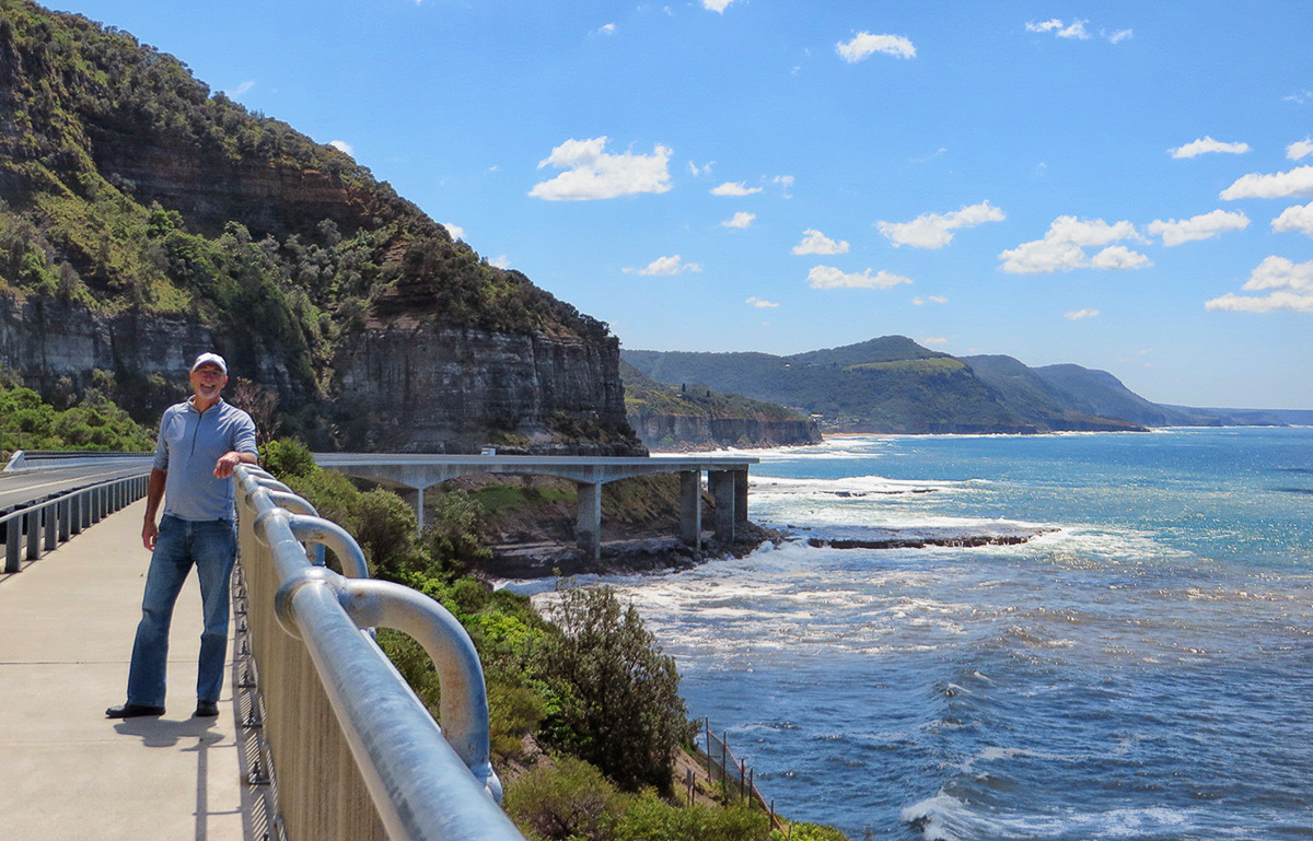 On Wednesday morning (having lost a day) we arrived in Sydney and our friend Ted Cully met us at the airport. Ted, and friend Jean were wonderful hosts and tour guides while we spent the next few days sightseeing around Sydney. We visited Sydney’s heritage listed Royal National Park, established in 1879, the world’s second-oldest national park, called ‘the Royal’ by the locals. Beautiful views of the coast with many hiking trails that we would love to explore, but it was on toward the spectacular Sea Cliff Bridge. This $52 million bridge opened in Dec 2005, is a balanced cantilever bridge, and is one of only seven off-shore parallel to coast bridges in the world. It is 1,495 feet in length, 135 feet at is highest point, and links the coastal villages of Coalcliff and Clifton.