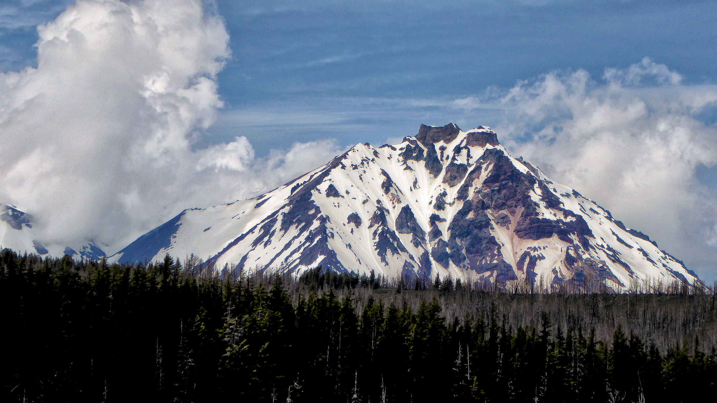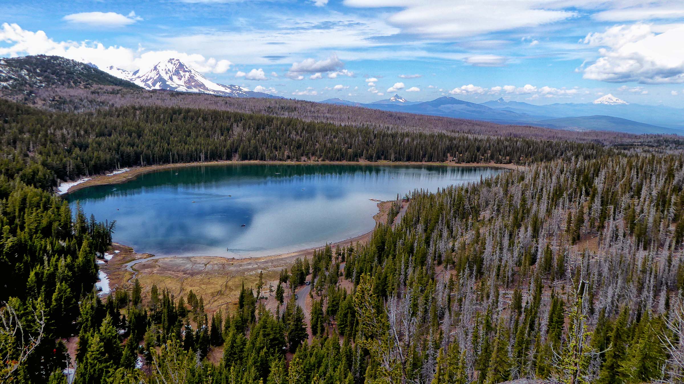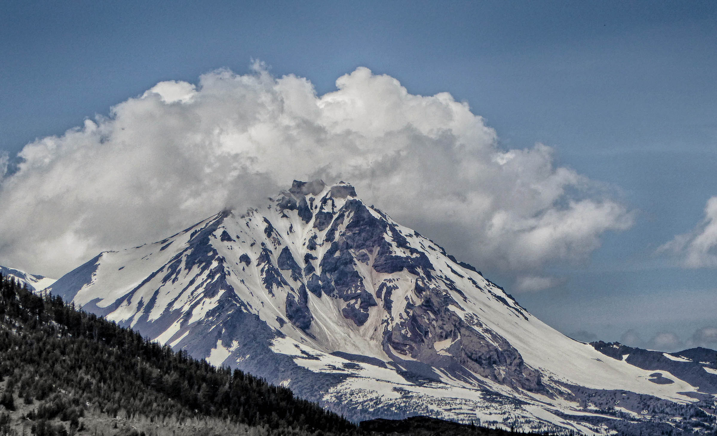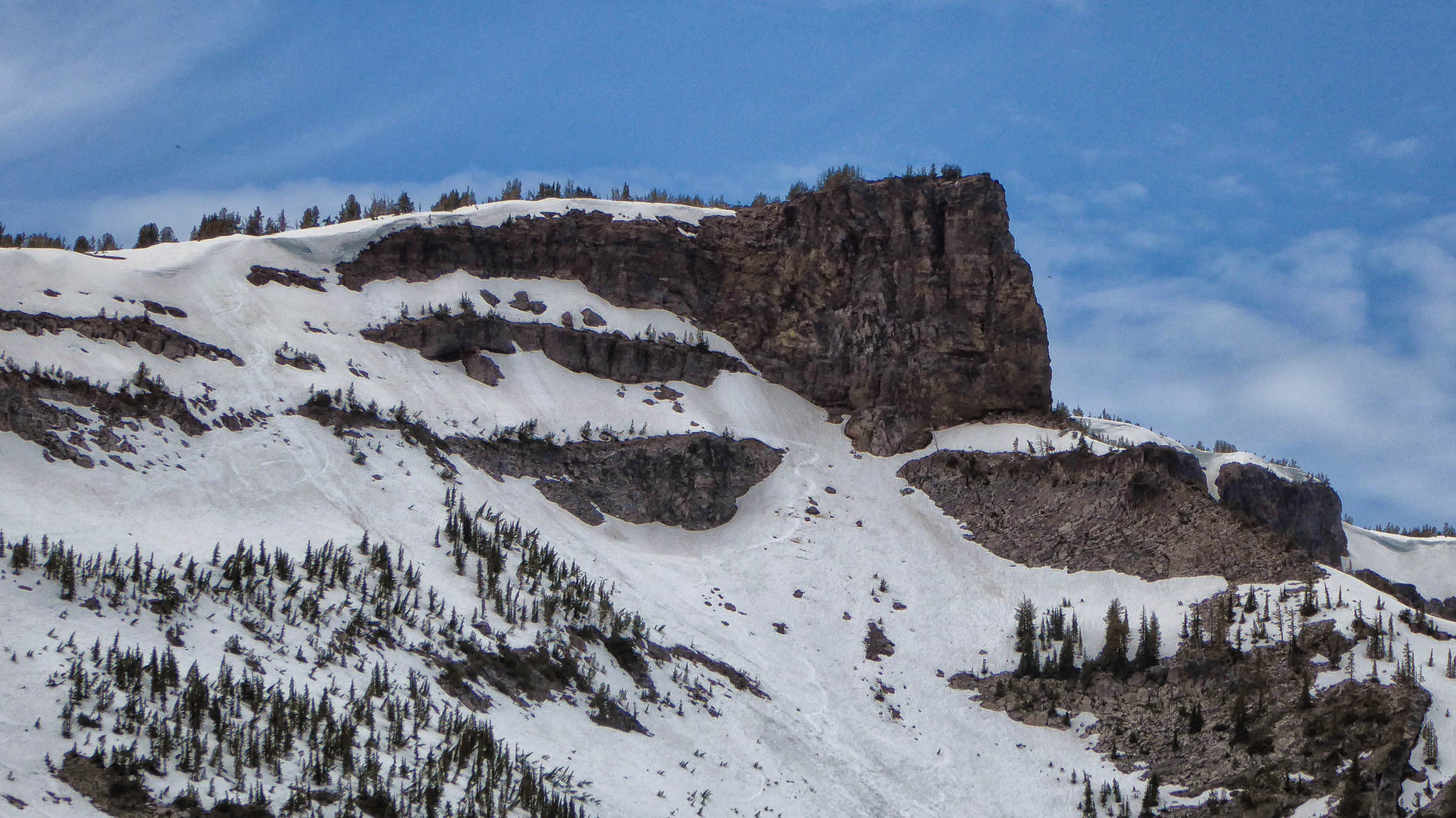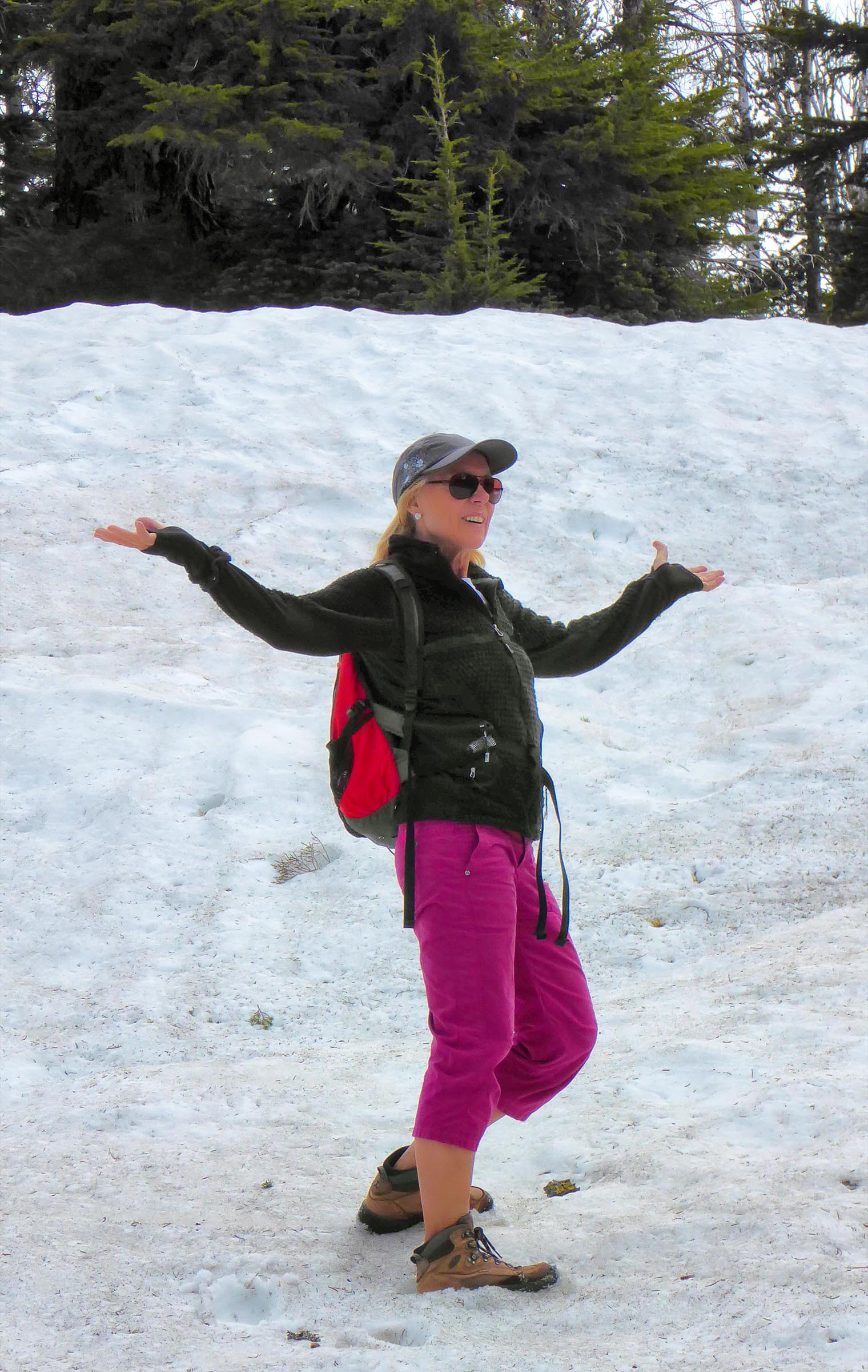 We drove to Sisters this morning to hike the Tam McArthur Rim Trail located just outside of the town off of Elm Street in The Sisters Wilderness. The Trail started from Three Creek Lake at 6,550 feet elevation, it was a winding switch back single track trail to begin but the views were well worth the hike the higher we went. However, the snow was still present on the trail and we struggled to keep going. The Rim is at 8,000 feet and usually the snow does not melt until Aug so we were a little early and were not going to make it to the top. The views of Three Creek Lake, Mt Jefferson and Broken Top were beautiful as the weather was crystal clear. After enjoying the views we headed back to the Jeep and went to see Tumalo Falls, near Bend.