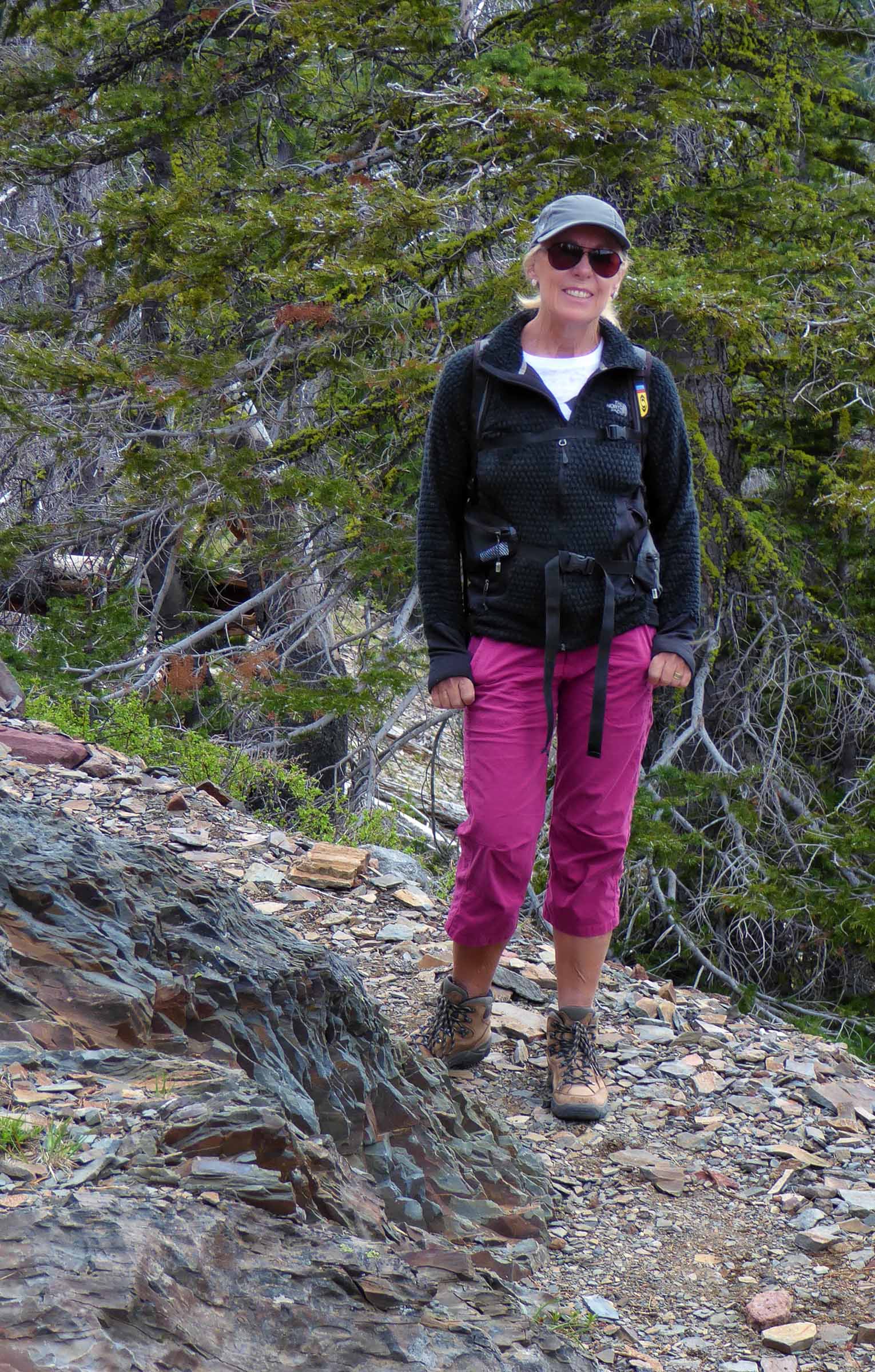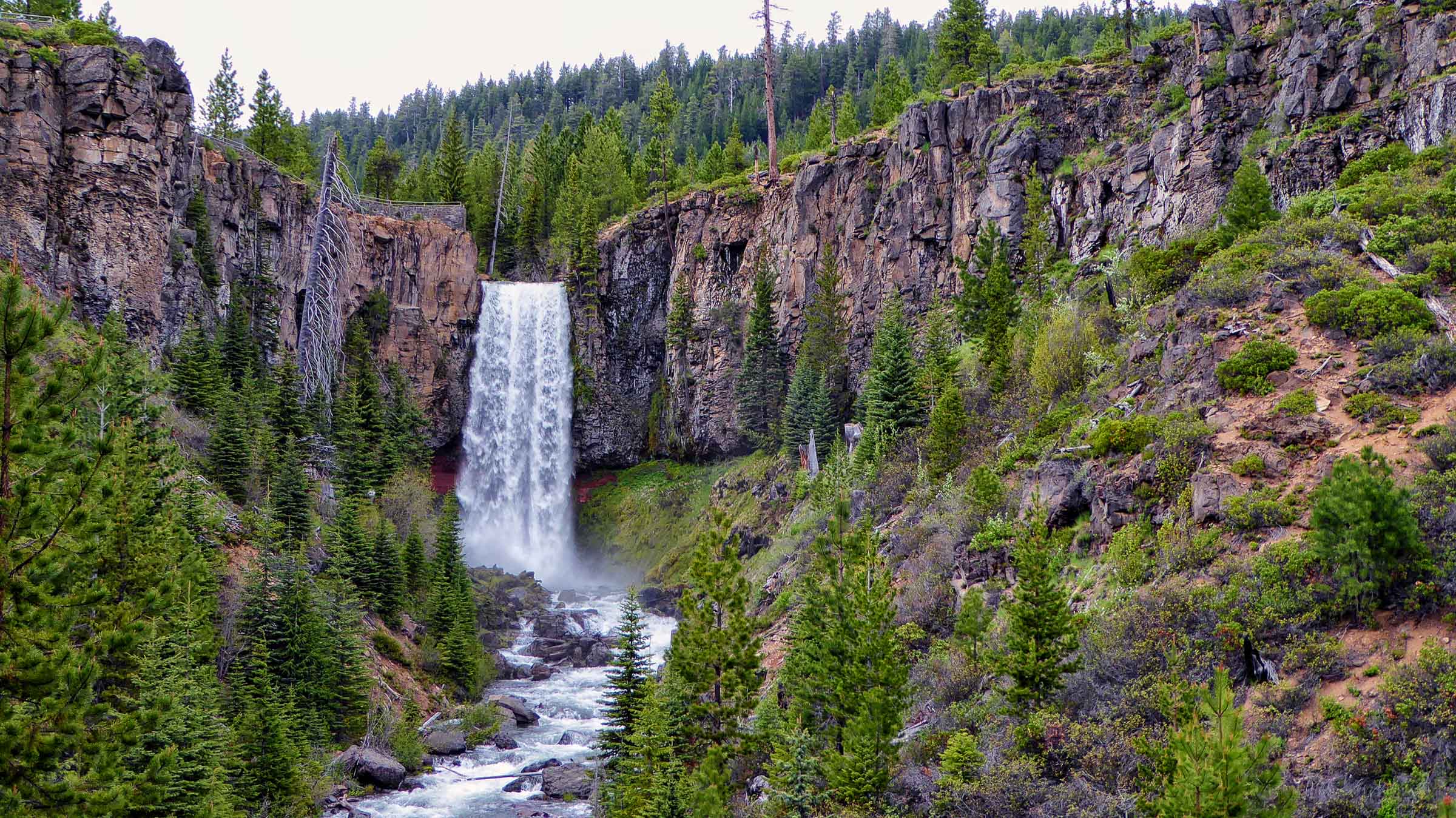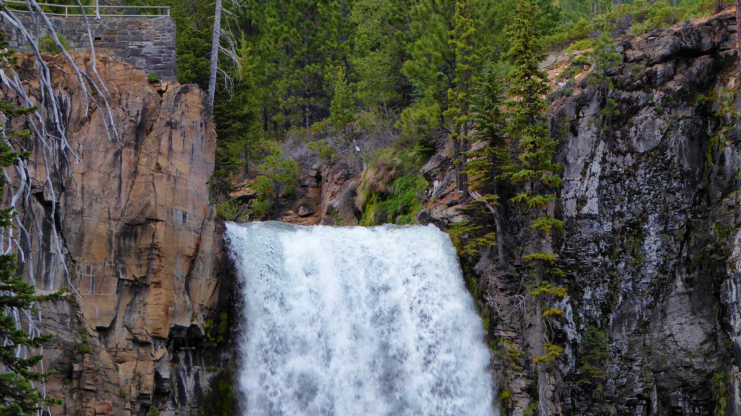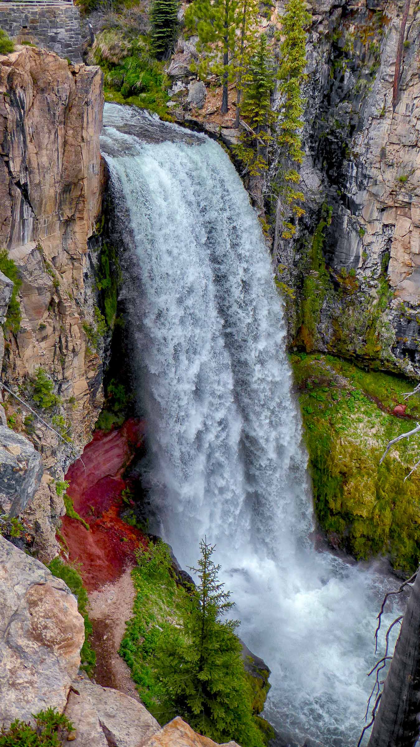 Another obstacle faced us, this time the road was closed to the Falls so we had to hike the 3 miles along the Tumalo Creek to see the Falls. It was a flat well-maintained trail with mountain bikers passing us along the trail. Once we arrived at the Tumalo Waterfalls we were amazed by the 97 feet of water cascading down into the Tumalo Creek below. We hiked along the edge of the Creek below the falls and I stood under the raging torrent of water that was so loud it was hard to hear anything else but the power of the water. The volume of water, mostly from snow melt, was very impressive as it tumbled over the 97 foot drop to the creek. Then it was the long 3 mile hike back to our car and a drive to Bend where we stopped at the Broken Top Bottle Shop for dinner and tasty micro beer. Great reward for a long day of hiking.
