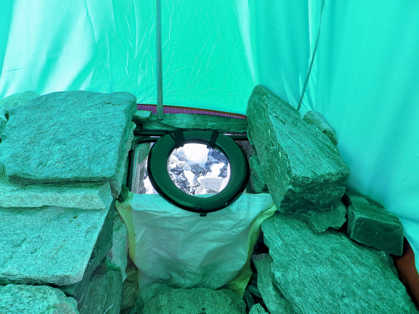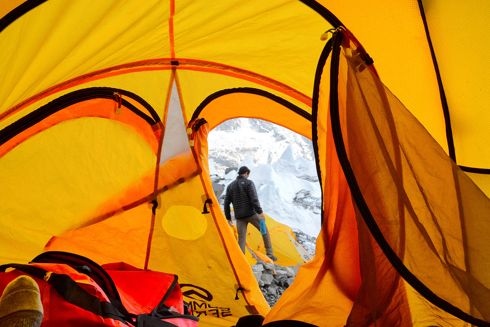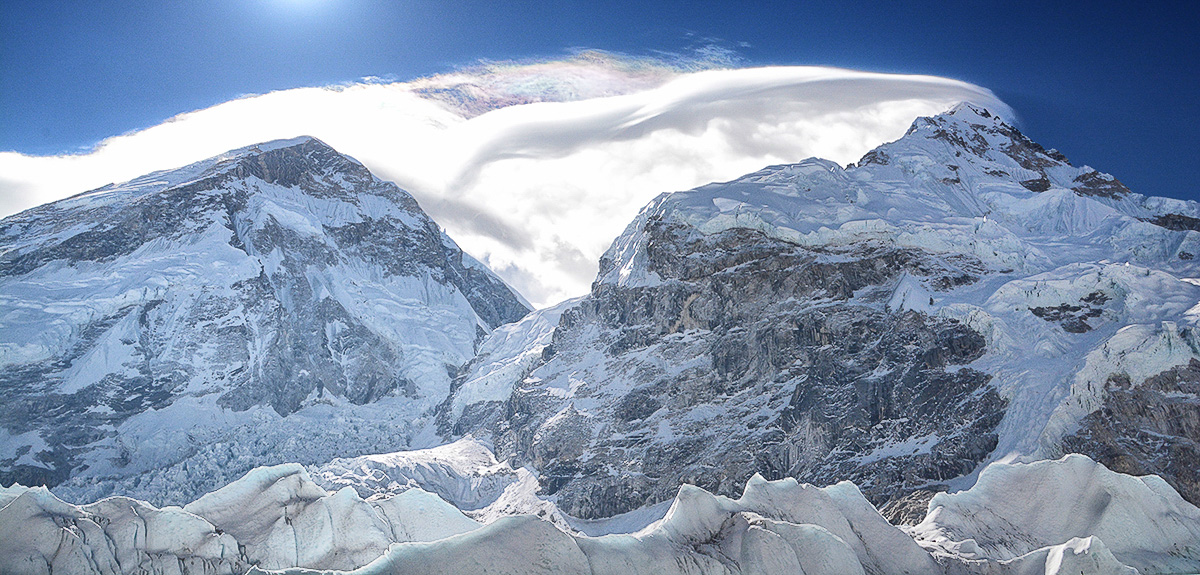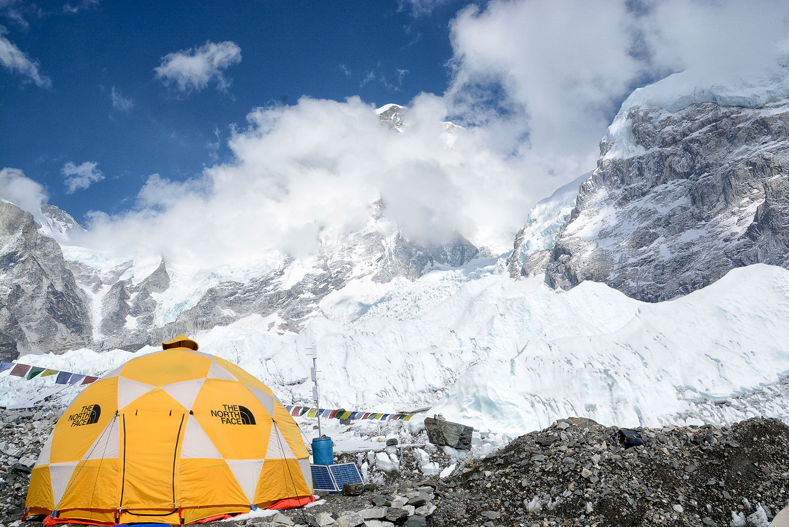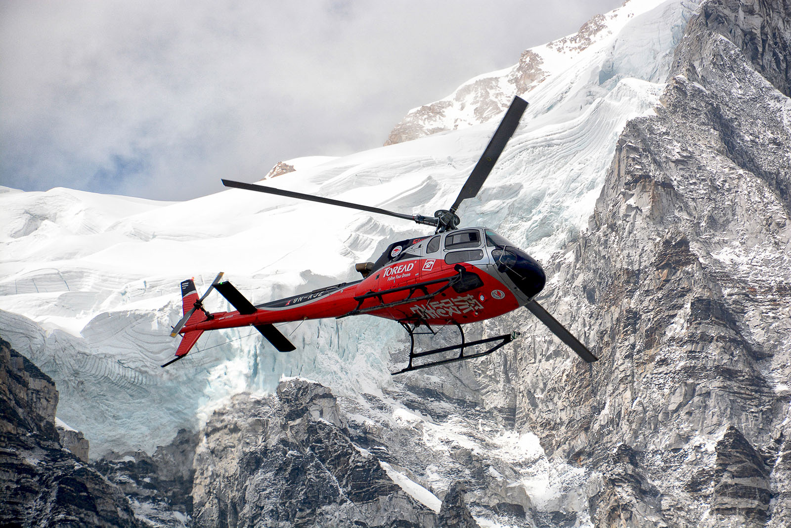 Never imagined that we would be sleeping at Everest Base Camp, on the Khumbu Glacier at 17,650 ft, the highest we have ever stayed at over night. We borrowed Kevin’s -40 and -30 degree sleeping bags, so we were warm and cozy inside the tent. However, getting up in the middle of the night to go to the bathroom was not fun at all. The sun woke us up around 7am it was so bright inside our yellow tent. Breakfast at 8am with the sound of the helicopters flying over head. It was a massive evacuation from Everest Base Camp. All day the helicopters flew people down the mountain or up to Camp 2 to remove all the gear that had been taken there before the avalanche happened. The sun was shining brightly and we were able to walk around Base Camp to experience the overwhelming magnitude of this “city on ice” nestled in a valley at the base of the highest mountains in the world. As far as the eye could see were tents filled with the climbers and Sherpas who were preparing for their ascent of Everest, which unfortunately was cancelled this year. Now sadly leaving their camps to return to Kathmandu and places beyond.