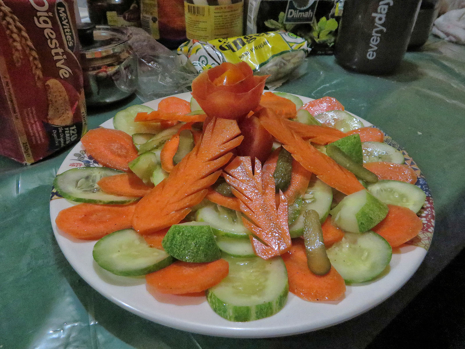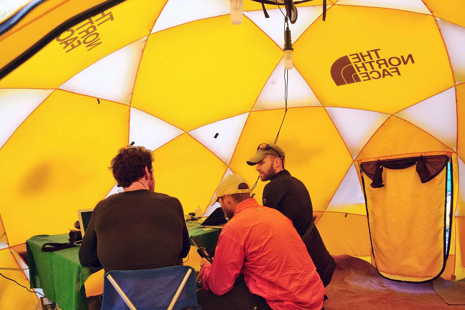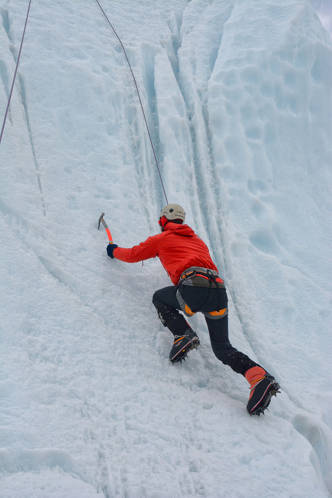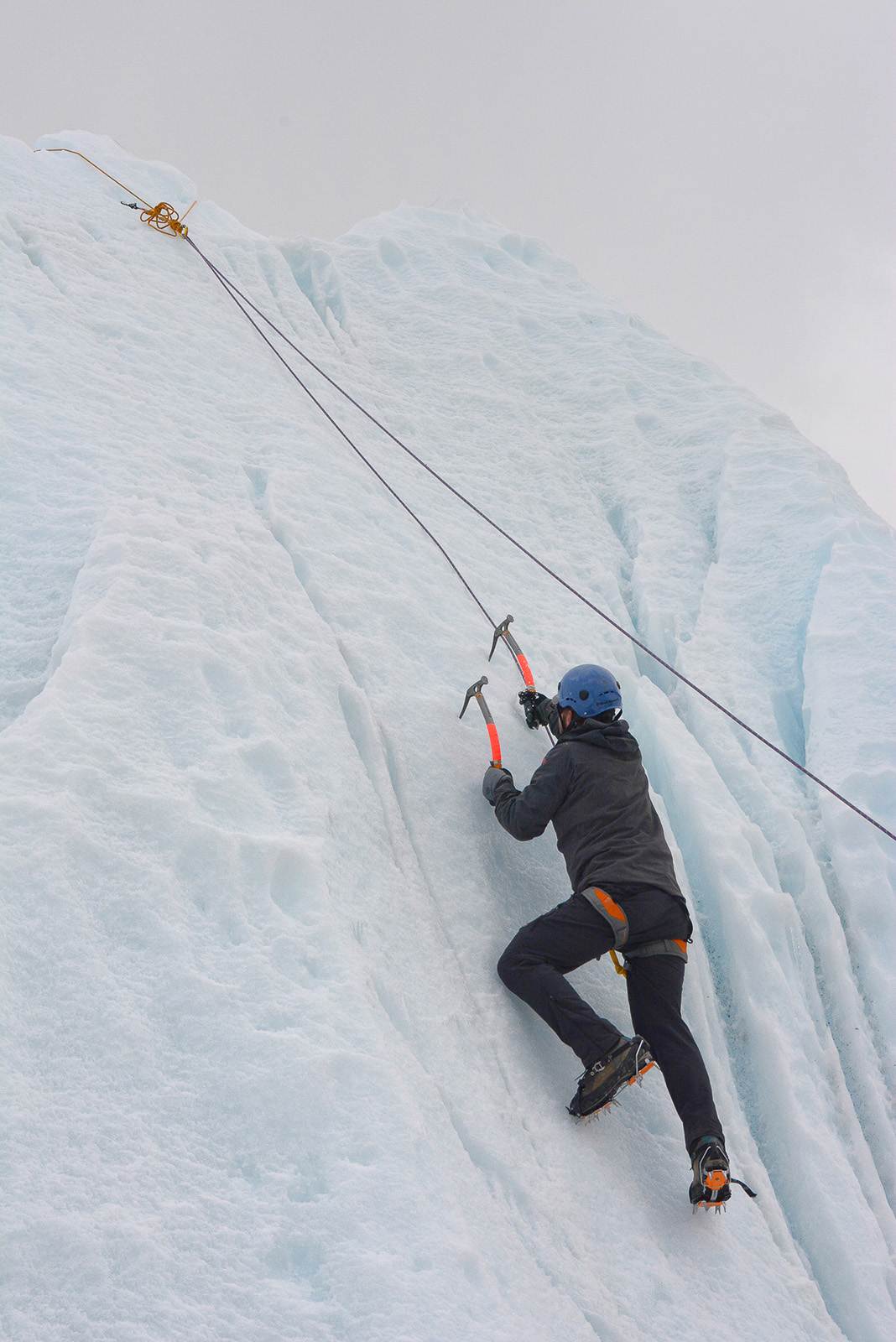Lunch was served at noon in our mess tent. Afterwards we all went with Panuru to watch Kevin, B-1, Brad and Ake practice ice climbing on the ice wall near our camp. With crampons ready and ice picks in hands each had their turn climbing the 40 foot ice wall as Bob and I watched. It started to snow so we returned to our tents before dinner to try and warm up. When the sun is out it is very warm here but once it is cloudy it gets very cold. At dinner we planned our descent down the mountain tomorrow to Lobuche and then Kevin, Brad, B-1 and Ake with Tashi will hike to Lobuche high base camp to spend the night getting ready to climb Mt Lobuche.