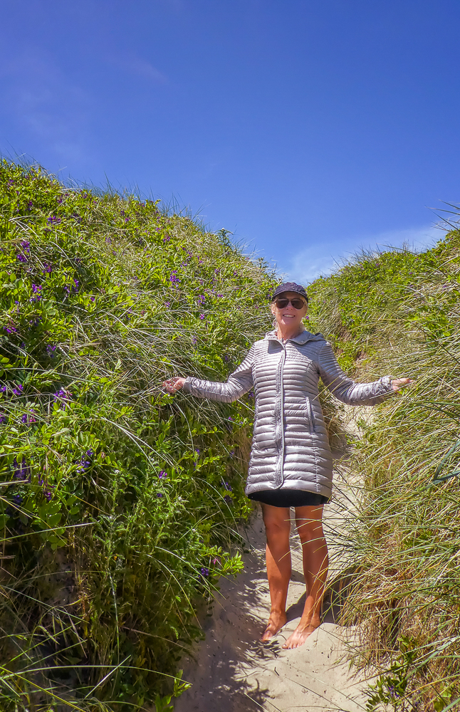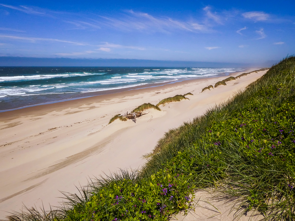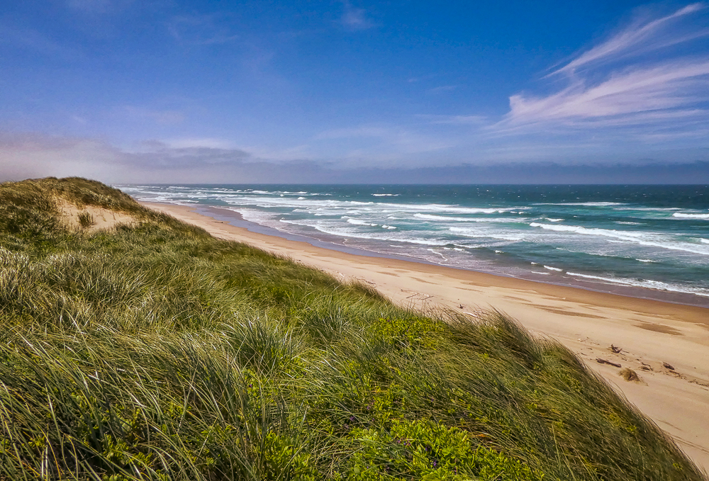 While our RV is still being serviced we decided to drive out to the coast to visit Florence and Yachats. We drove into the Sand Dunes Frontier, the dunes lie along the coast, with the estuariies of three major river valleys connected by two long stretches of sand, about 40 miles of dunescape. We drove in as far as we could go, then climbed up the dunes to view the beaches. After leaving the Dunes we drove north to Yachats where we had lunch at the Green Salmon Coffee Shop, it caters to the new age and millennials, so we fit right in!!!!! We had been here before on our first trip north in the RV in 2014, and wanted to return again it was so good, especially with vegan options! Bob enjoyed their mocha, known as the best mocha on the Oregon coast. Then it was a long drive back to Junction City to pick up the RV.