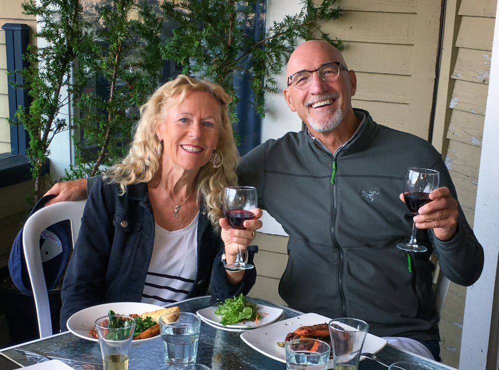 We went over to Salt Spring Island to visit my sister, Sue and Denis for a few days, Aug 13th to 18th. We celebrated Bob’s 71st birthday at Auntie Pesto’s overlooking the Ganges Harbor. We played some pickle ball, went swimming in Vesuvius Bay and enjoyed relaxing on the porch chatting, drinking and eating together. We took a day and went on a biking trip over to Vancouver Island to visit Chemainus and Ladysmith.