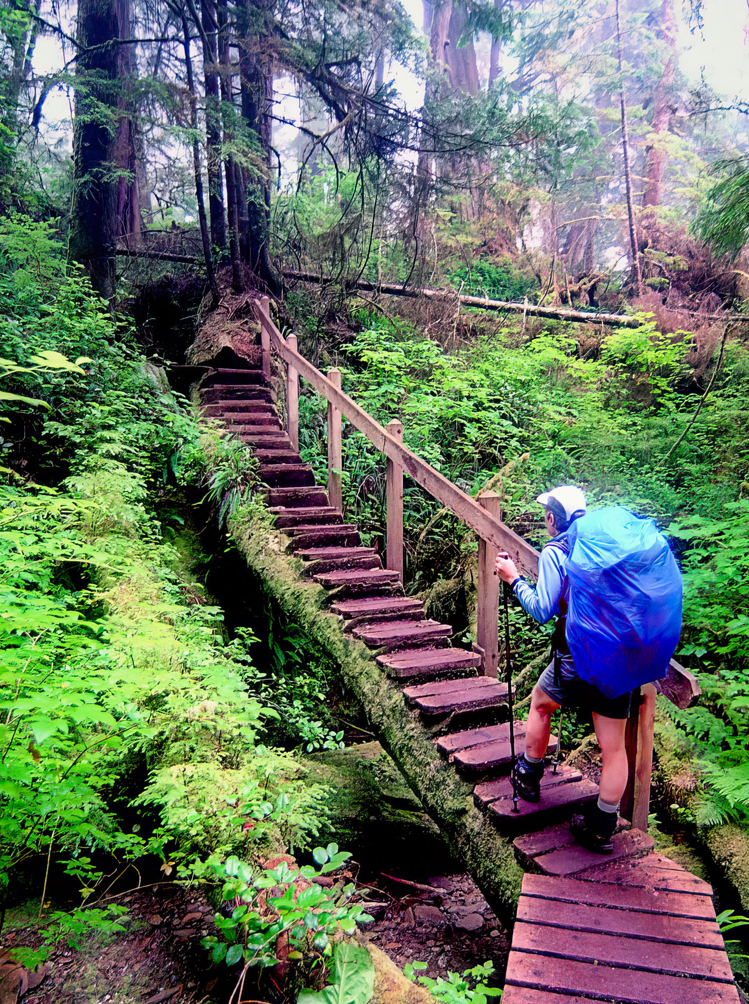 To conquer the changes in elevation as the trail meandered between the shoreline and the rainforest, we encountered long flights of stairs that ascended and descended with determination. As we ascended, we reveled in the breathtaking views of the coastline and the rhythmic crash of waves against the rugged cliffs.